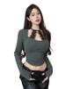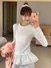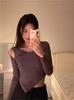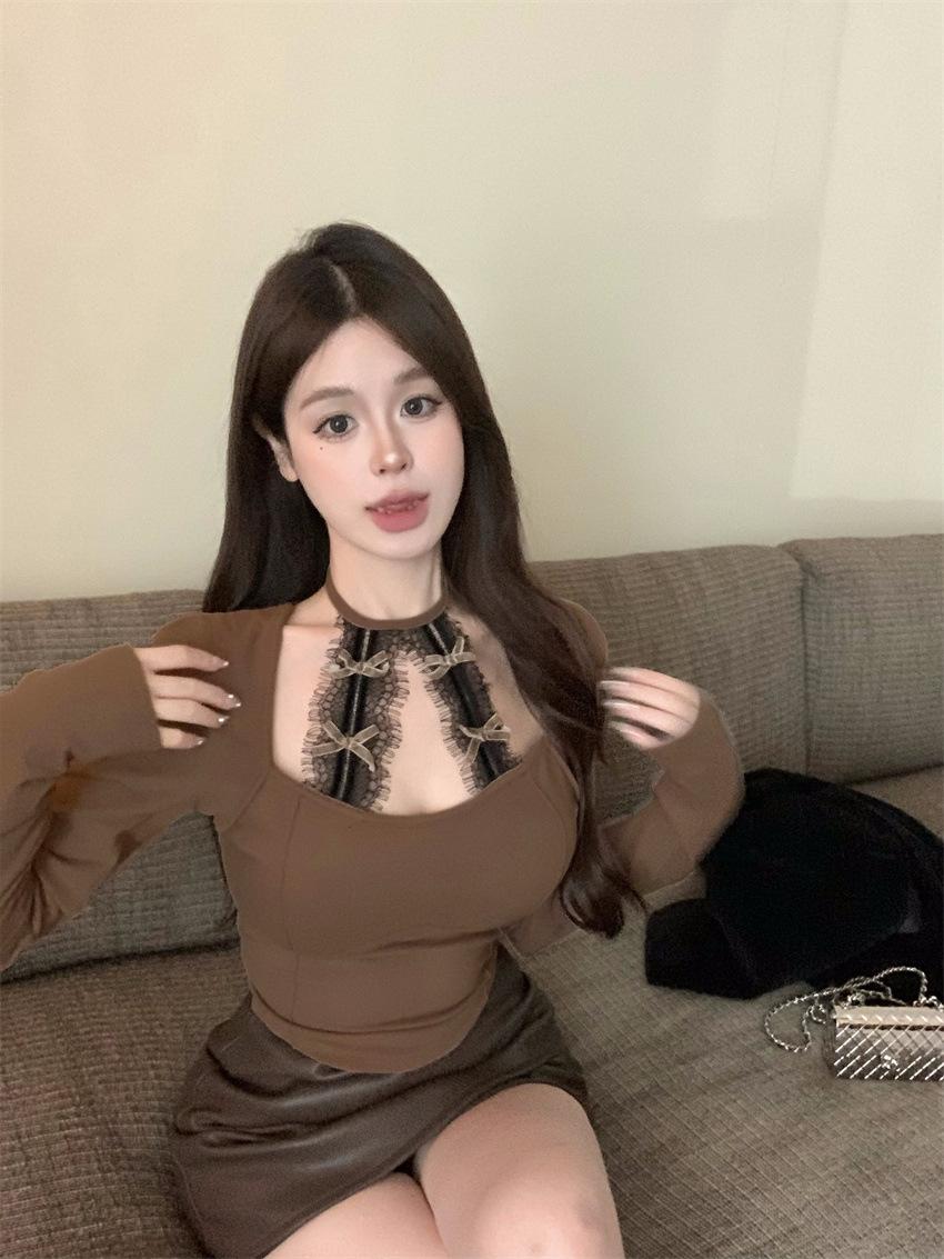 Deseo Puro Chica Caliente Sexy Otoño e Invierno Cuello Camiseta Manga Larga Encaje Camisa Base Ajustada Adelgazante Nicho Ins Top Mujeres
