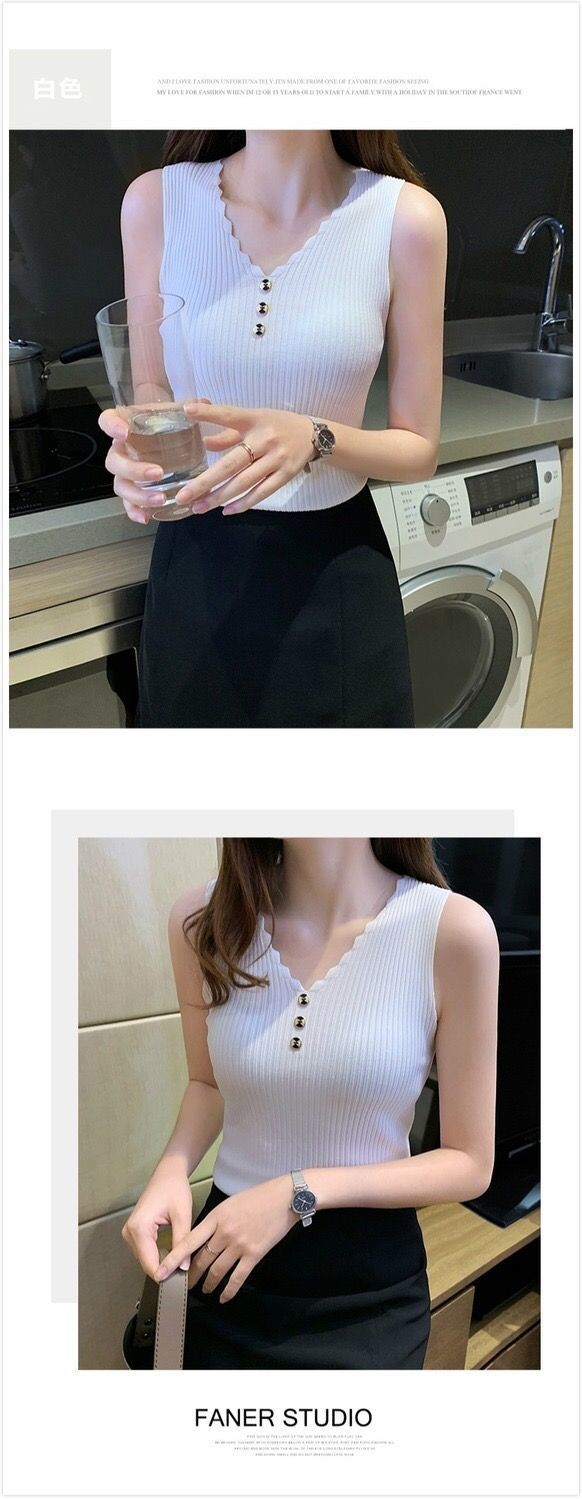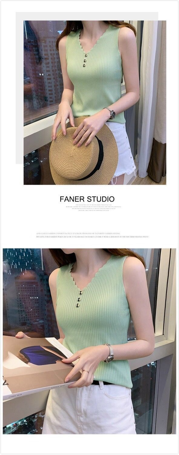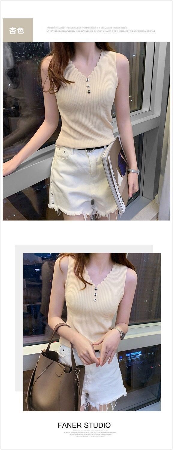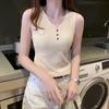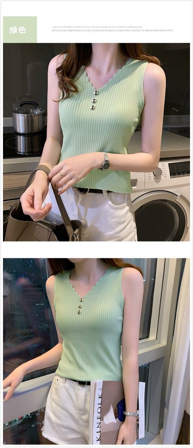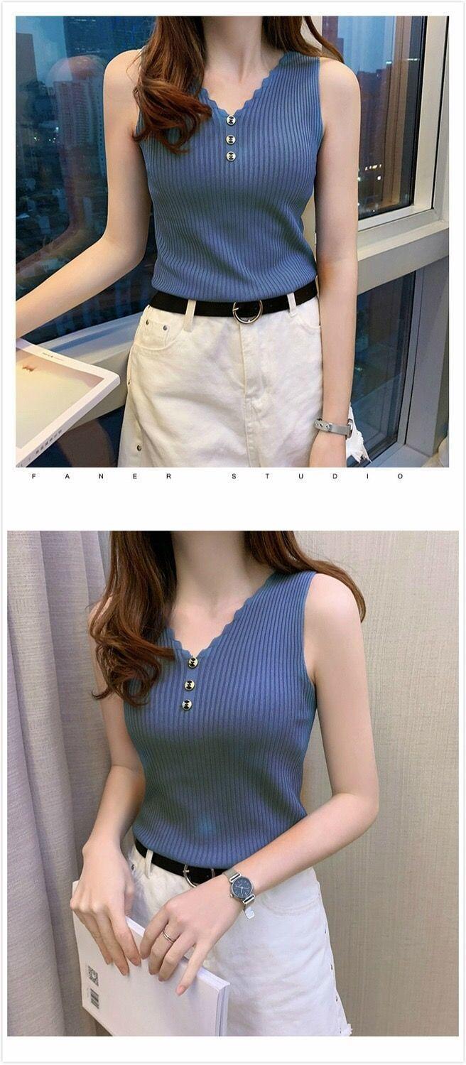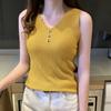 Chaleco sin mangas de seda de hielo para mujer, prenda exterior de verano, holgado, estilo coreano, corto, con cuello en V, de punto