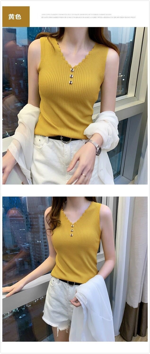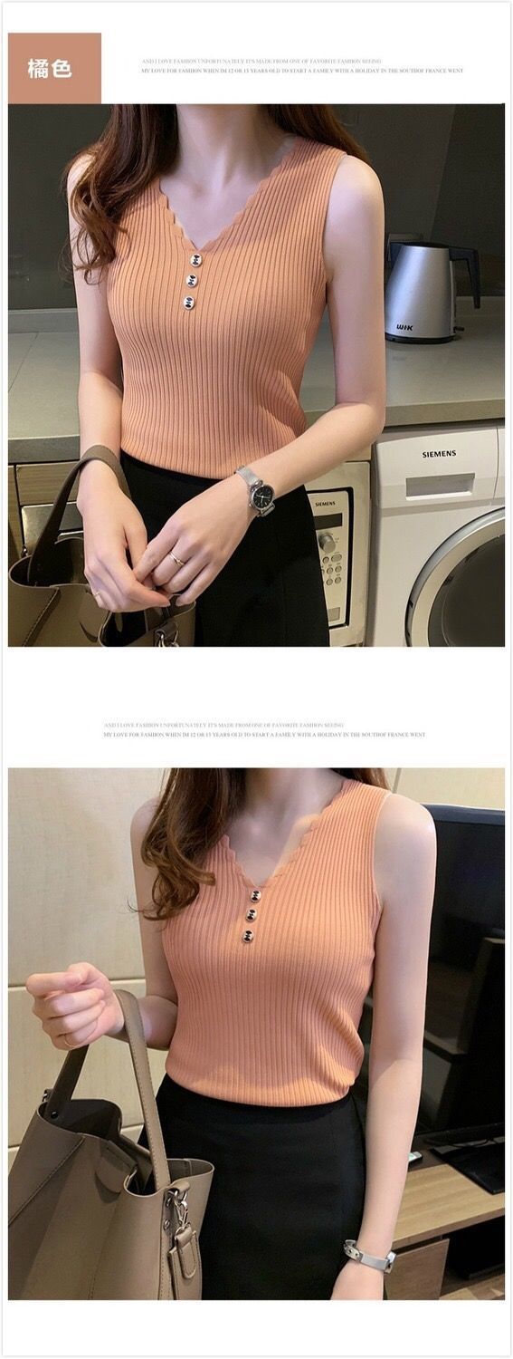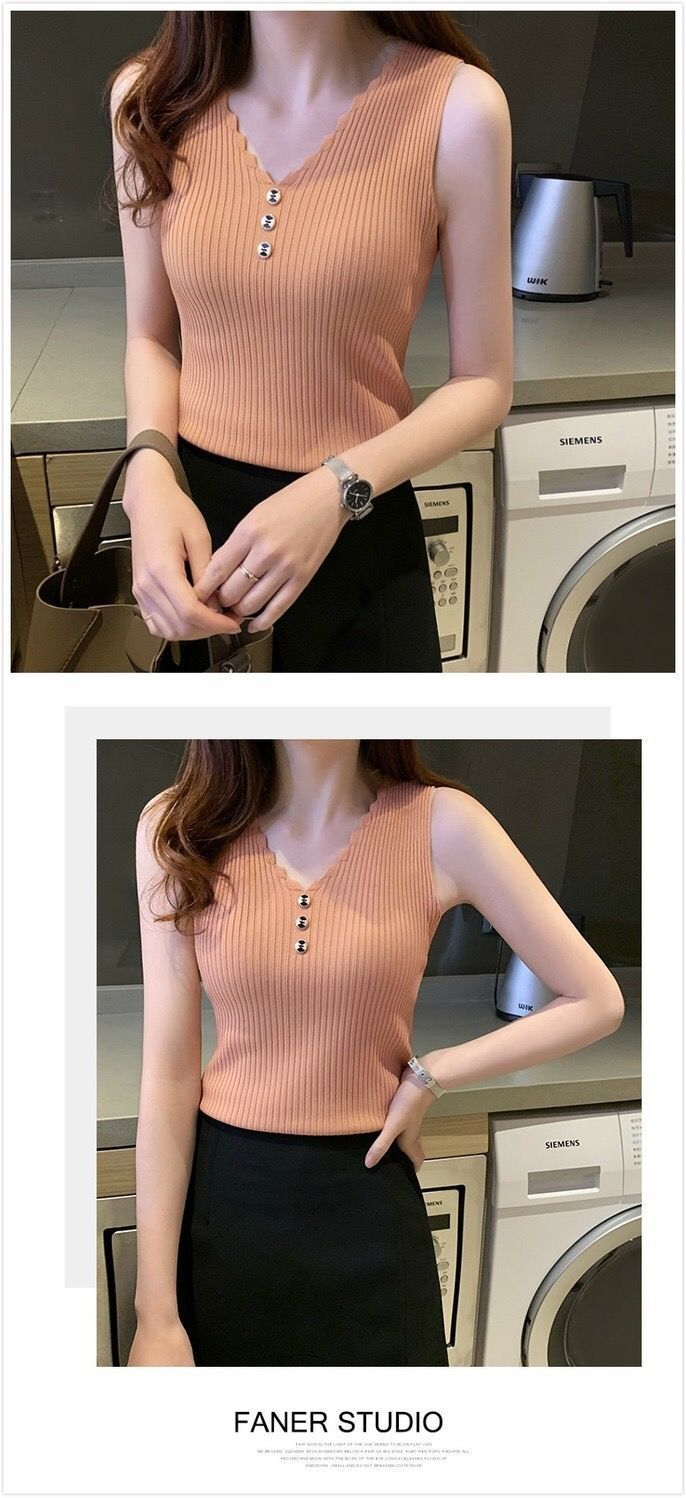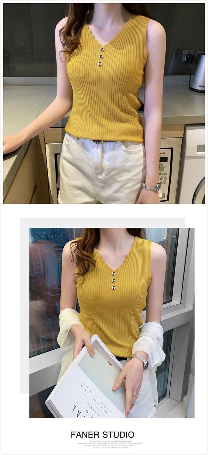 Chaleco sin mangas de seda de hielo para mujer, prenda exterior de verano, holgado, estilo coreano, corto, con cuello en V, de punto