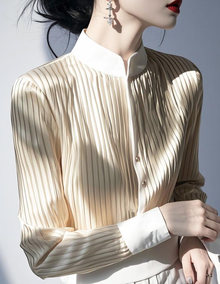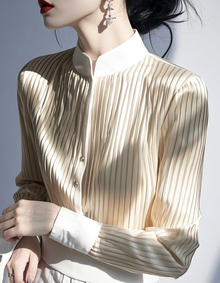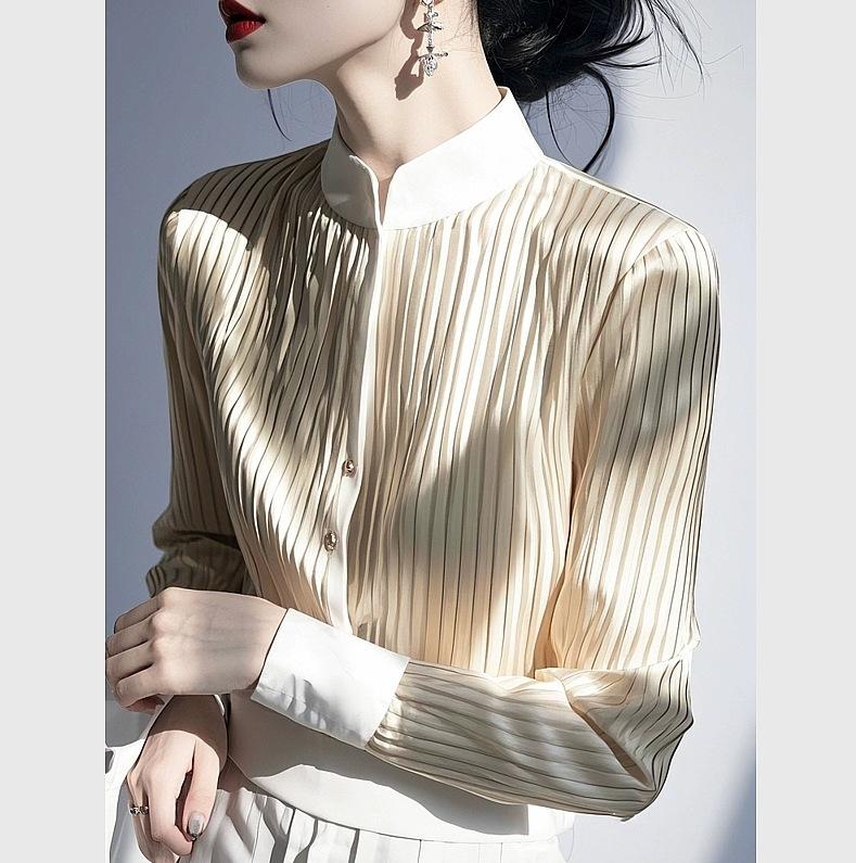 Camisa a rayas color albaricoque, única, hermosa, de alta gama, ligera, de lujo, antiedad, estilo occidental, base francesa, para mujer, primavera 2025
