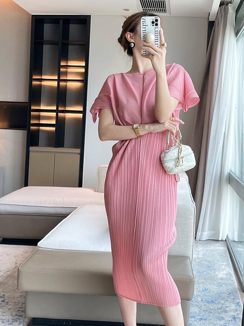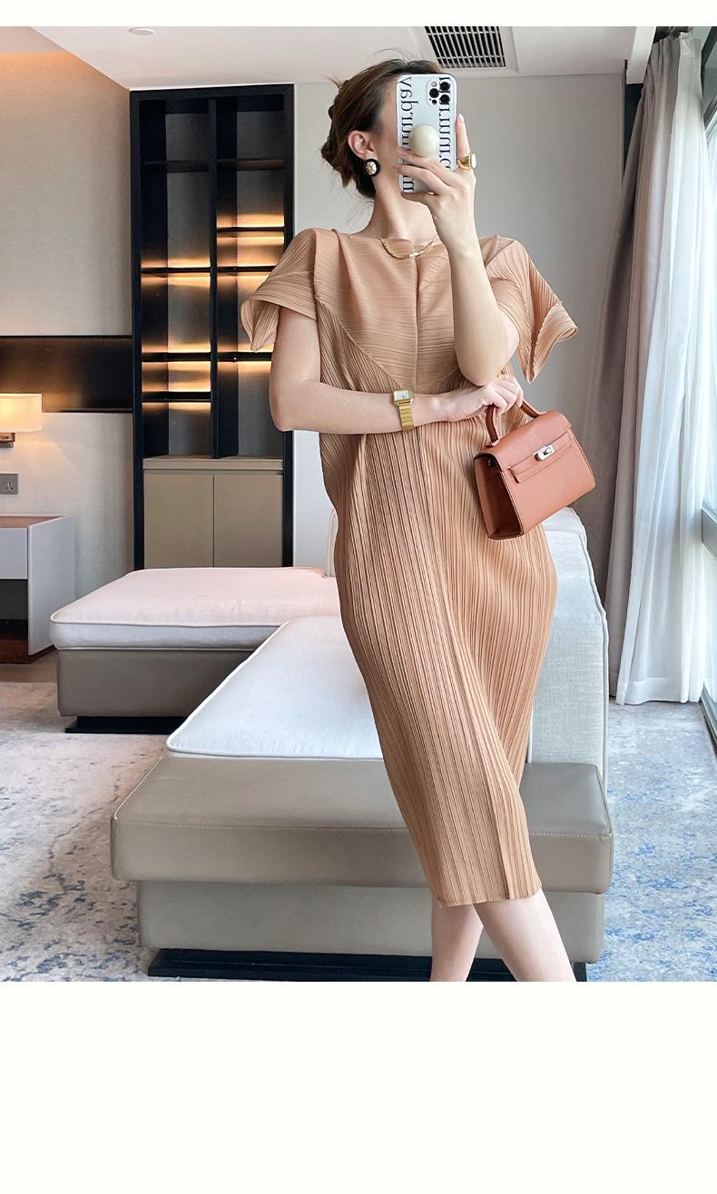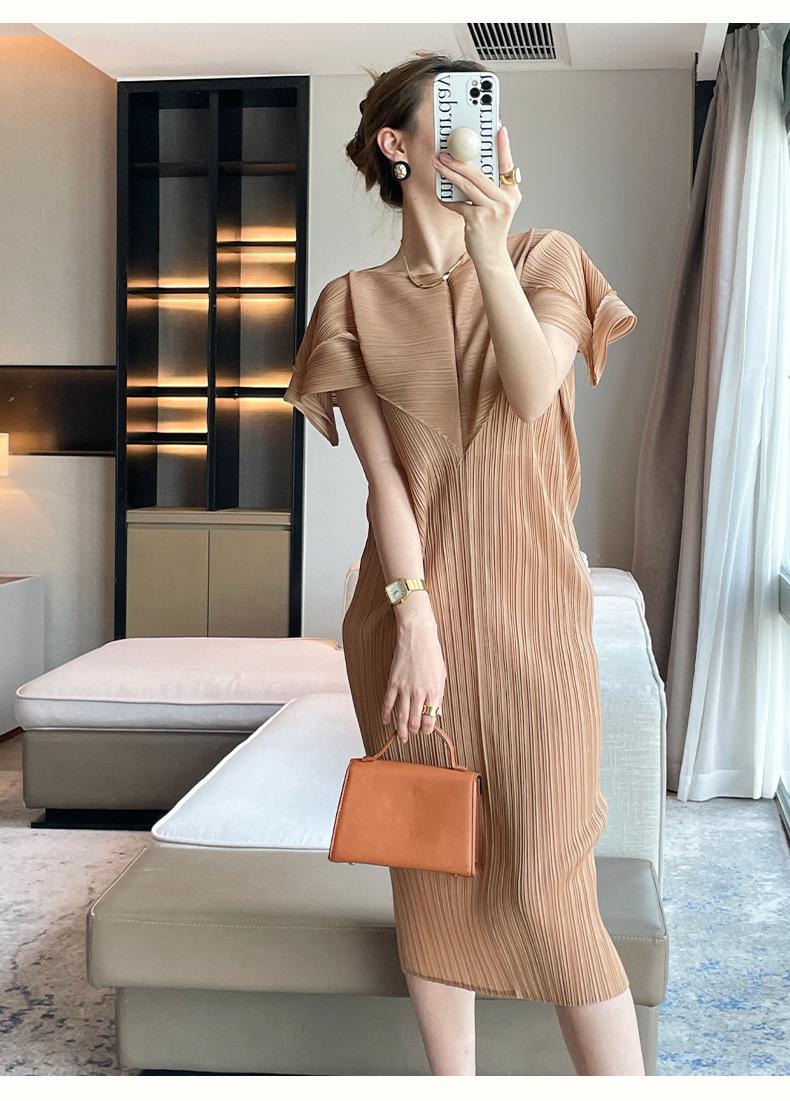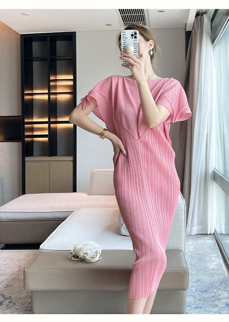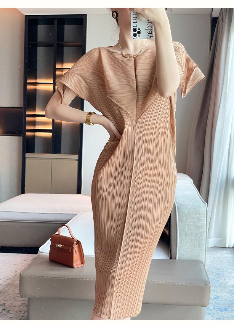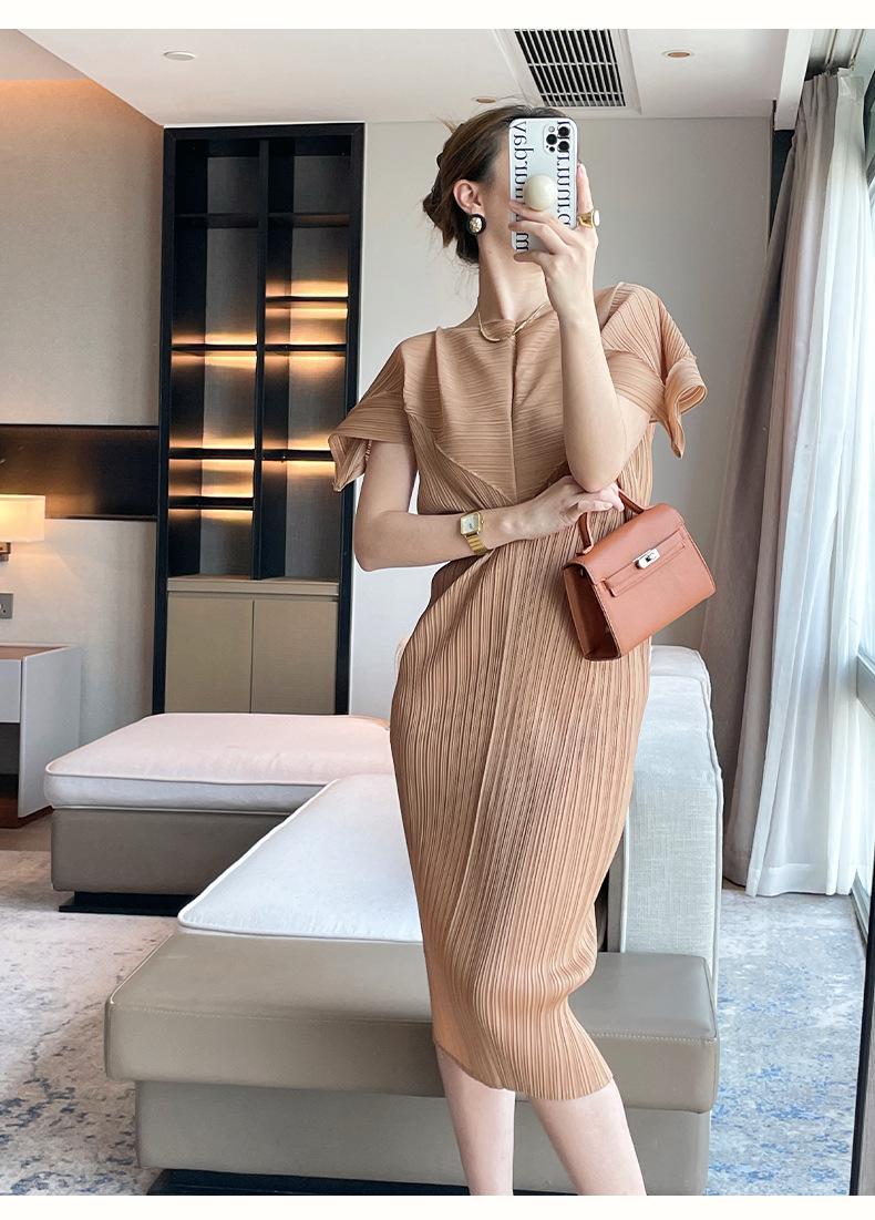Vestido Midi Elegante Elegante para Mujer con Diseño Ajustado de Verano 2025 con Pliegues Adelgazante de Alta Gama Miyake