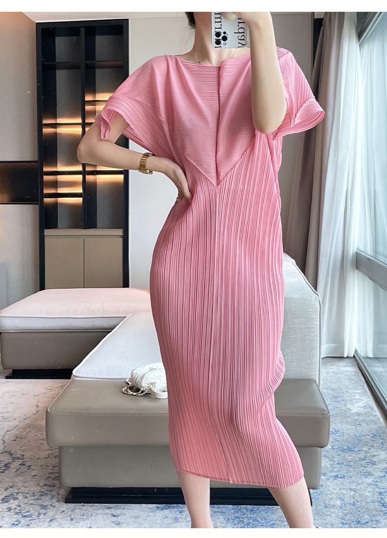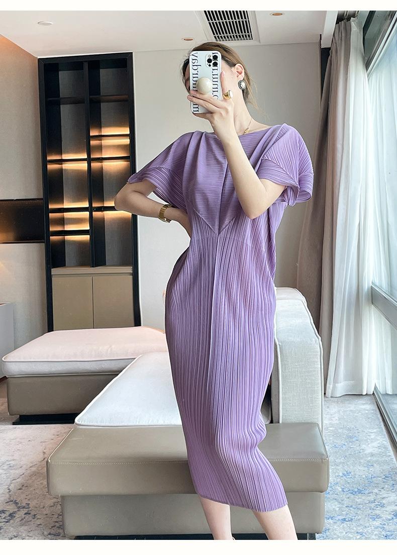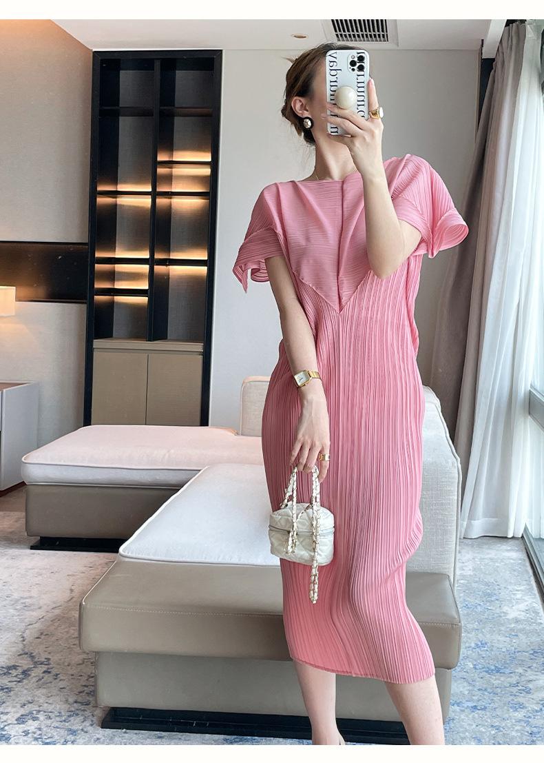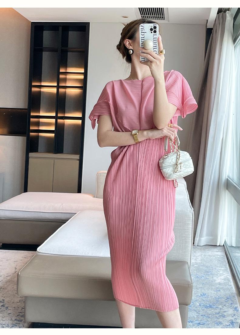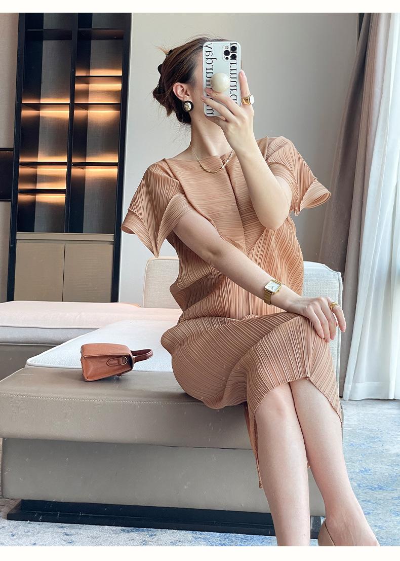 Vestido Midi Elegante Elegante para Mujer con Diseño Ajustado de Verano 2025 con Pliegues Adelgazante de Alta Gama Miyake