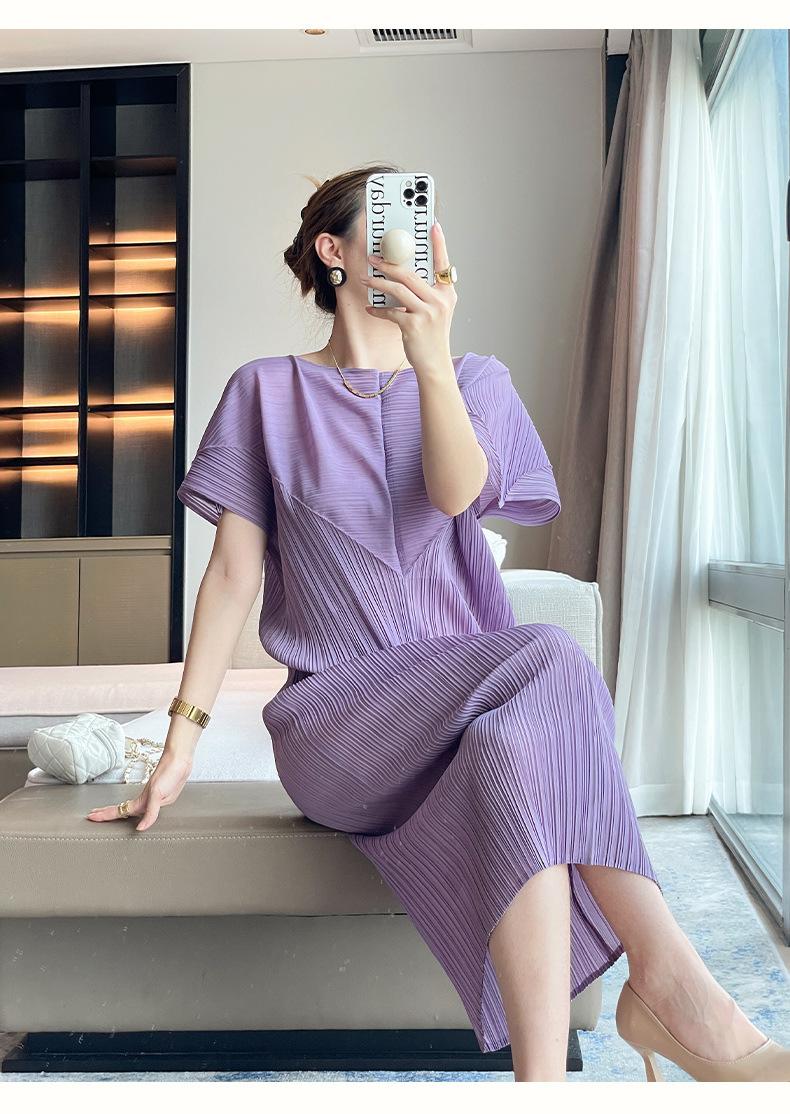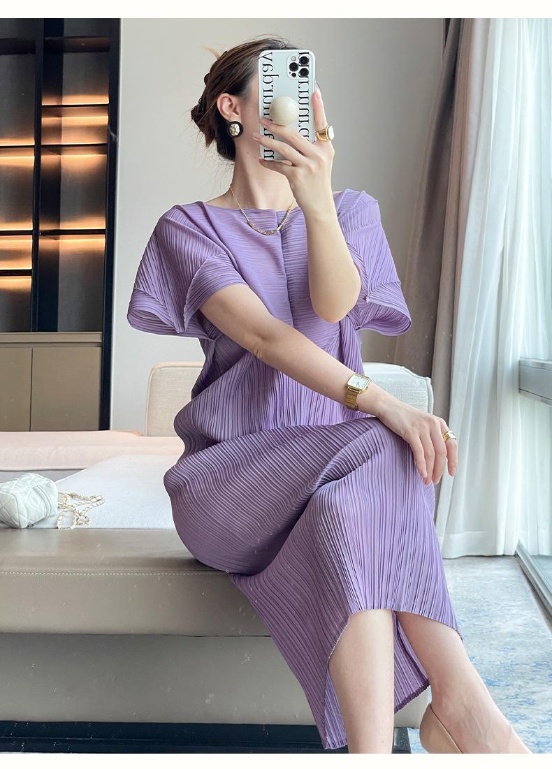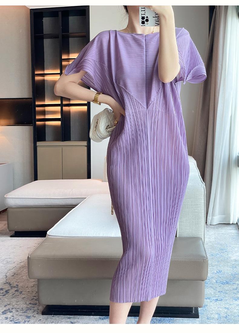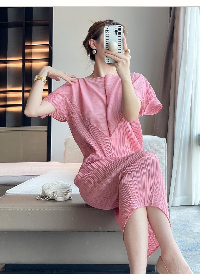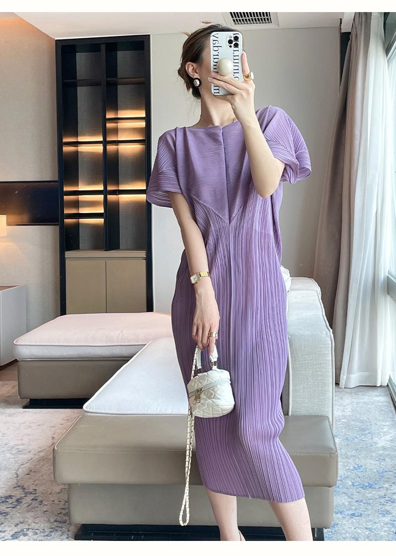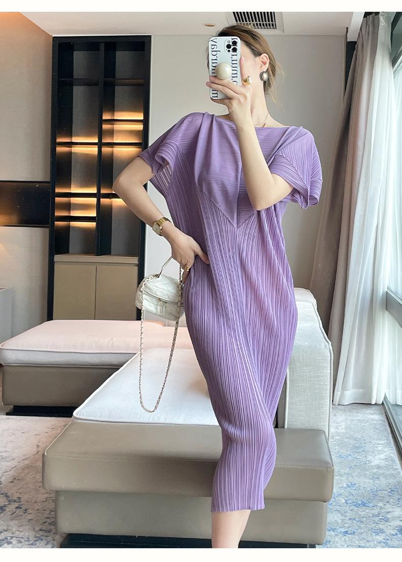 Vestido Midi Elegante Elegante para Mujer con Diseño Ajustado de Verano 2025 con Pliegues Adelgazante de Alta Gama Miyake