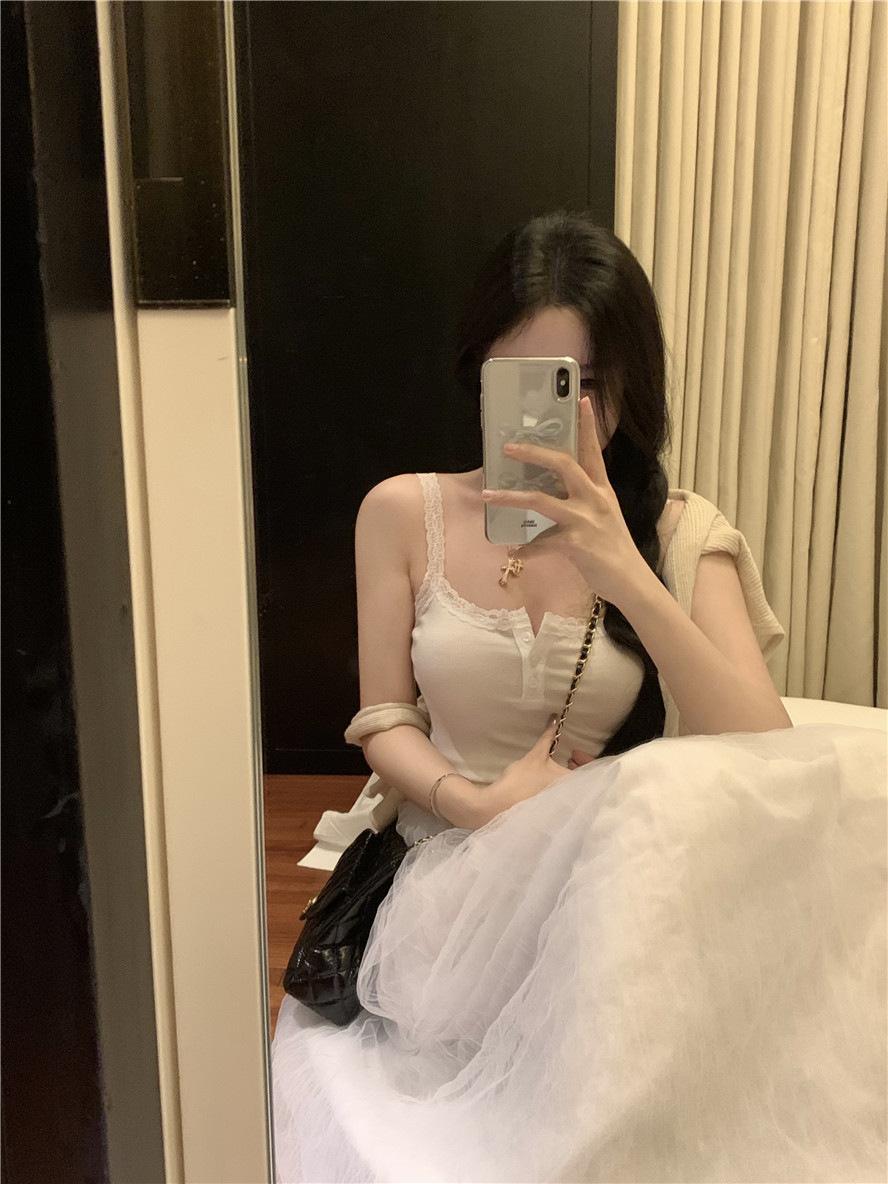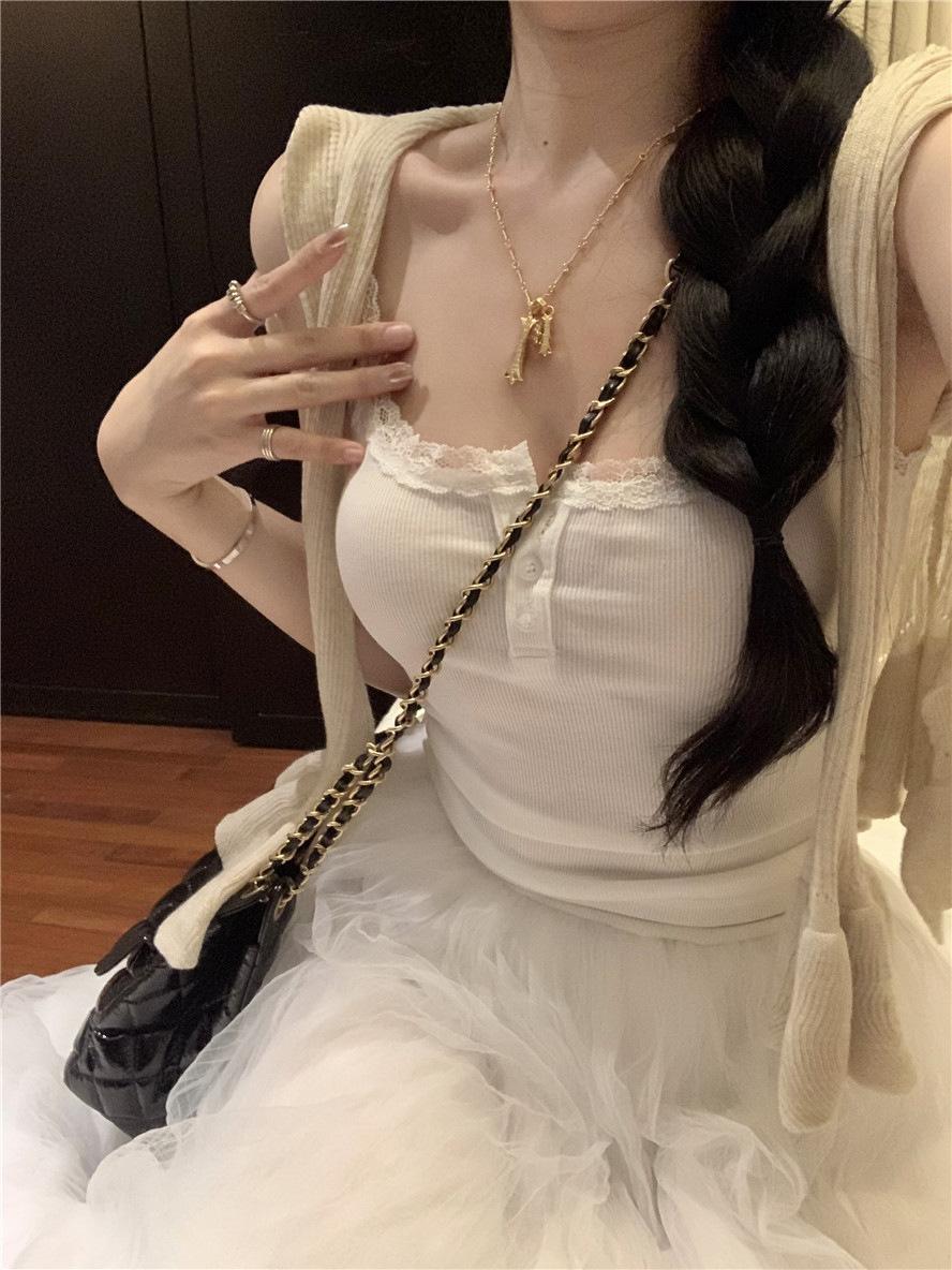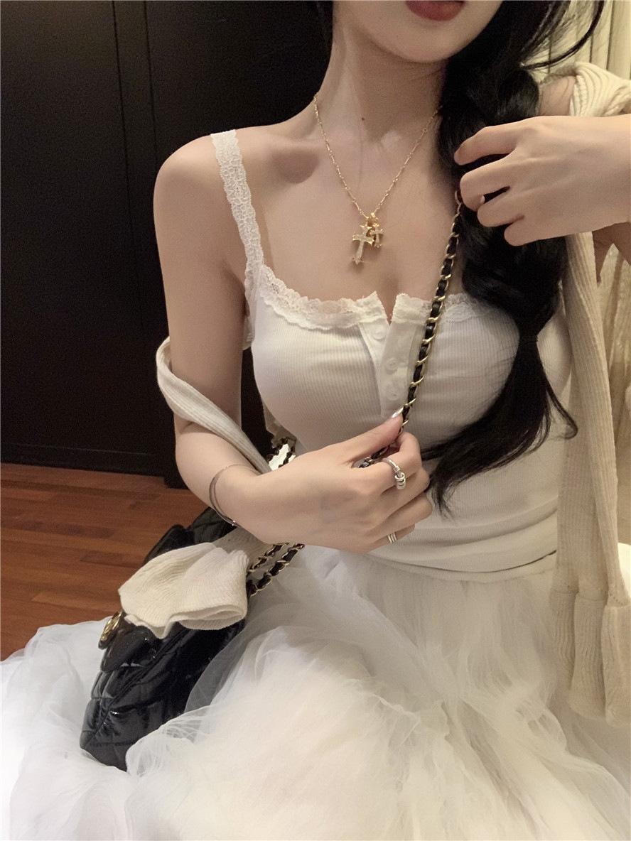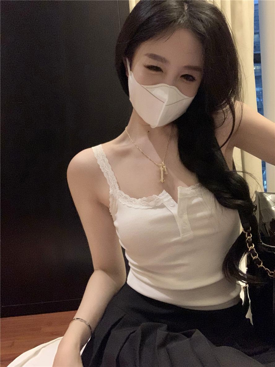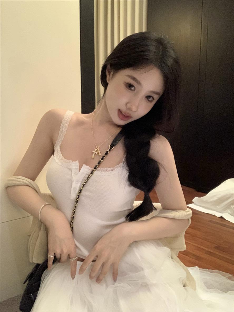 Camisola Estilo Lujuria Pura para Mujer Verano Encaje Slim Sexy Ropa Interior Color Puro Deseo Puro Sexy Top Corto Trendy