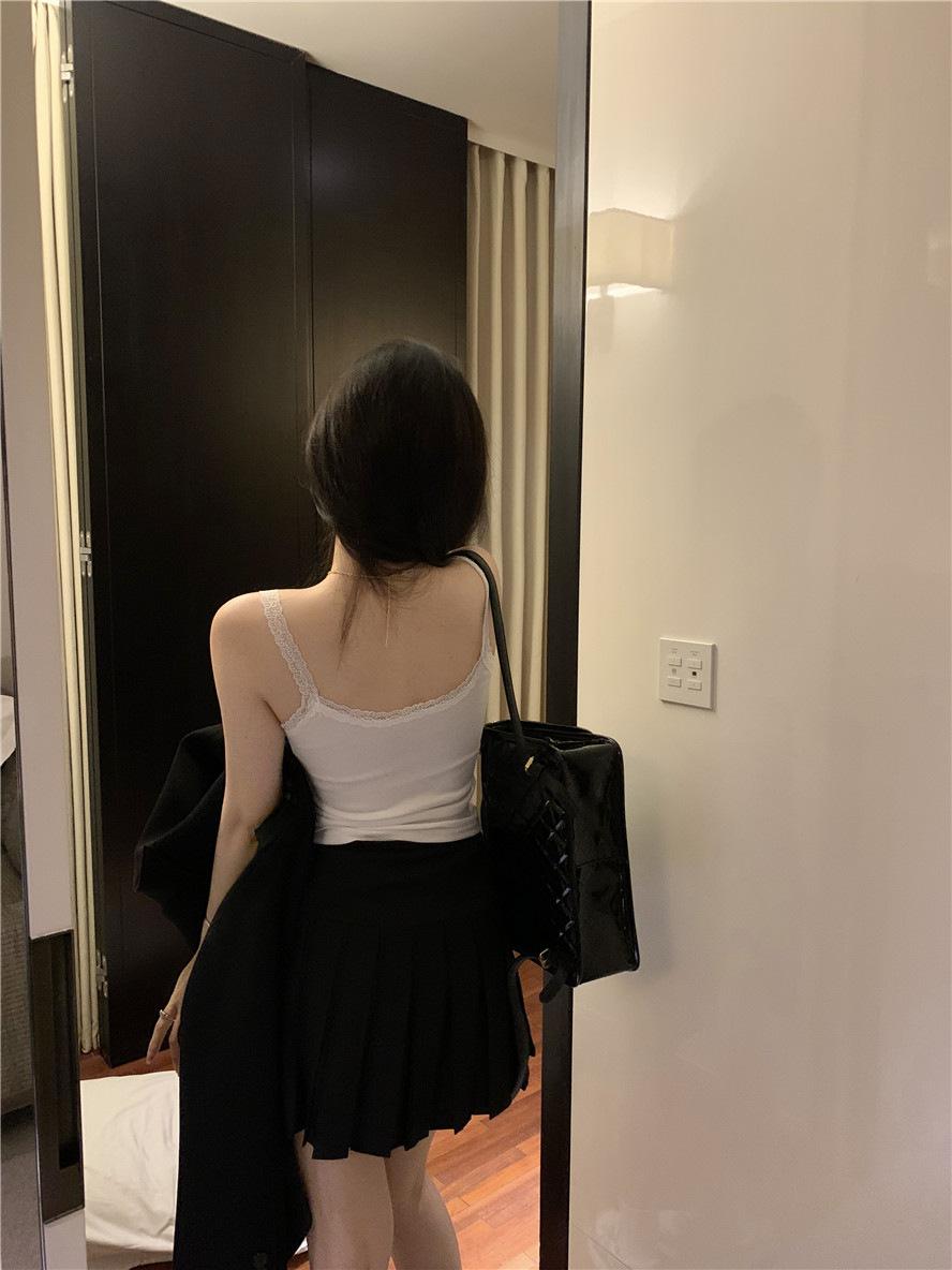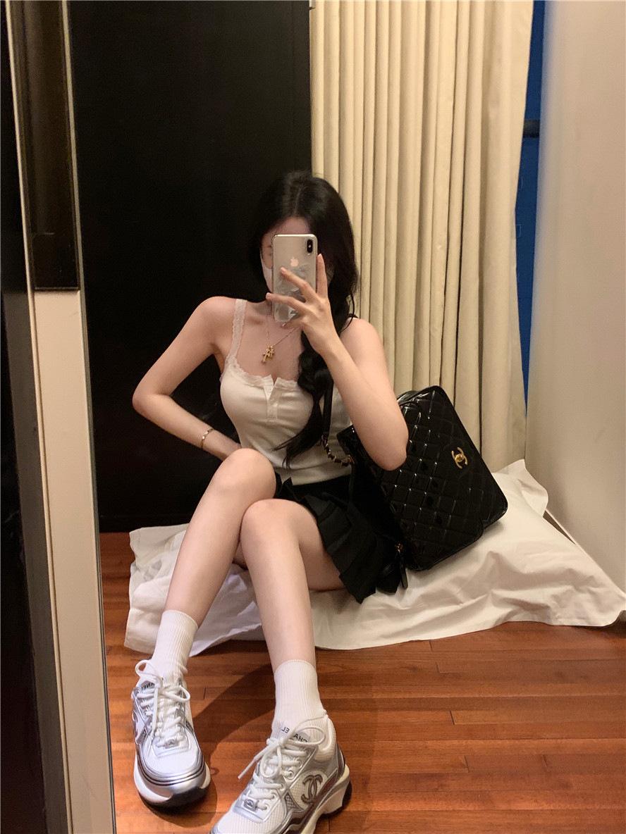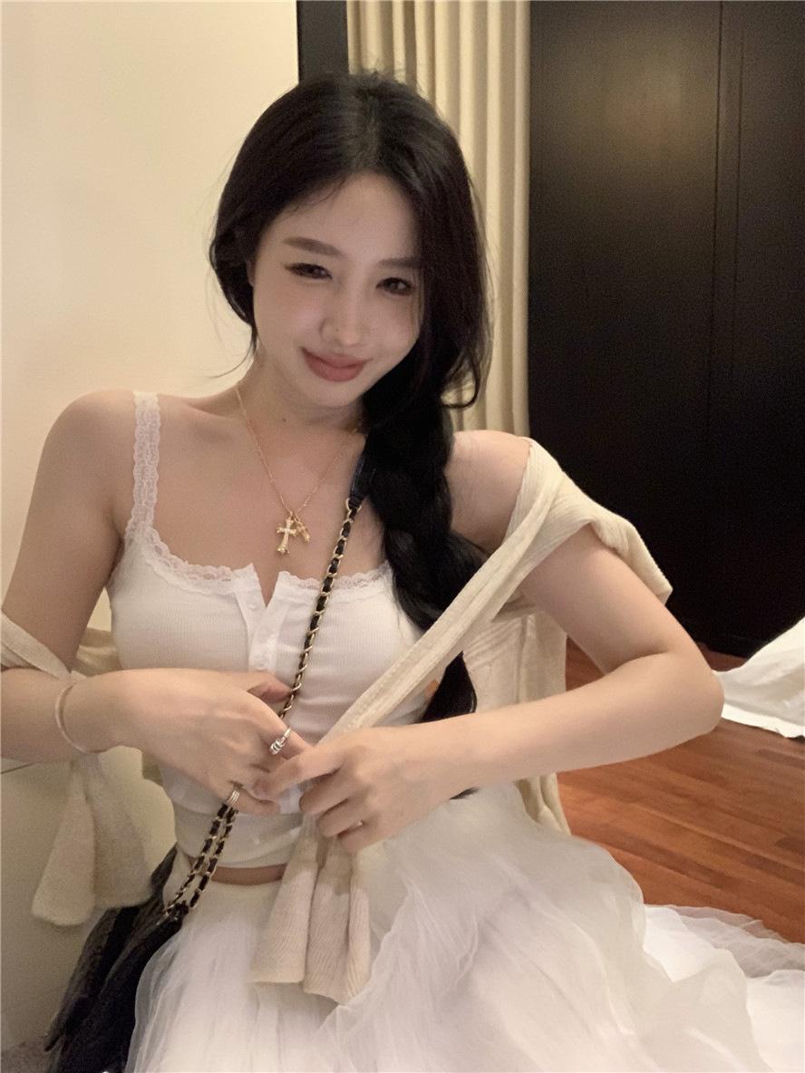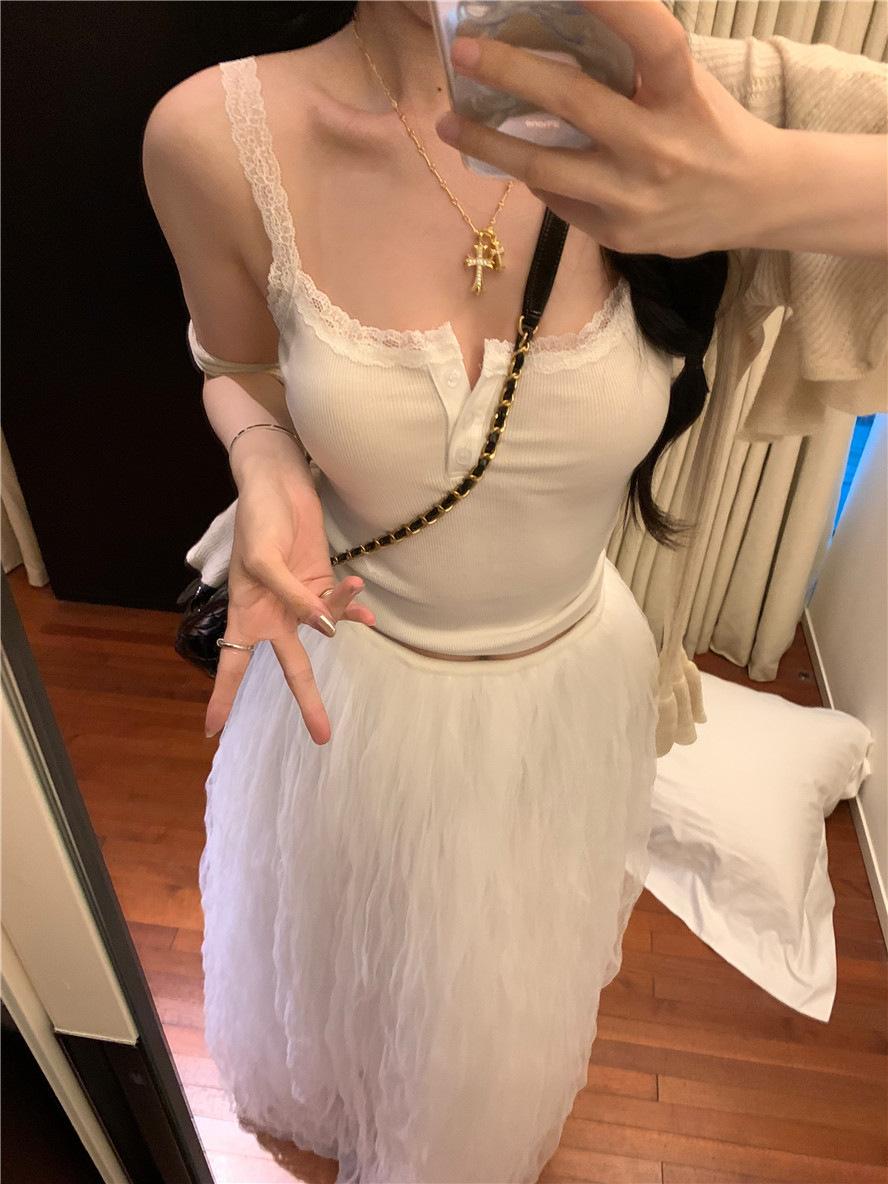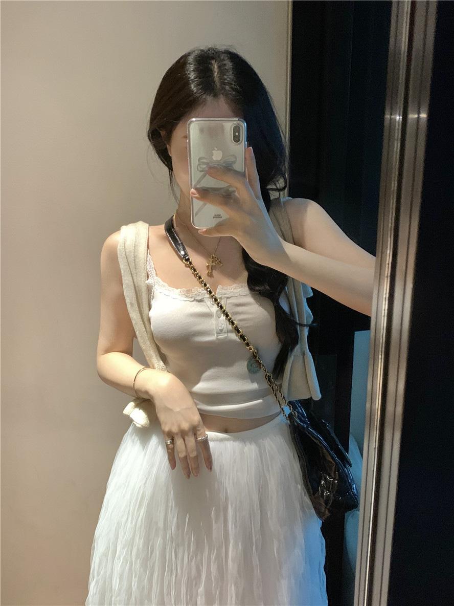 Camisola Estilo Lujuria Pura para Mujer Verano Encaje Slim Sexy Ropa Interior Color Puro Deseo Puro Sexy Top Corto Trendy