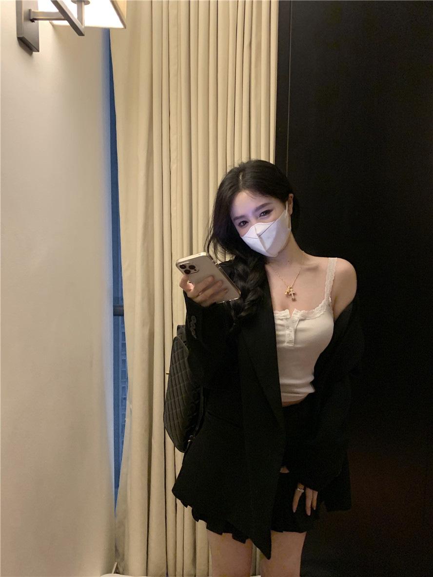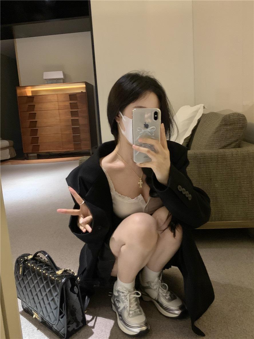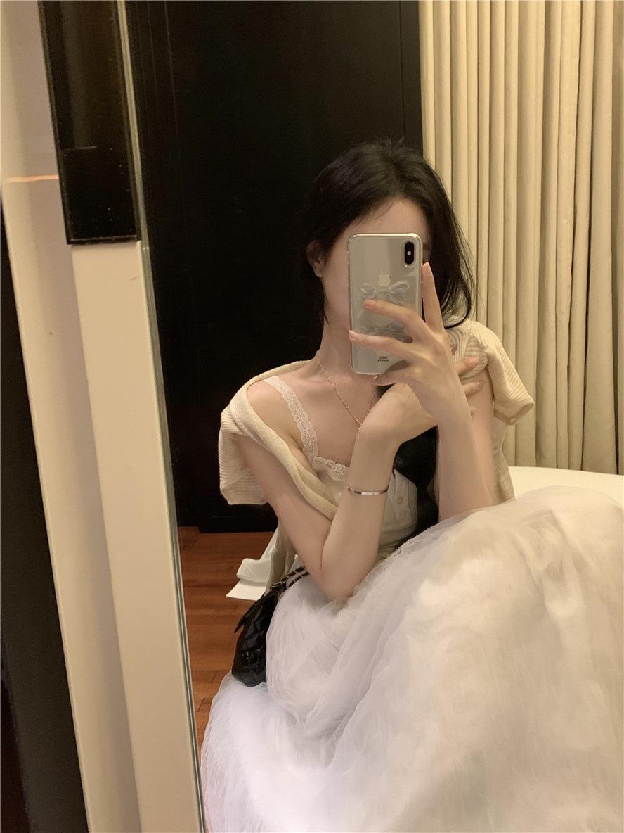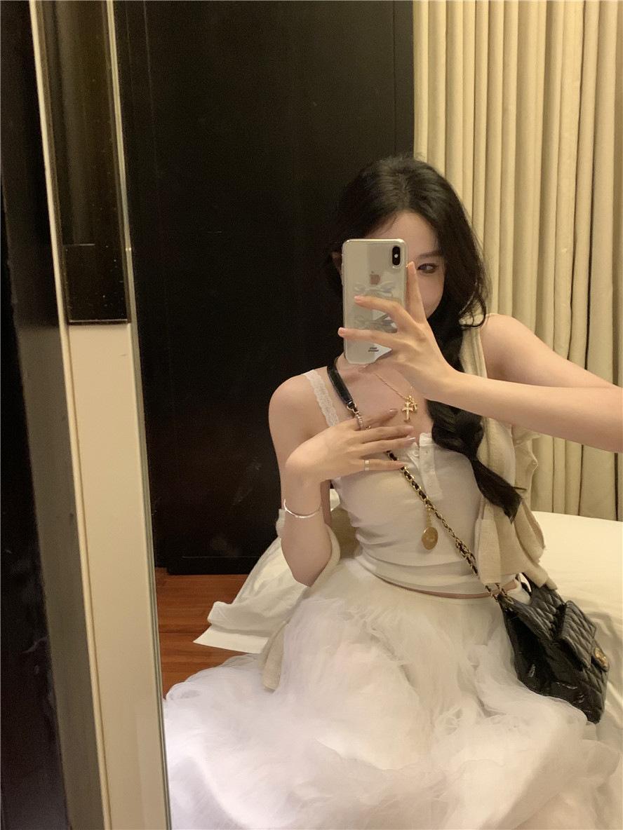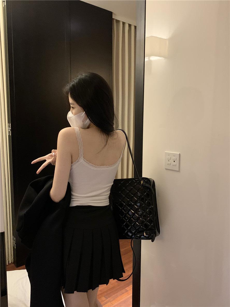 Camisola Estilo Lujuria Pura para Mujer Verano Encaje Slim Sexy Ropa Interior Color Puro Deseo Puro Sexy Top Corto Trendy