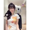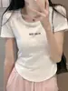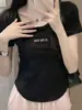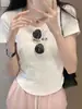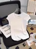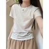 Camiseta de Algodón Puro de Hombro Derecho con Cuello Redondo y Manga Corta para Mujer Verano Nuevo Color Frambuesa Ajuste Entallado Cintura Pequeña Top Ballena de Moda