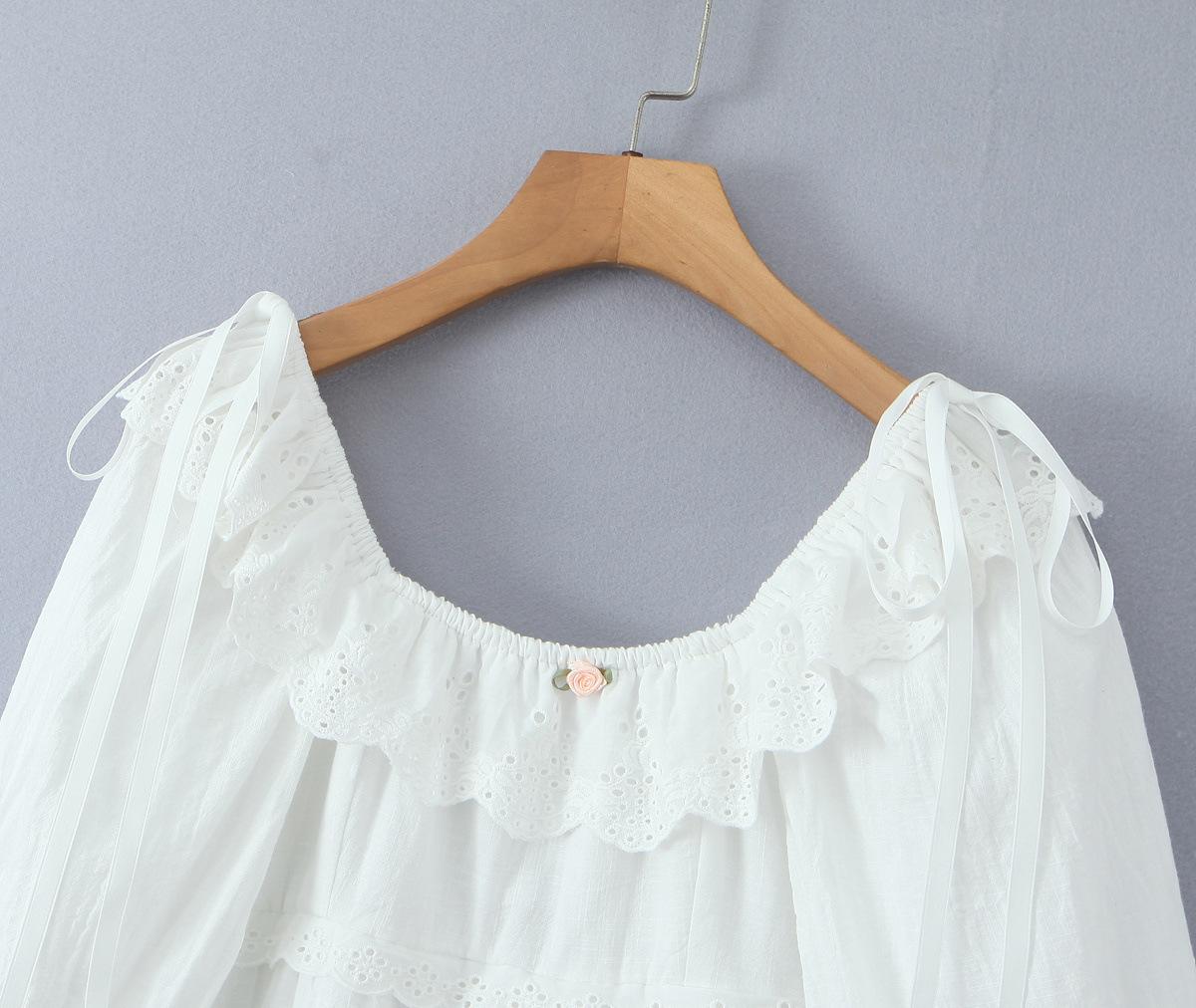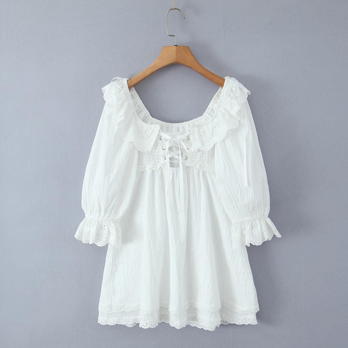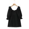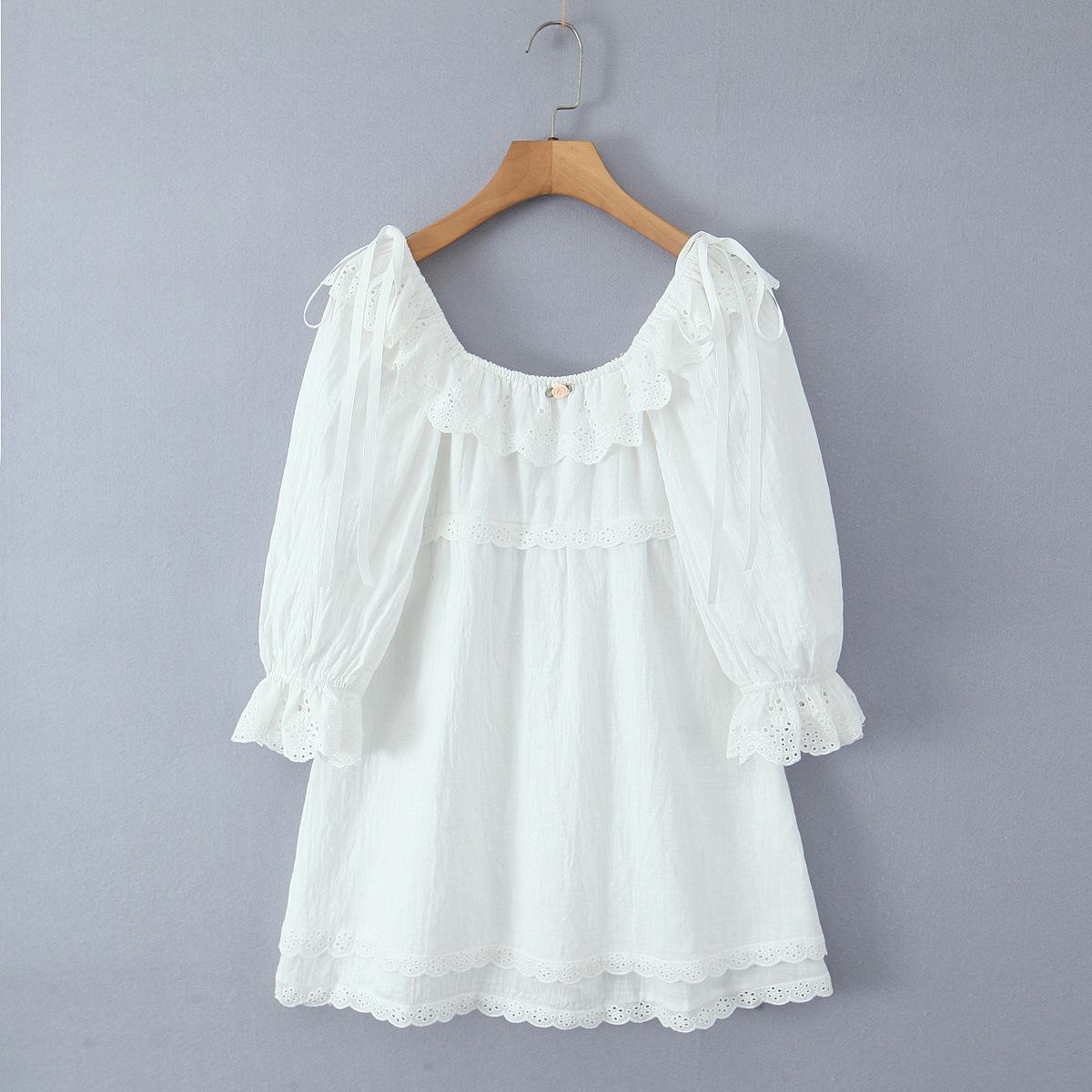 9765-25 Primavera Nuevo Vestido de Encaje Francés Puro Fresco con Cuello Cuadrado y Flores Pequeñas Tridimensionales de Doble Encaje