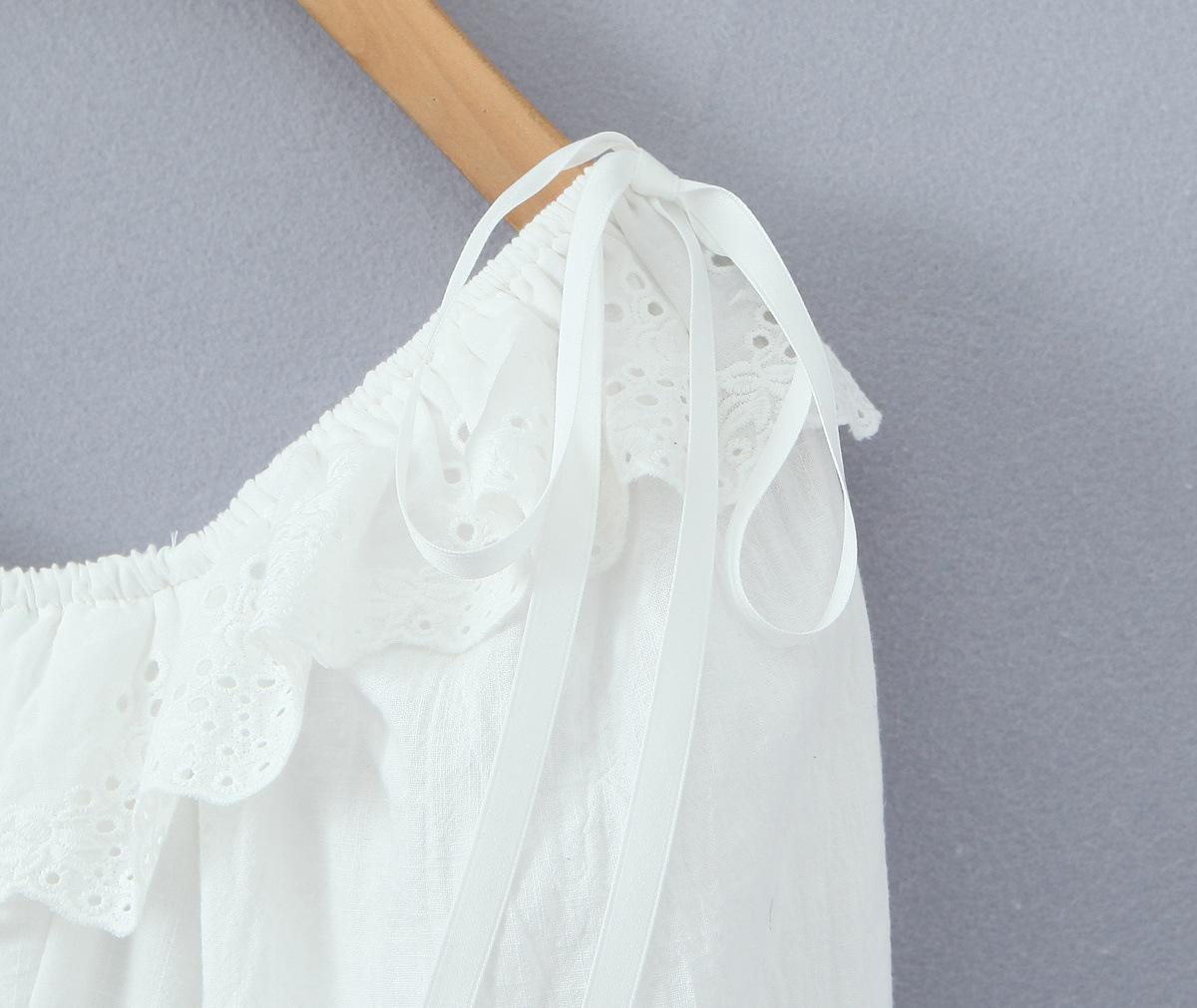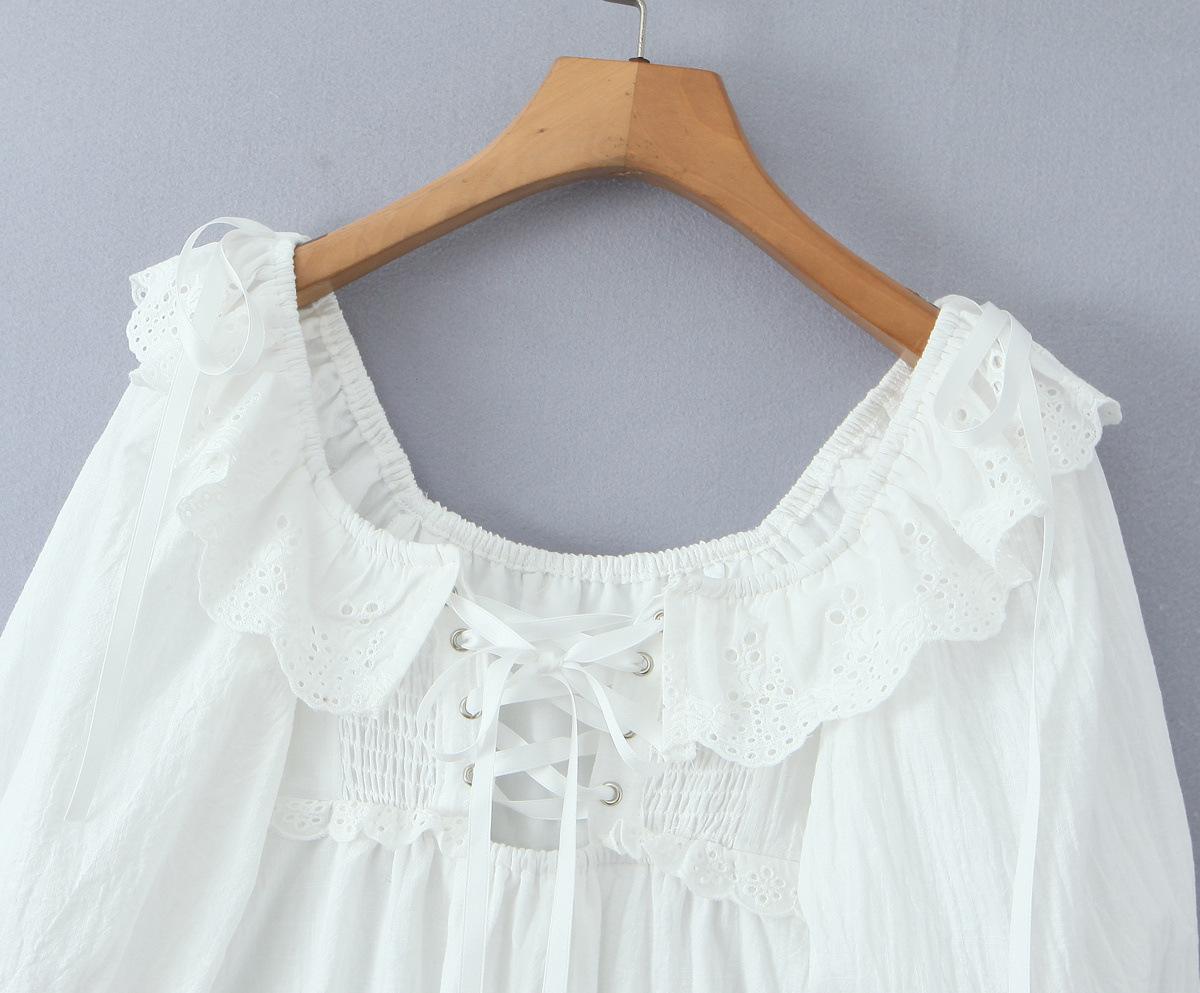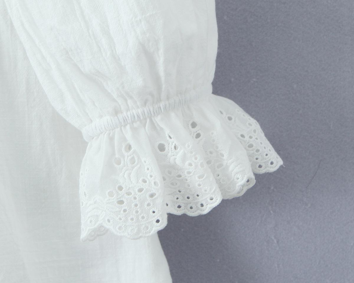 9765-25 Primavera Nuevo Vestido de Encaje Francés Puro Fresco con Cuello Cuadrado y Flores Pequeñas Tridimensionales de Doble Encaje