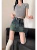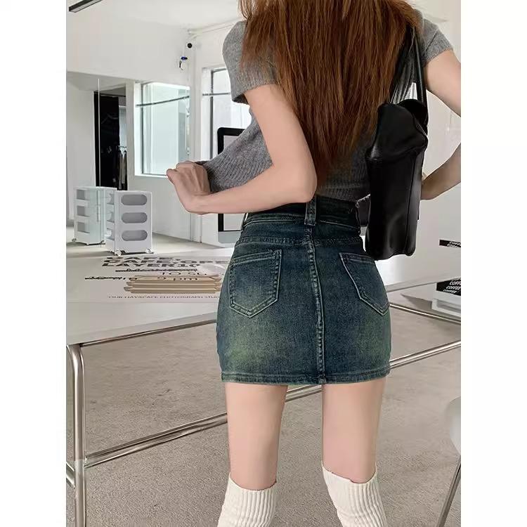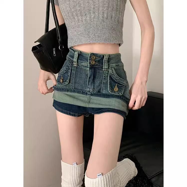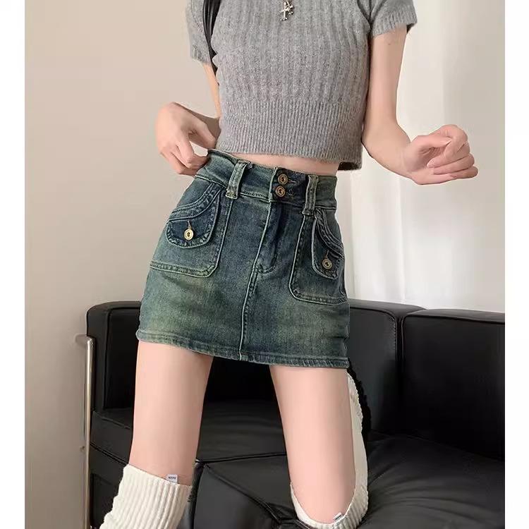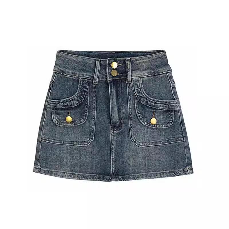 Falda vaquera de cintura alta vintage pequeña para mujer, falda acampanada recta y adelgazante, combinable, de verano, nueva llegada