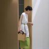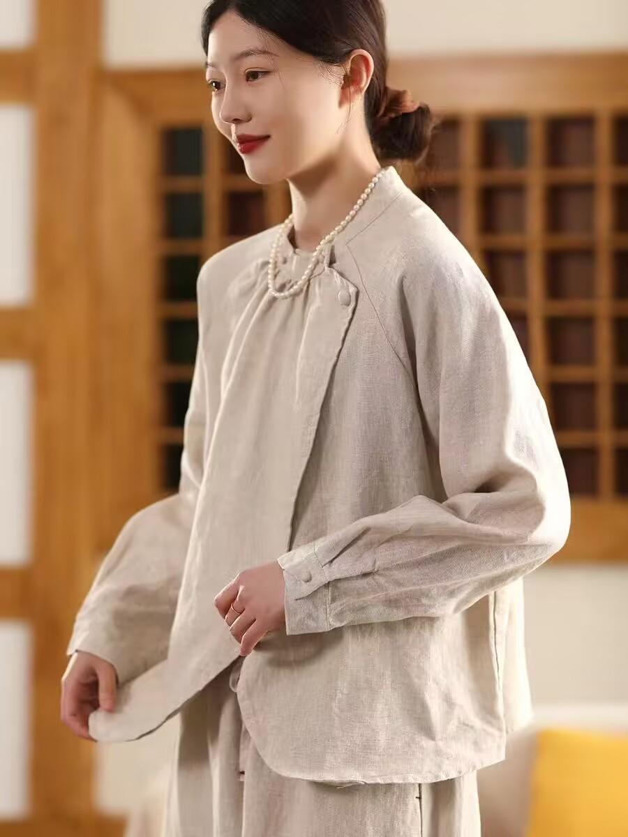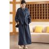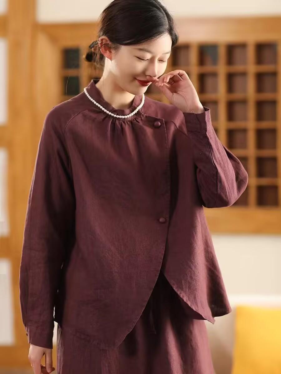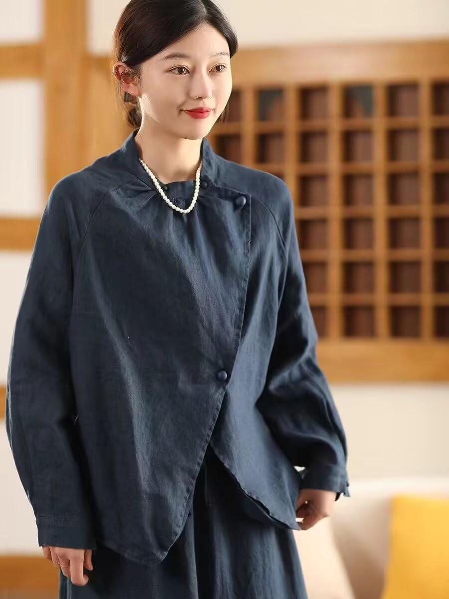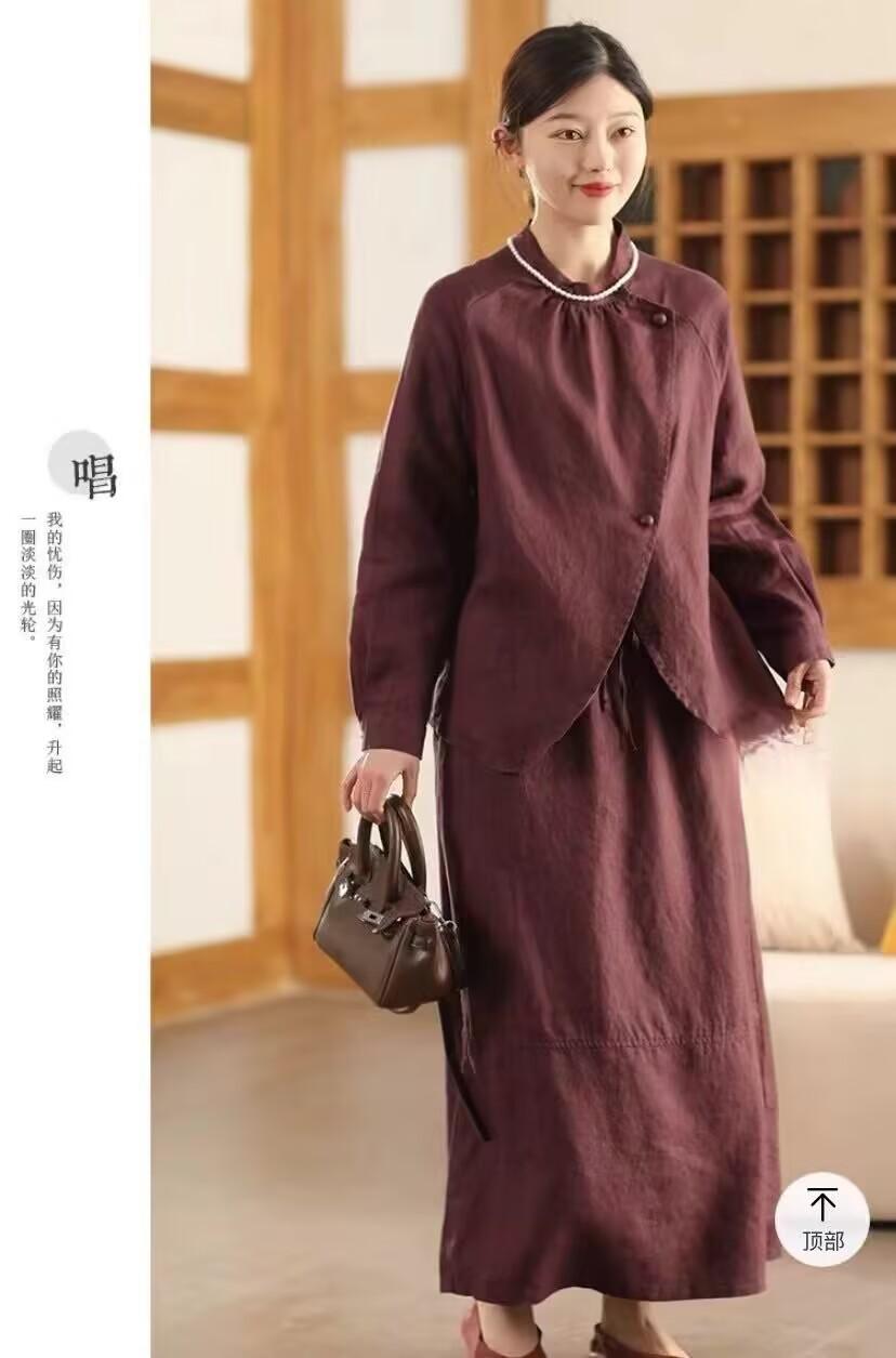 Conjunto de dos piezas de lino para mujer, falda y camisa, primavera, artístico, simple, moda, temperamento, alta gama, estilo occidental