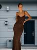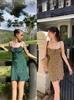 Vestido lencero elegante retro con escote en V y encaje sin mangas, primavera y verano 2025, nuevo vestido sexy sin espalda y cintura alta.