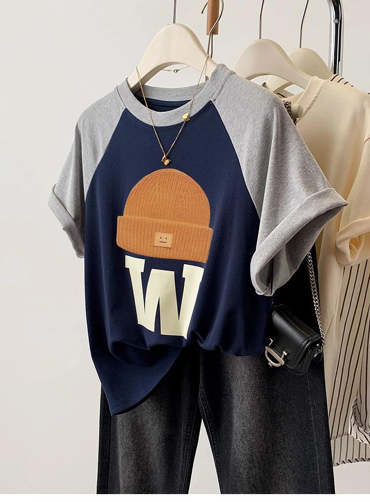 Playera de Manga Corta Estilo Casual Coreano Pequeña para Mujer 2025 Nueva Diseño de Verano de Algodón Puro Top de Manga Raglán