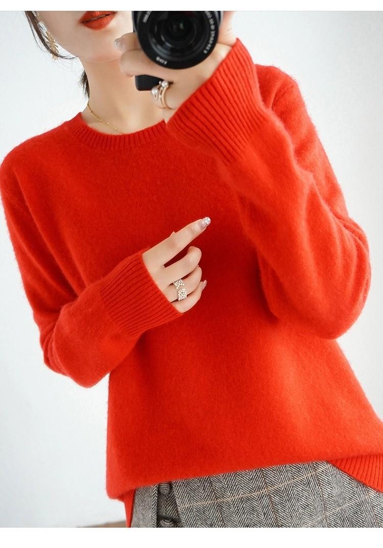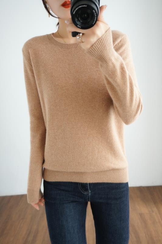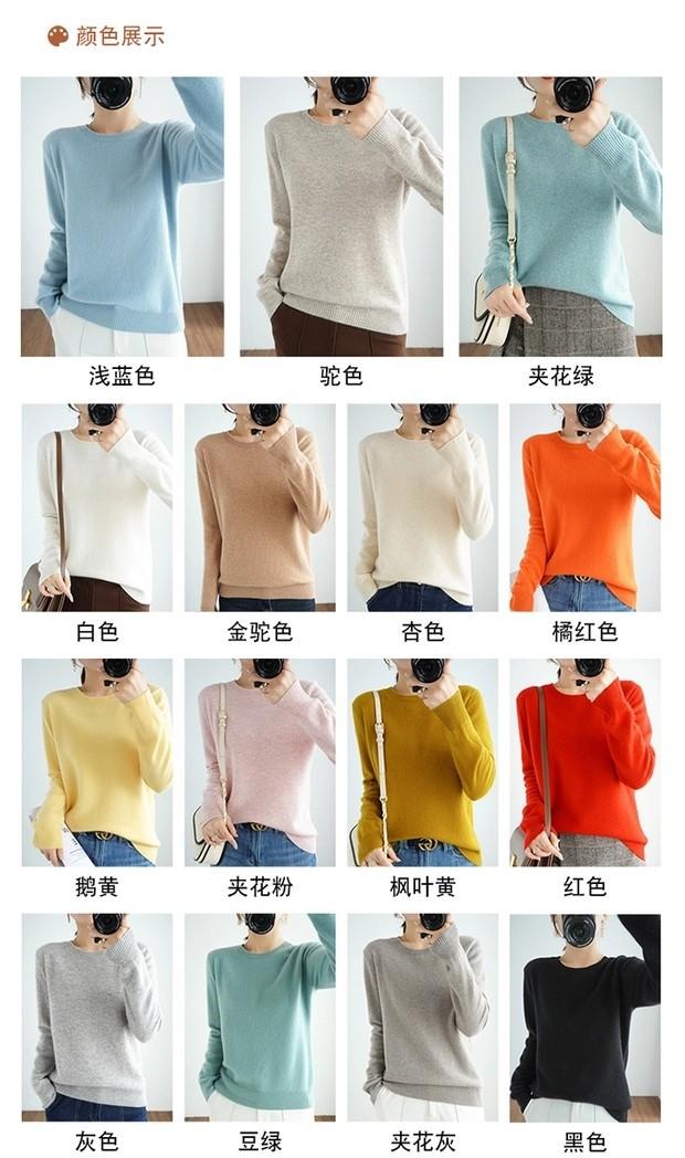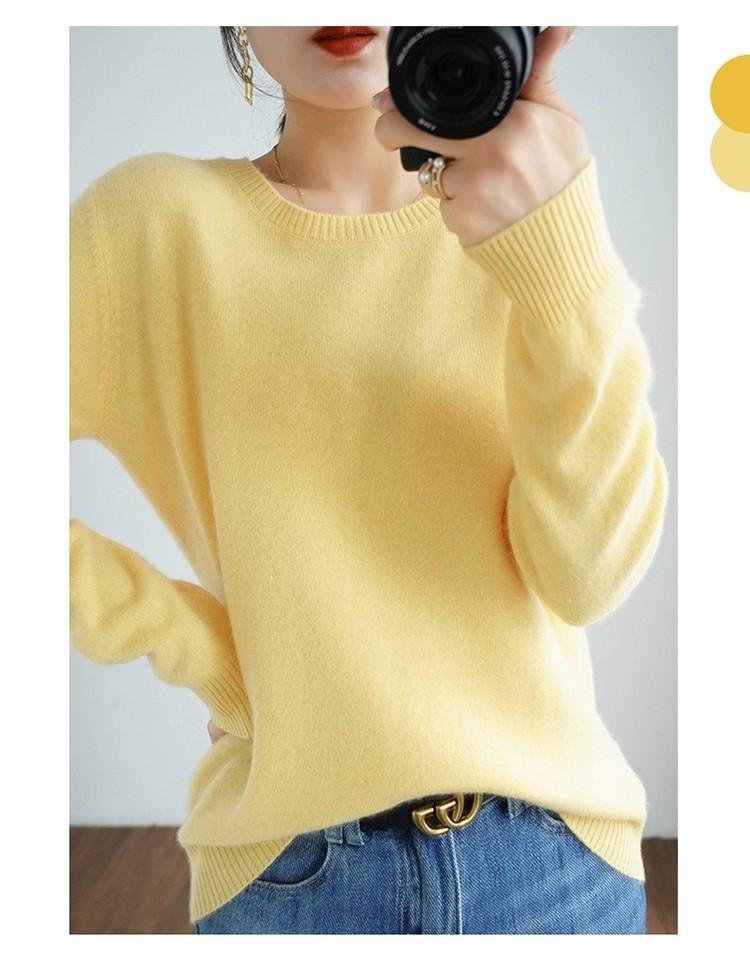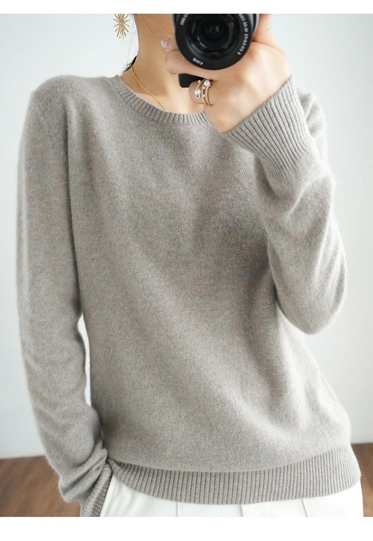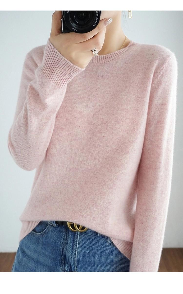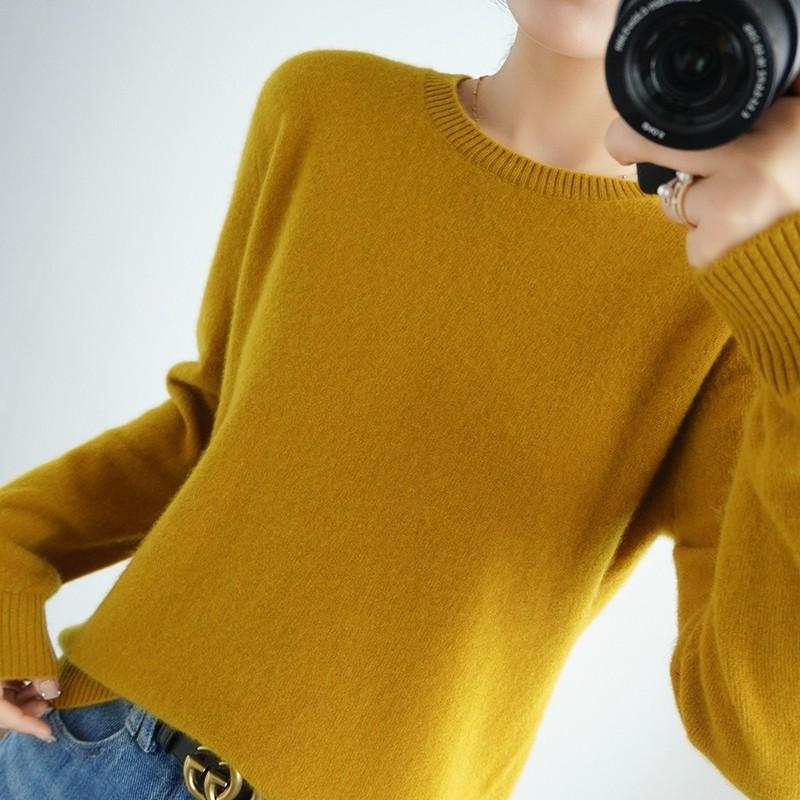 Otoño e Invierno Nuevo Estilo 100 Lana Pura Tejido de Punto Suéter Clásico de Cuello Redondo para Mujer Suelto Cálido Tejido de Punto Camiseta Base Dulce