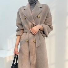 Abrigo de cachemira de doble cara Albaca Alpaca para mujer, de longitud media, estilo cinturón, de lana gruesa para otoño e invierno.