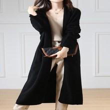 Cárdigan de punto de lana 100% para mujer, blusa francesa de principios de otoño e invierno, abrigo largo holgado, suéter extra largo