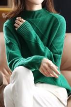 Suéter de cuello alto de lana pura 100% para mujer, suéter de cuello alto suelto de lana, camisa de punto de cachemira, otoño e invierno, 21