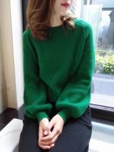 Suéter de cachemira para mujer, otoño e invierno 2021, cuello redondo, suelto, grueso, con mangas abullonadas, de lana de punto
