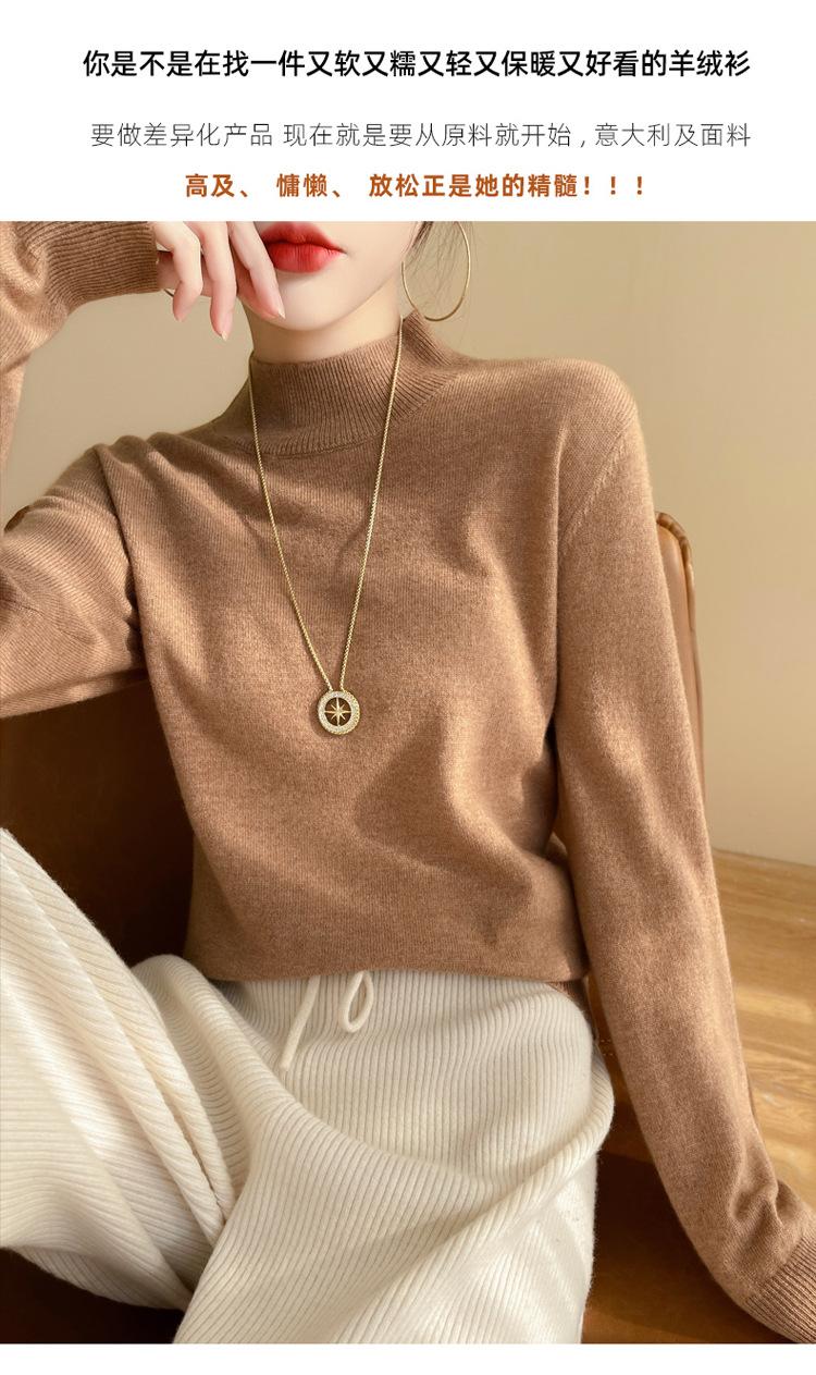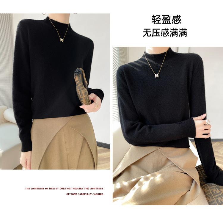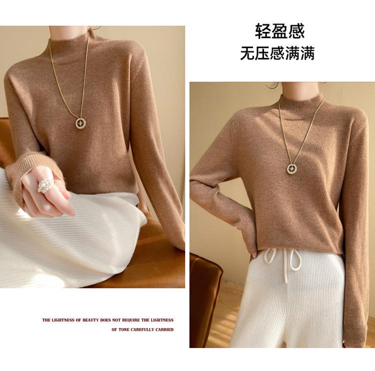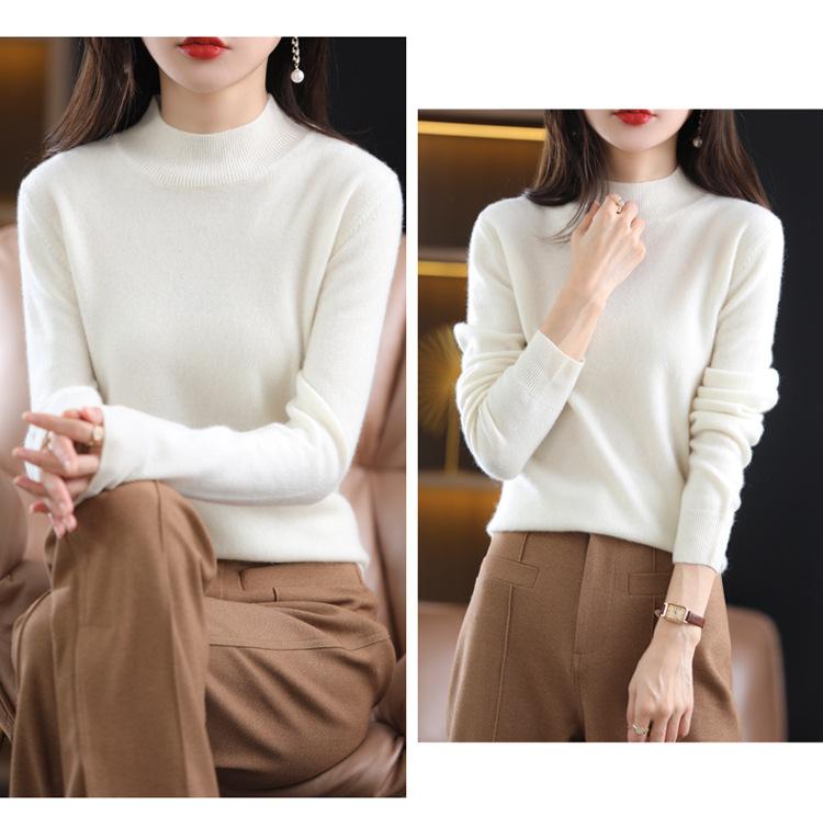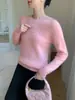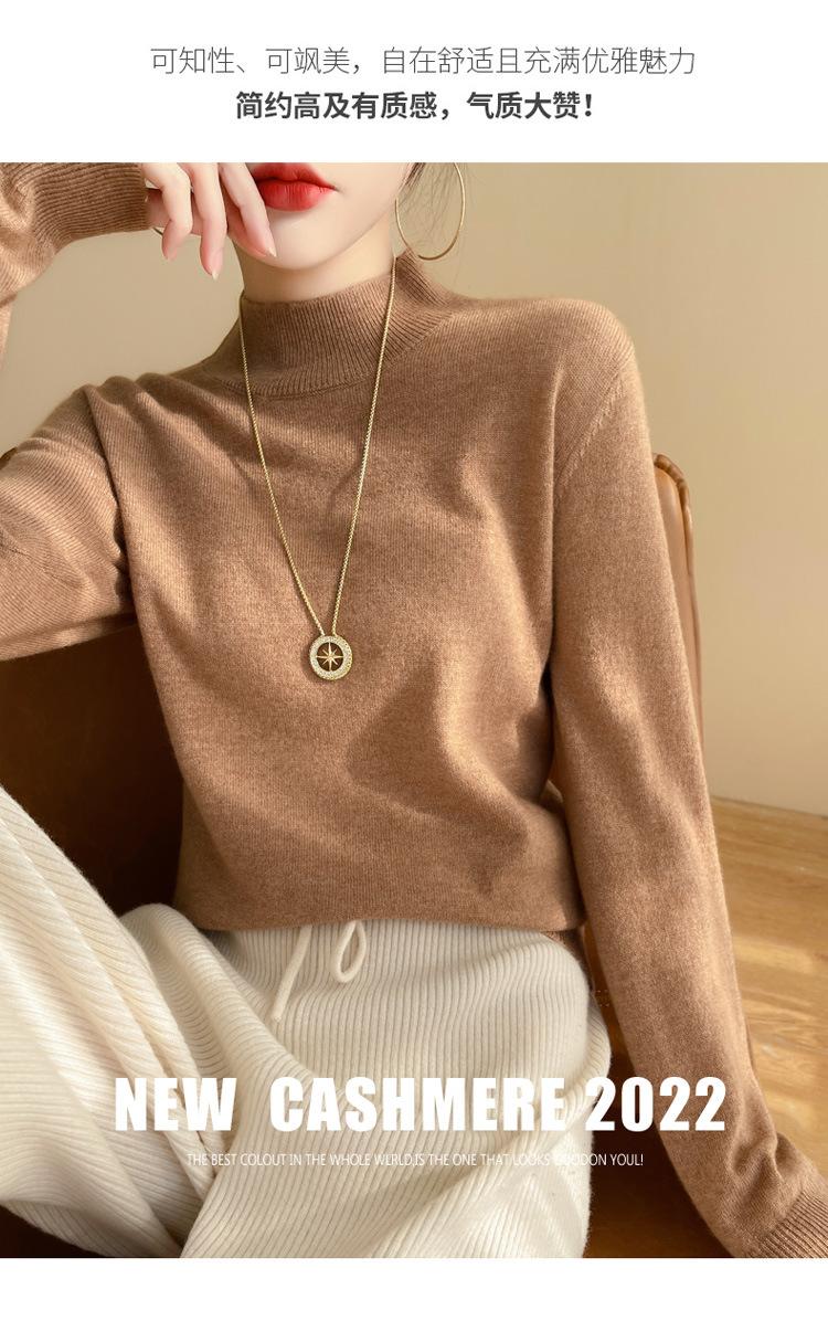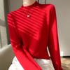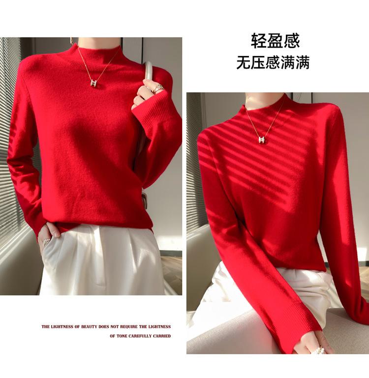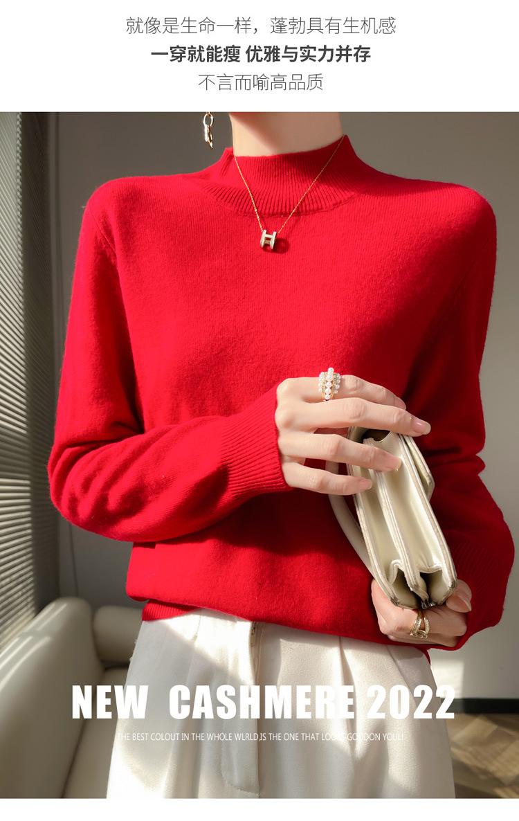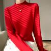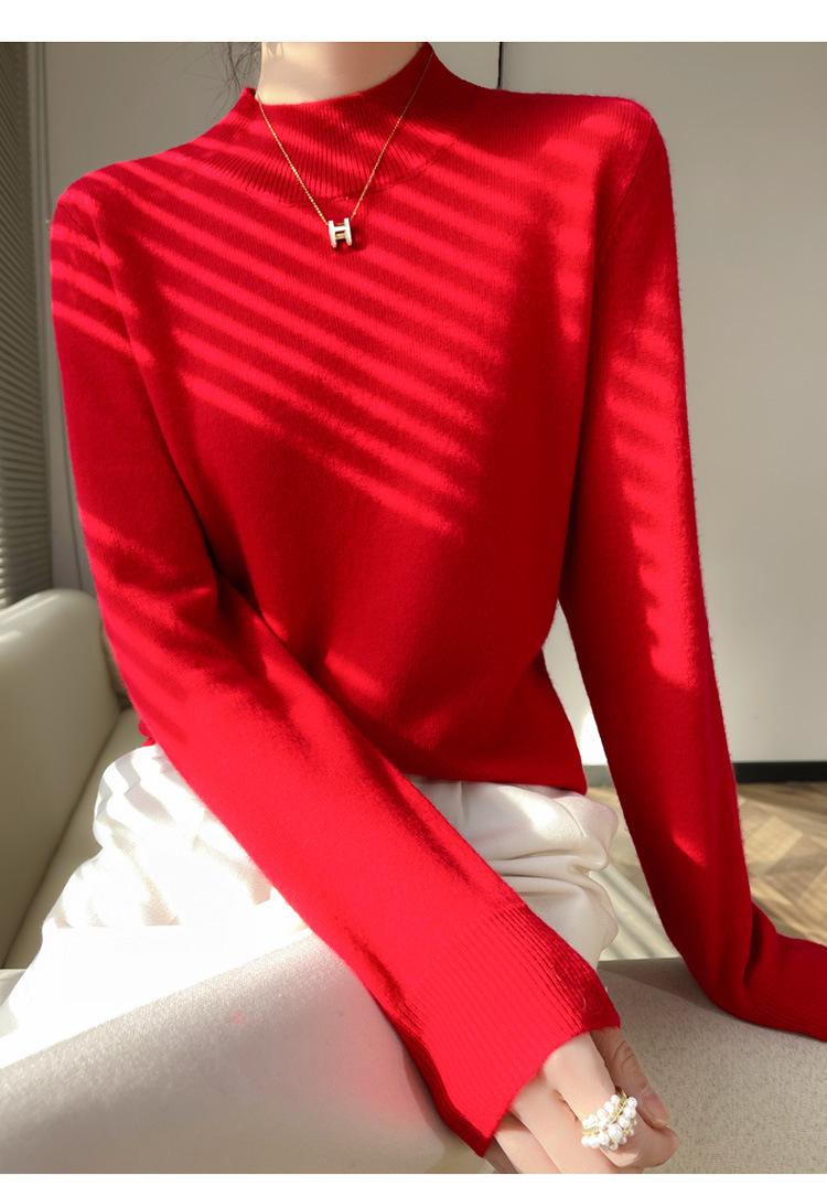 Nueva camisa básica de cuello medio alto de cachemira para mujer, suéter de otoño e invierno, jersey de lana de punto de corte entallado para mujer, estilo occidental rojo