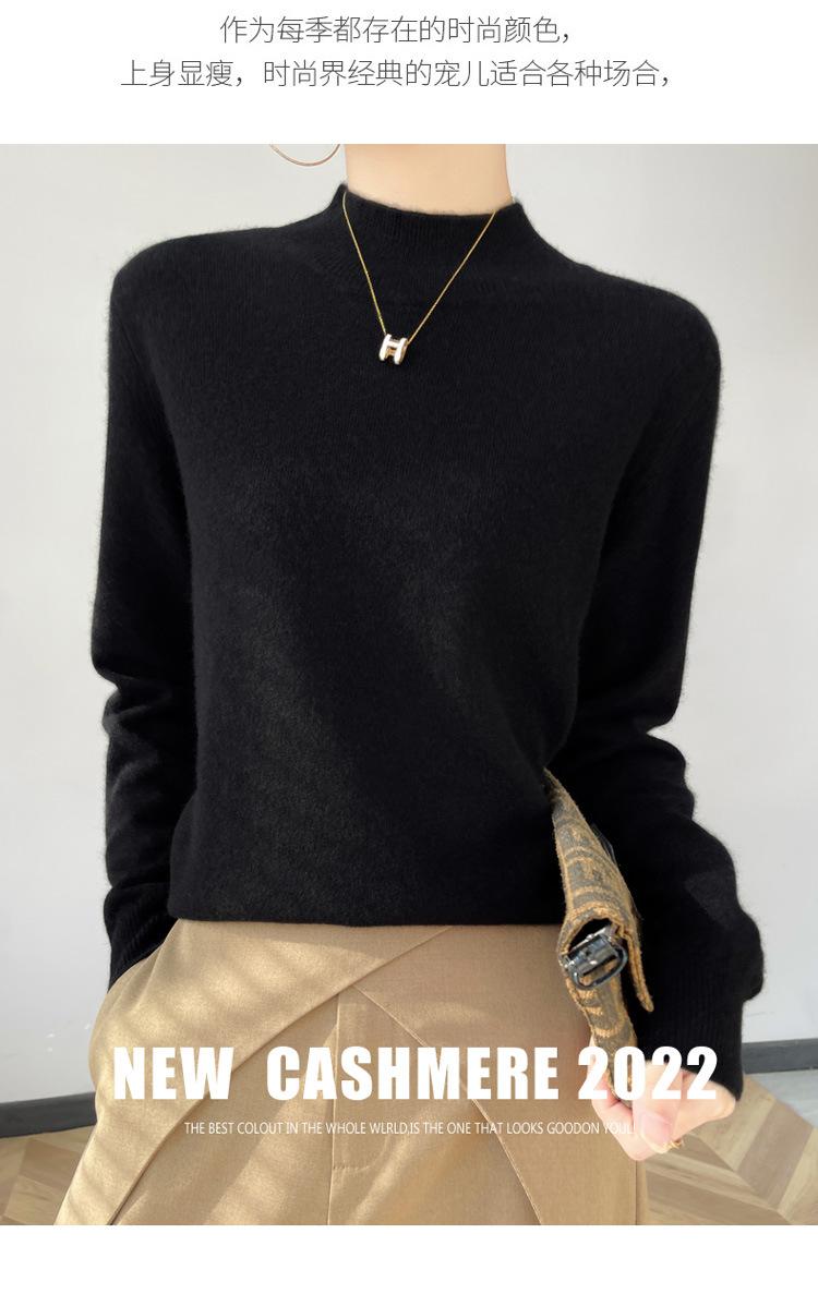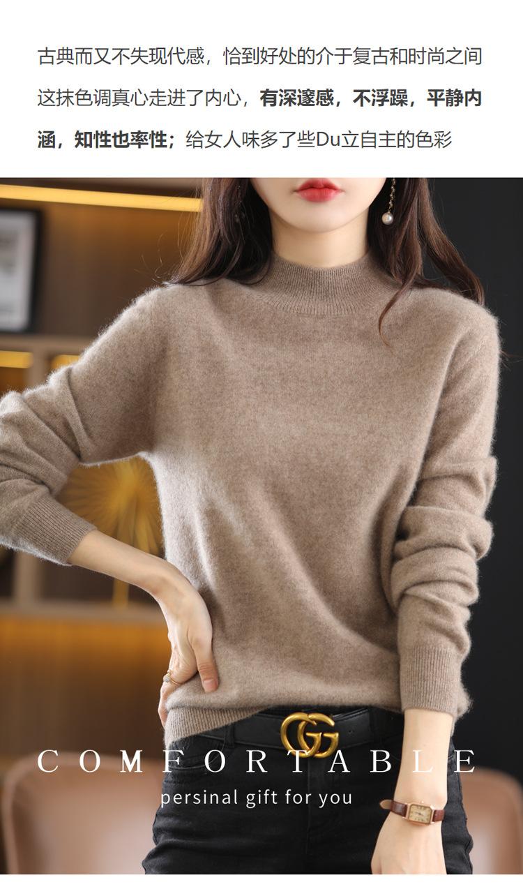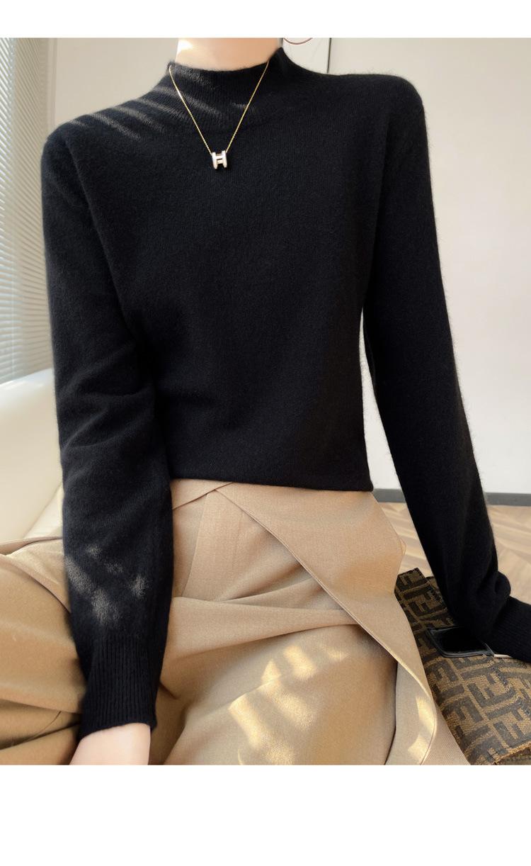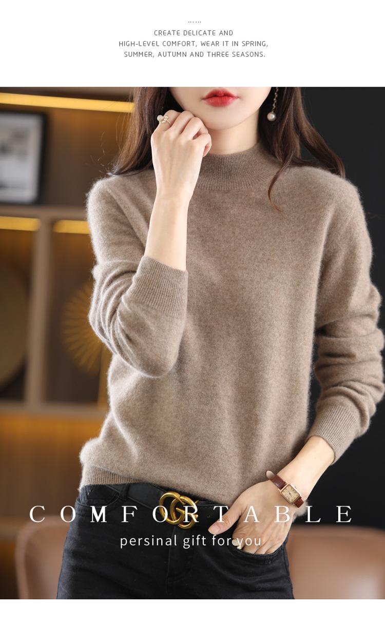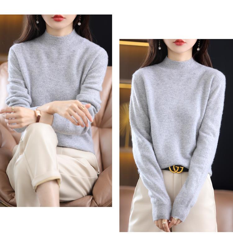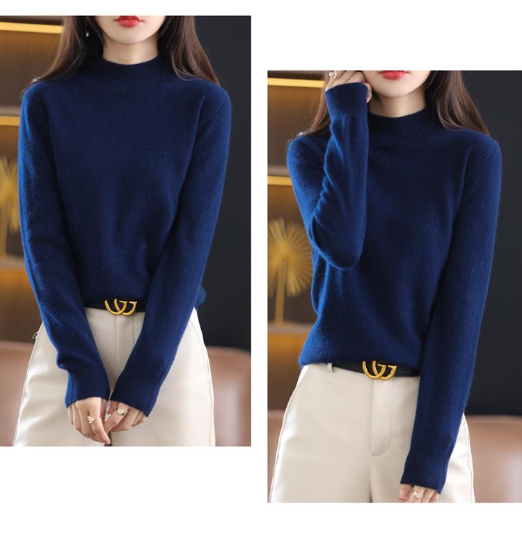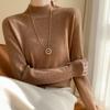 Nueva camisa básica de cuello medio alto de cachemira para mujer, suéter de otoño e invierno, jersey de lana de punto de corte entallado para mujer, estilo occidental rojo