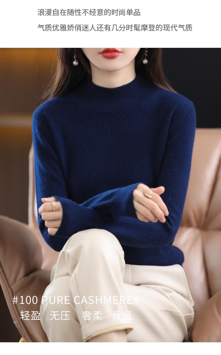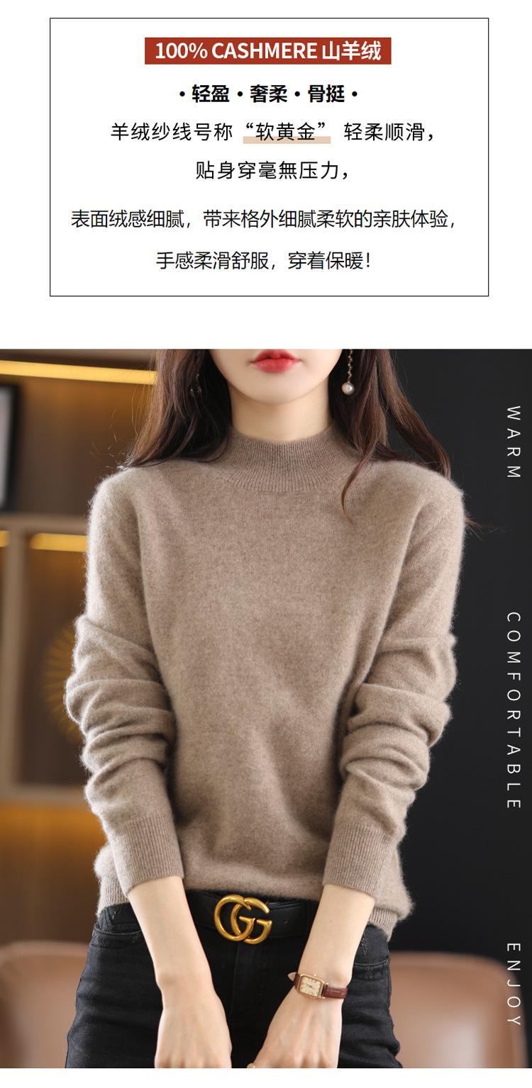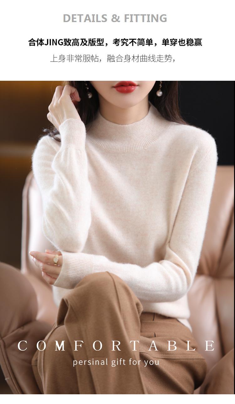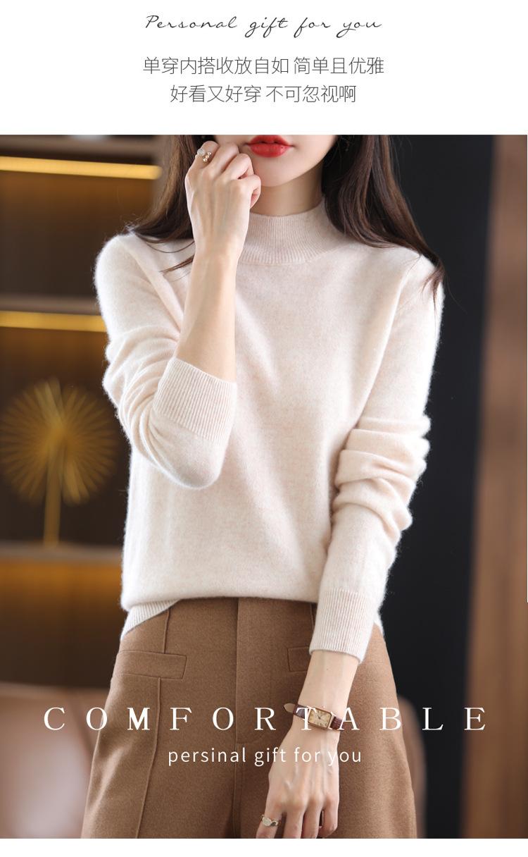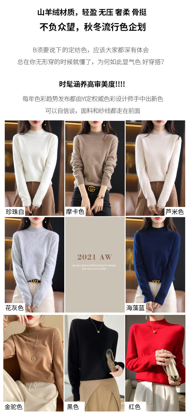 Nueva camisa básica de cuello medio alto de cachemira para mujer, suéter de otoño e invierno, jersey de lana de punto de corte entallado para mujer, estilo occidental rojo