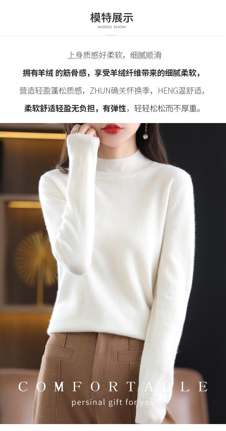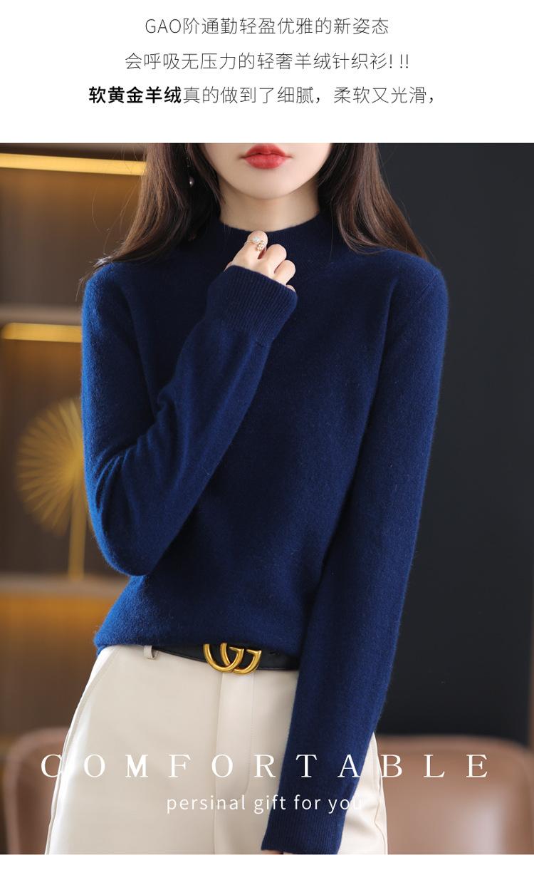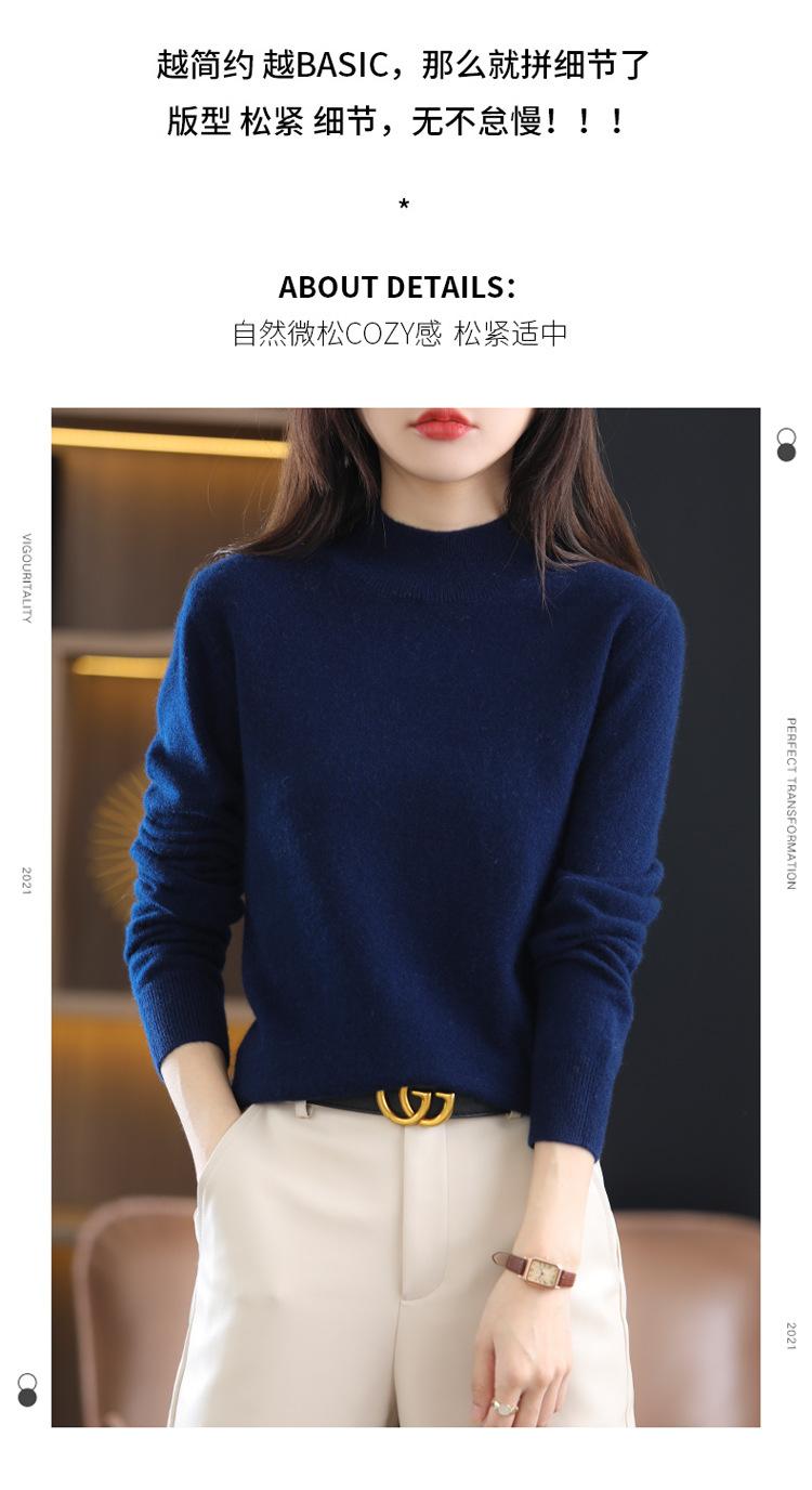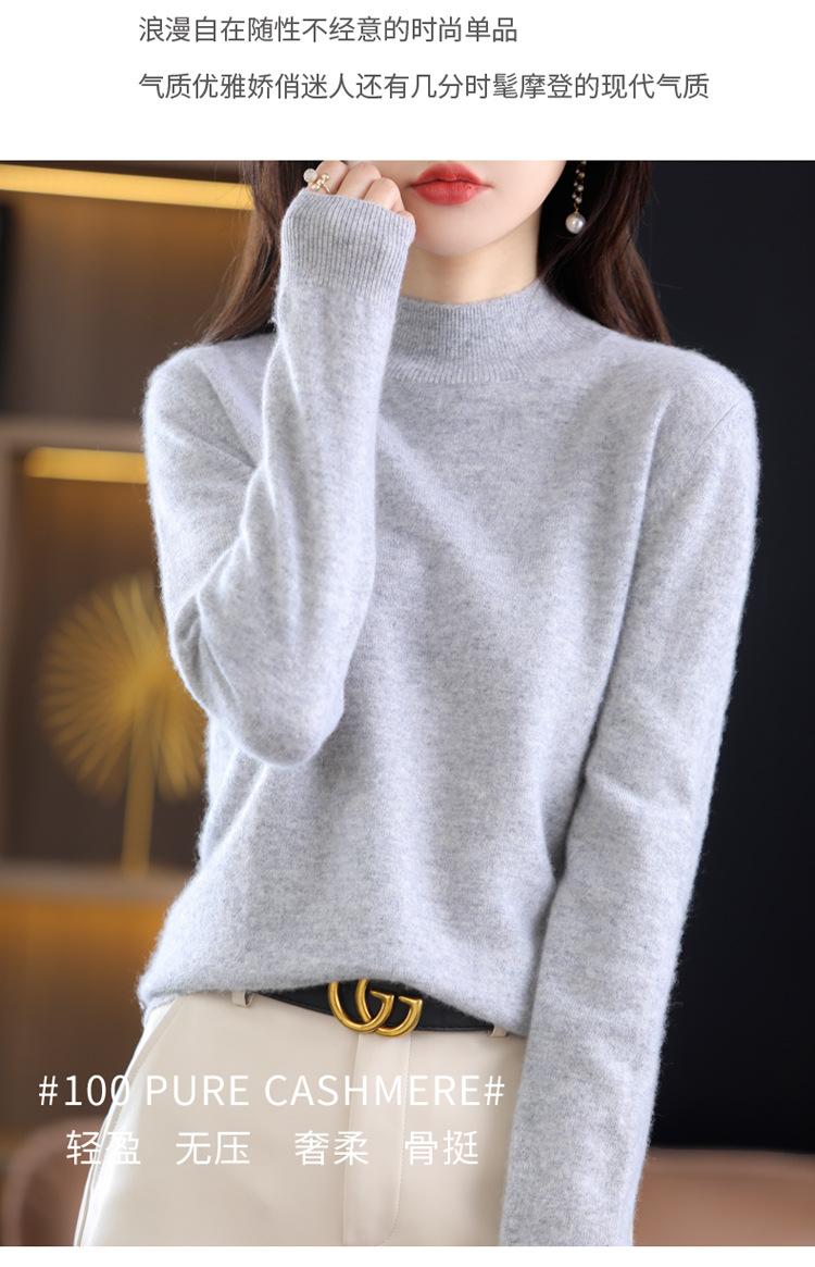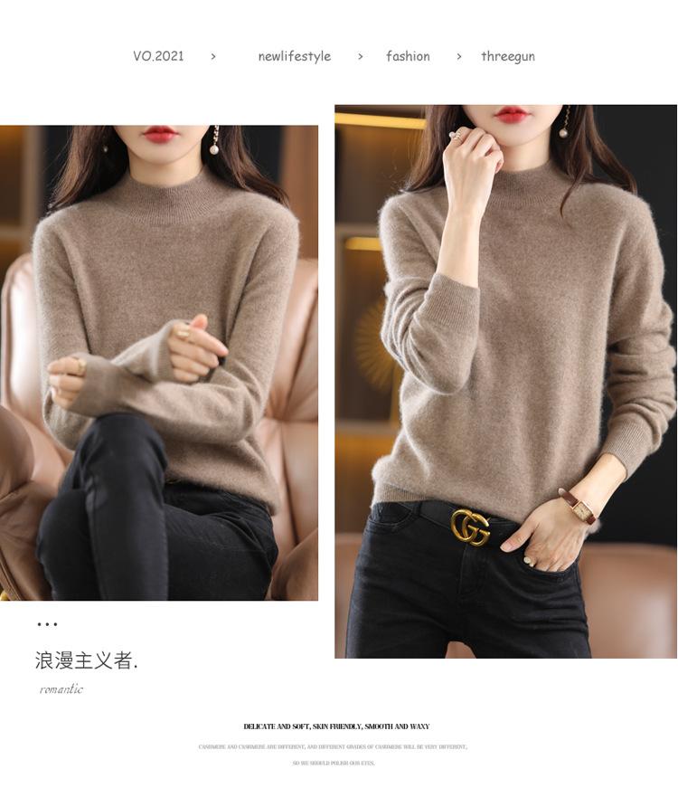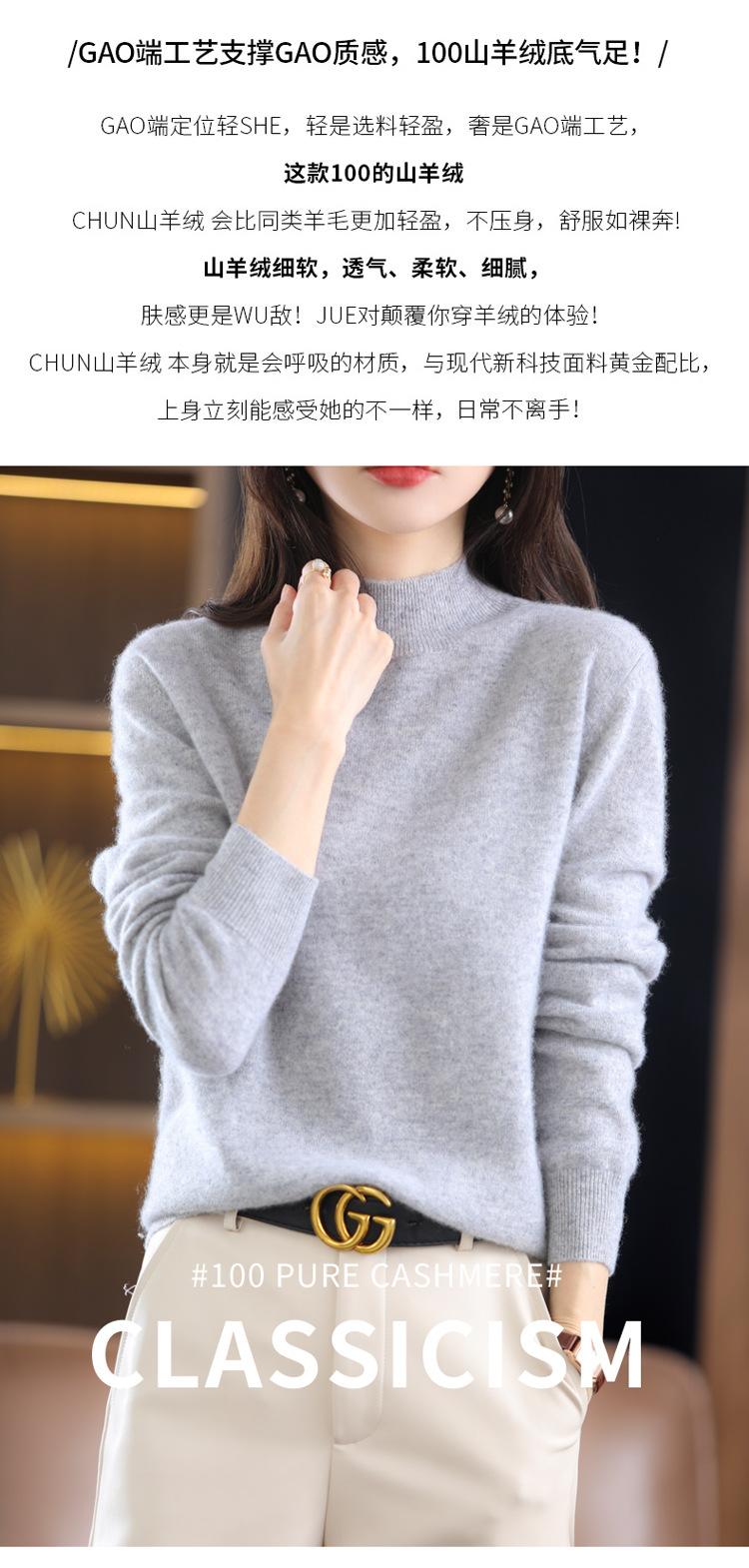 Nueva camisa básica de cuello medio alto de cachemira para mujer, suéter de otoño e invierno, jersey de lana de punto de corte entallado para mujer, estilo occidental rojo