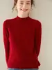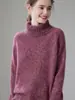 Suéter de cachemira de otoño e invierno para mujer, suéter de cuello alto medio, manga larga, base gruesa, suéter holgado de cachemira.