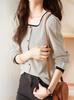 Camiseta básica informal sencilla y combinable con todo para mujer, de punto elástico con rayas en contraste, primavera y otoño de 2025.