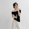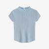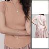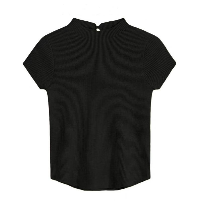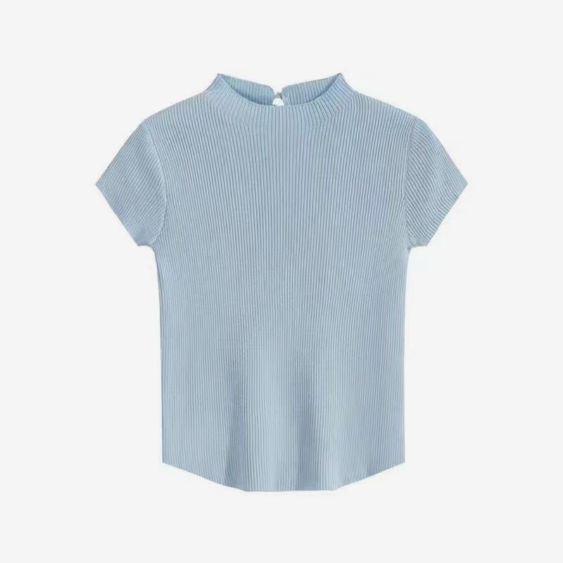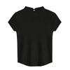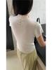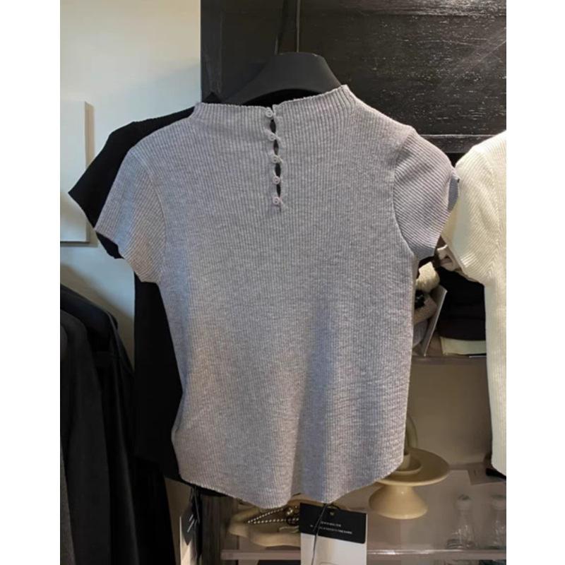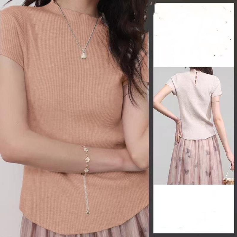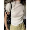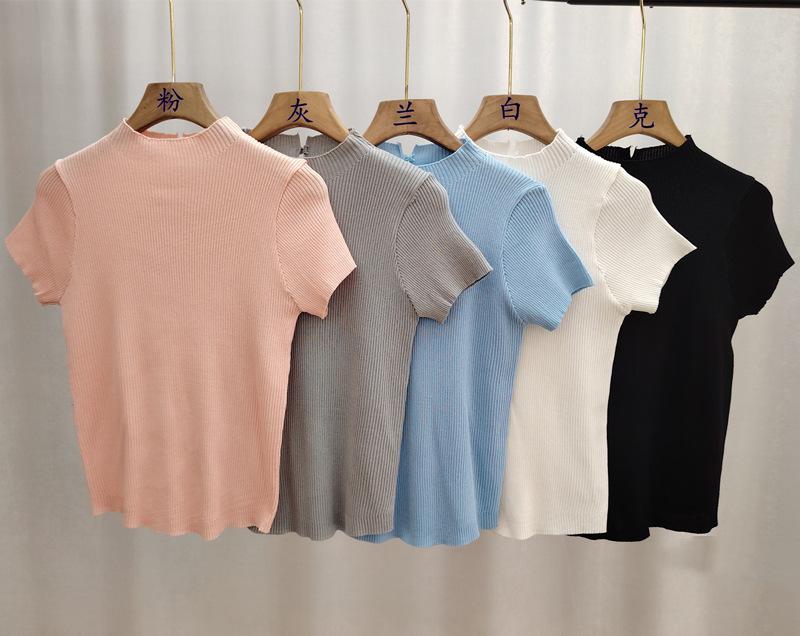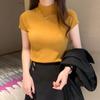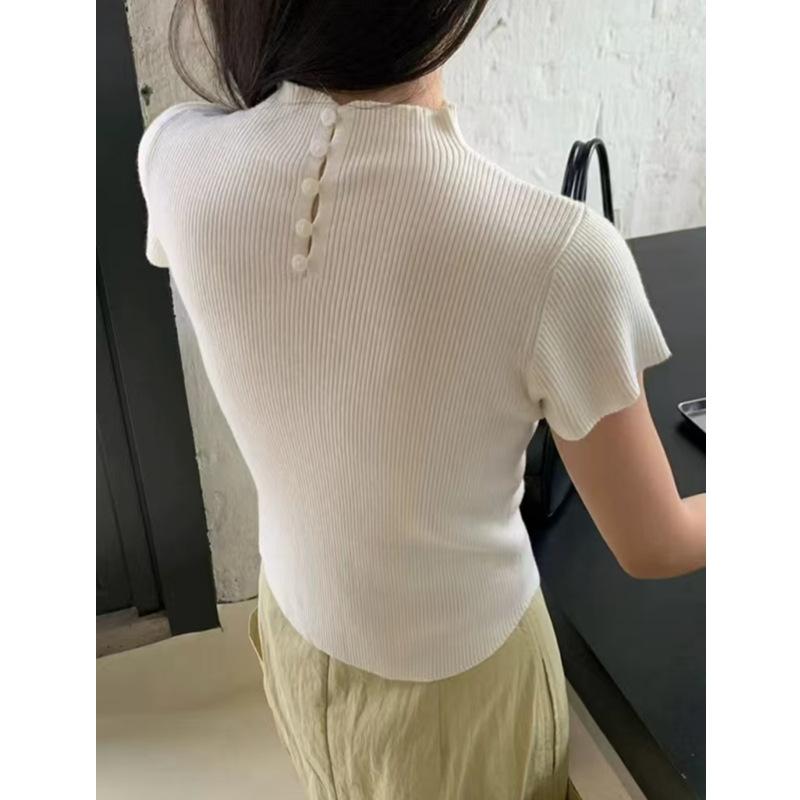 Suéter de punto de manga corta con cuello medio alto para mujer, nuevo diseño de verano 2025, top de punto corto ajustado y adelgazante.