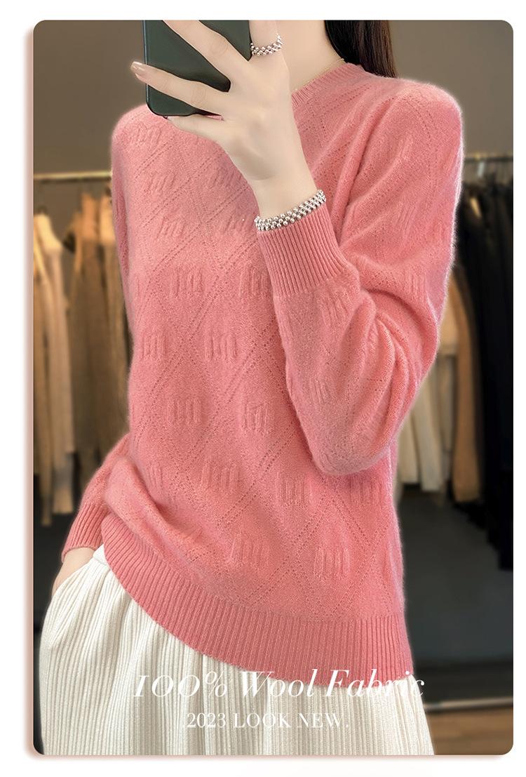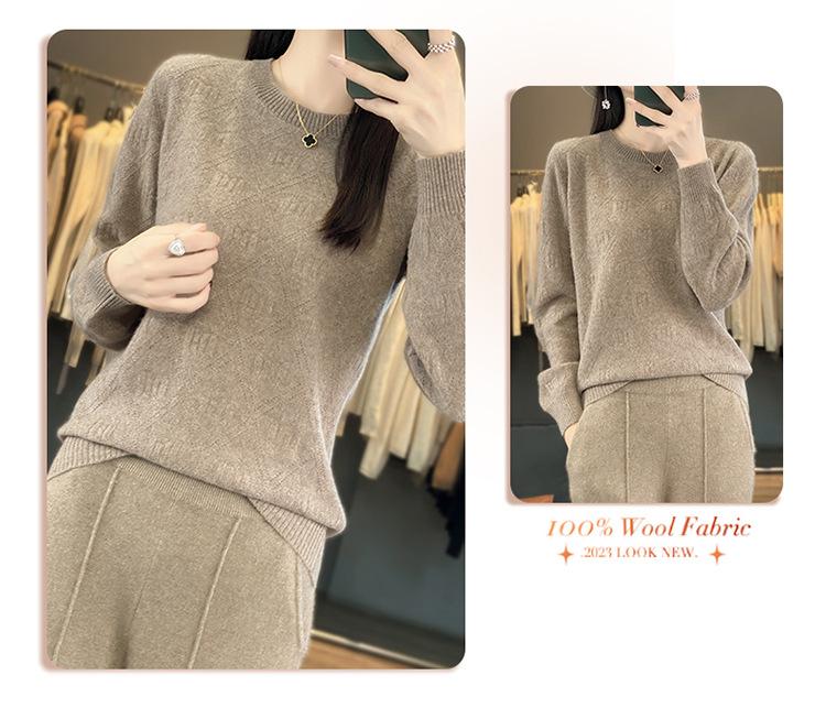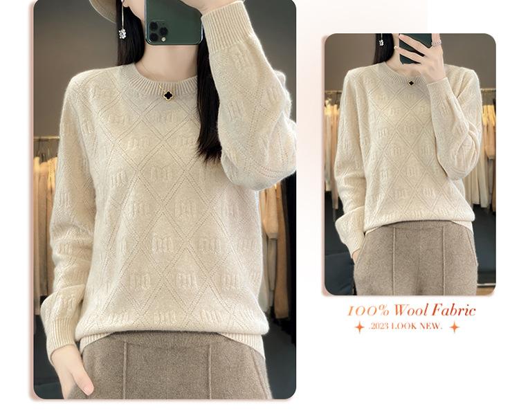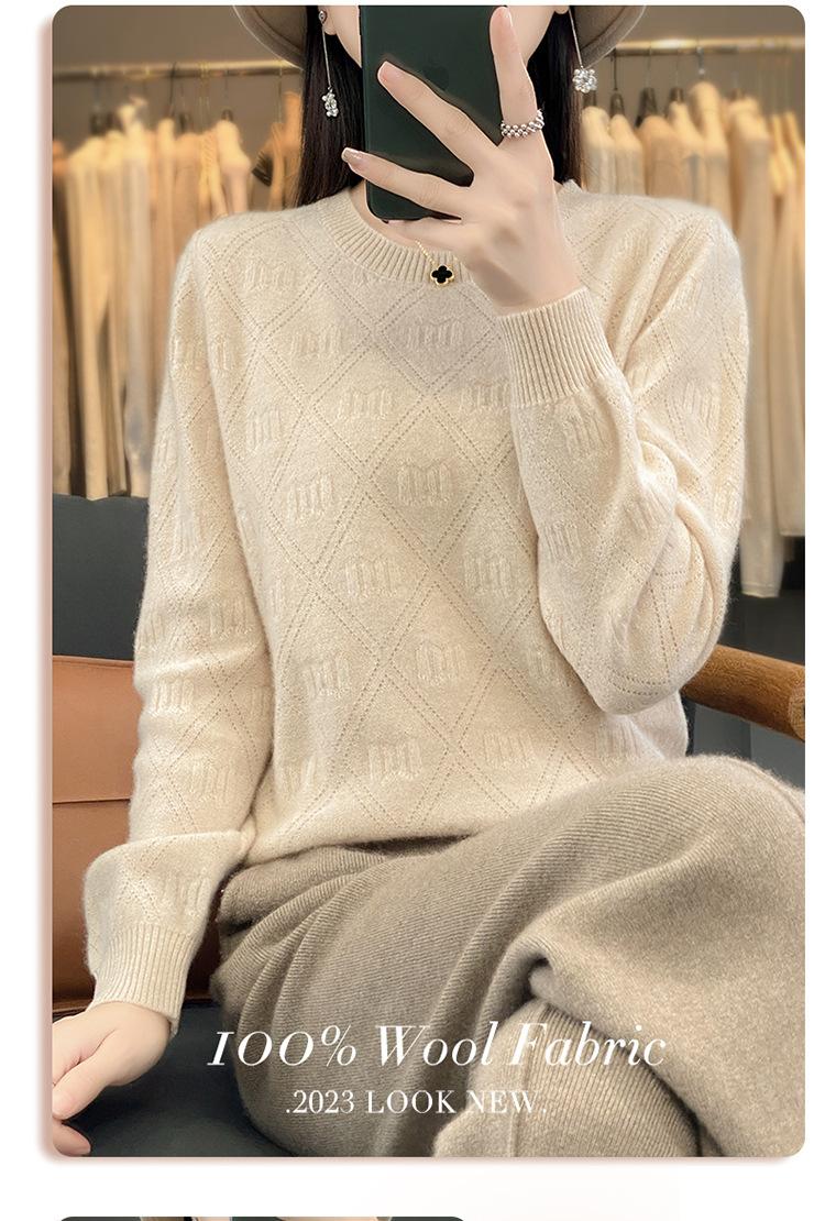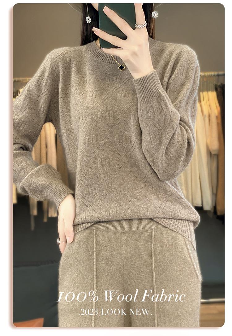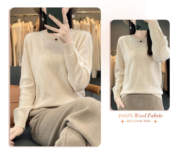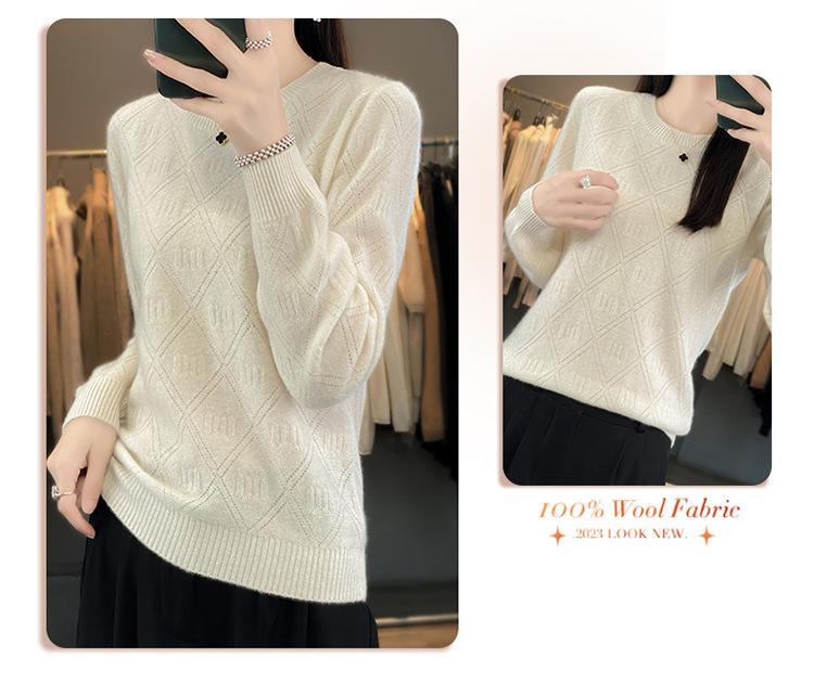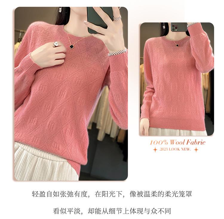 24 Otoño e Invierno Nuevo Color Sólido Cuello Redondo Pulóver Diamante Flor Trenzada 100 Suéter Suéter Holgado Para Mujer Versátil Aguja