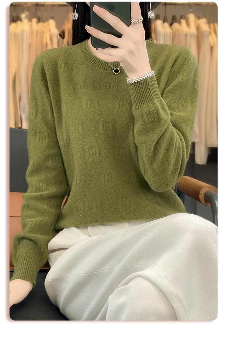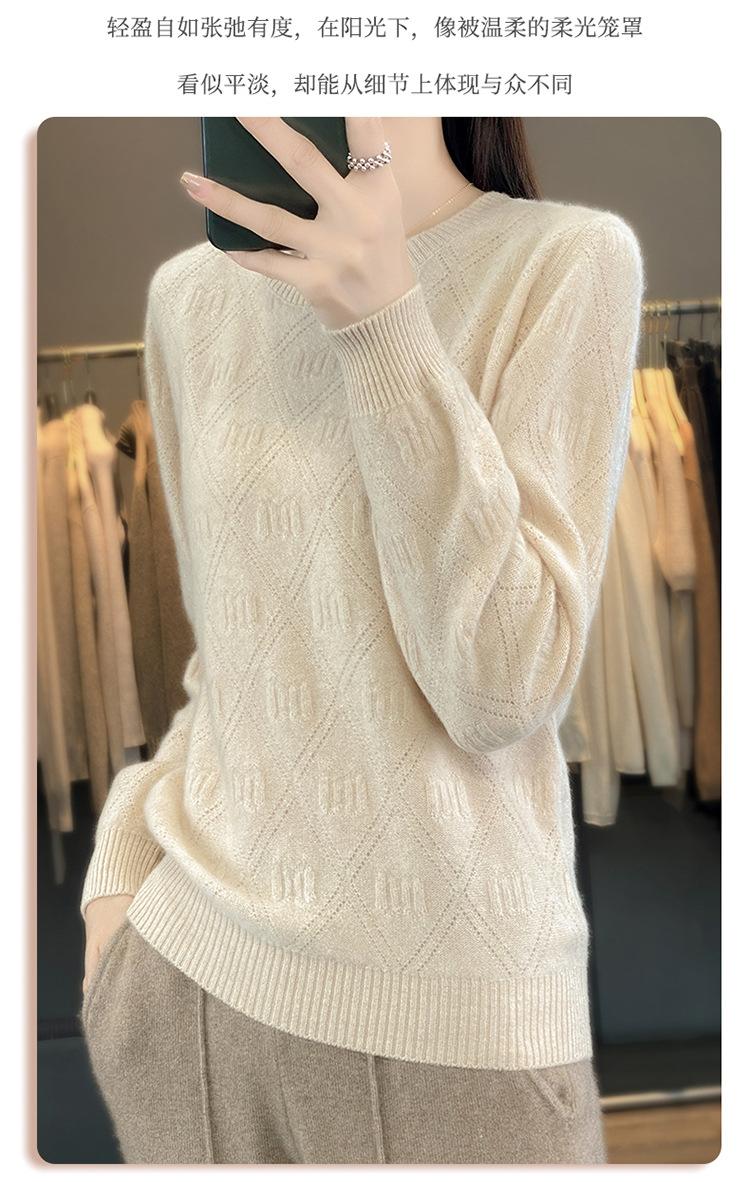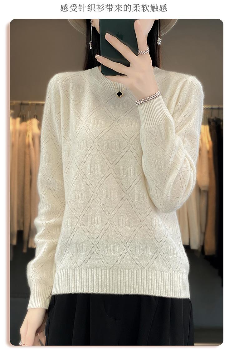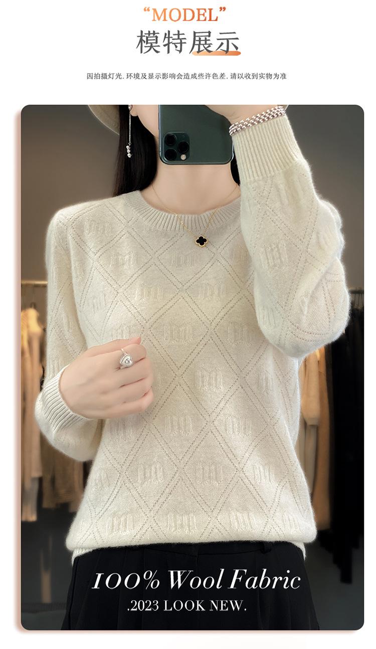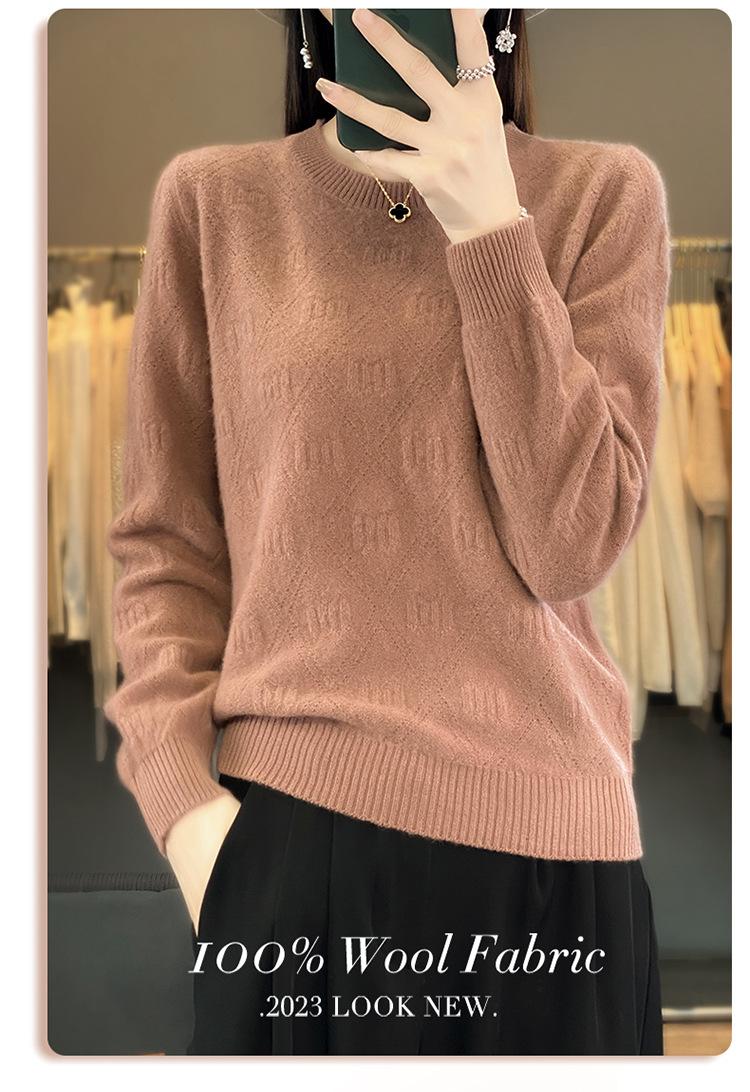 24 Otoño e Invierno Nuevo Color Sólido Cuello Redondo Pulóver Diamante Flor Trenzada 100 Suéter Suéter Holgado Para Mujer Versátil Aguja