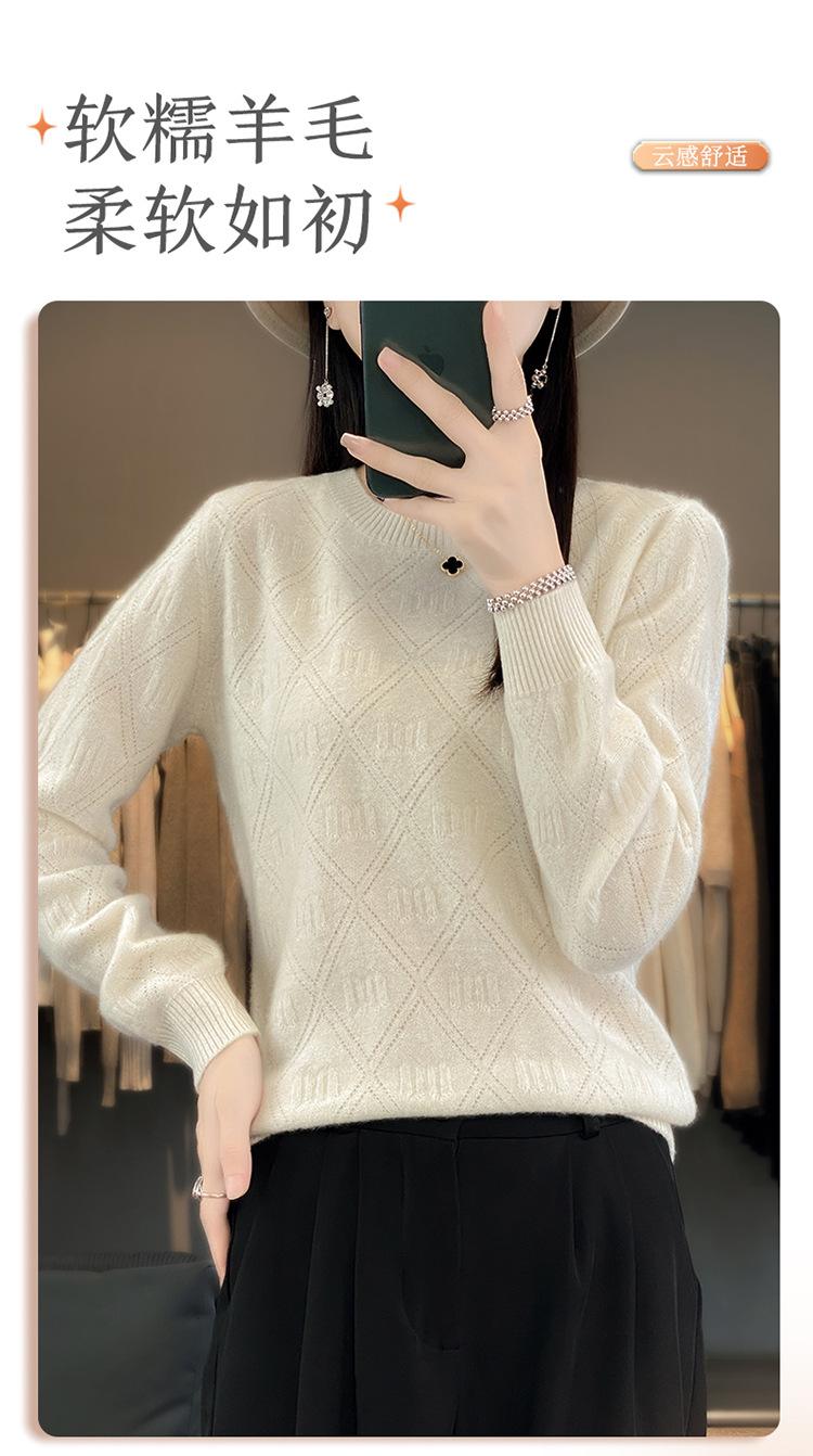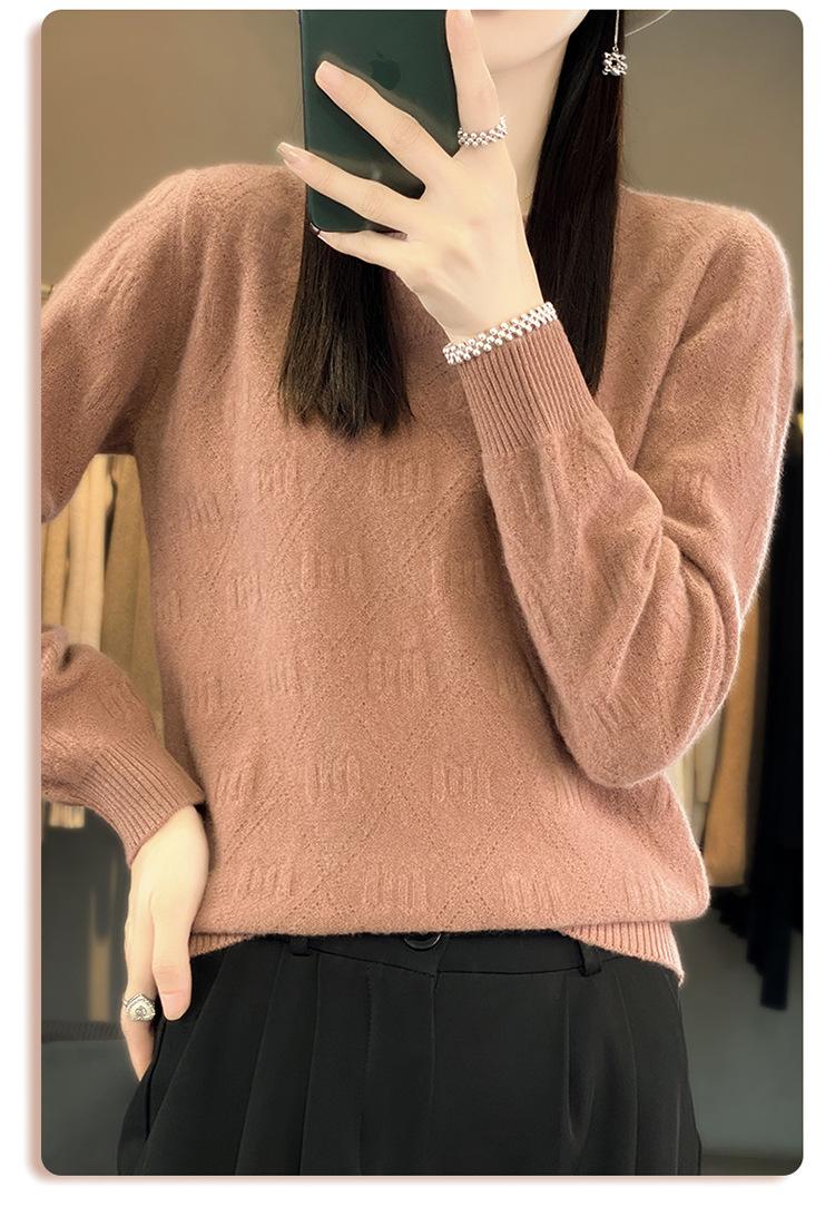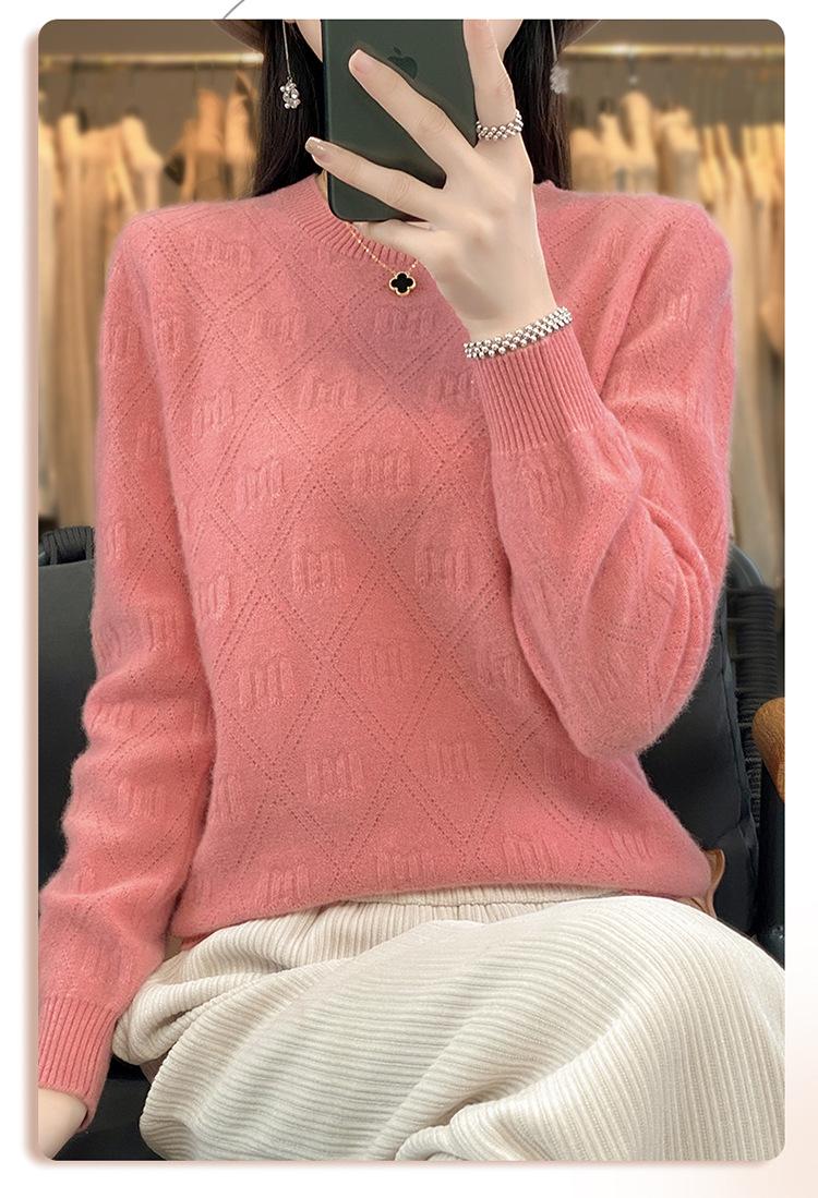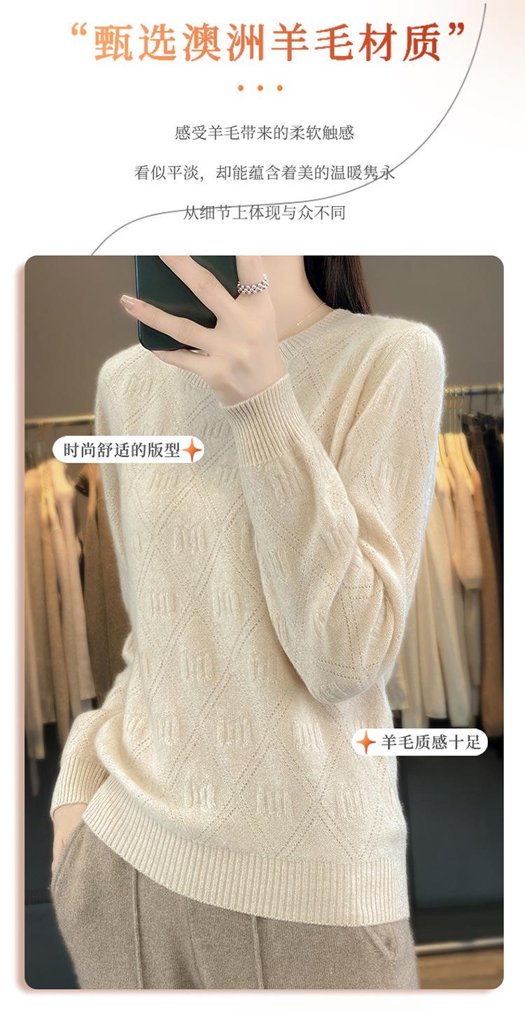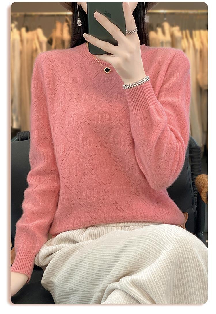 24 Otoño e Invierno Nuevo Color Sólido Cuello Redondo Pulóver Diamante Flor Trenzada 100 Suéter Suéter Holgado Para Mujer Versátil Aguja