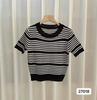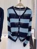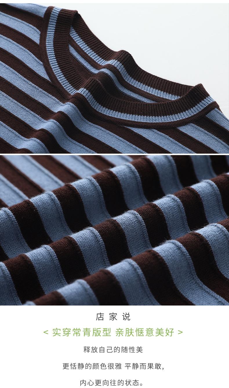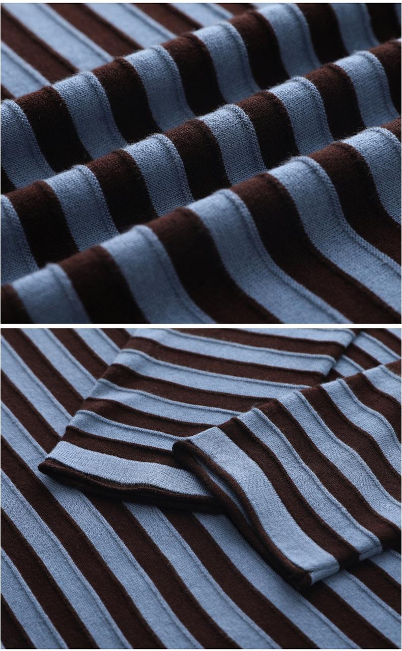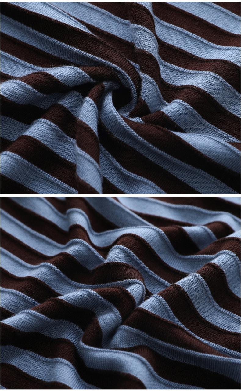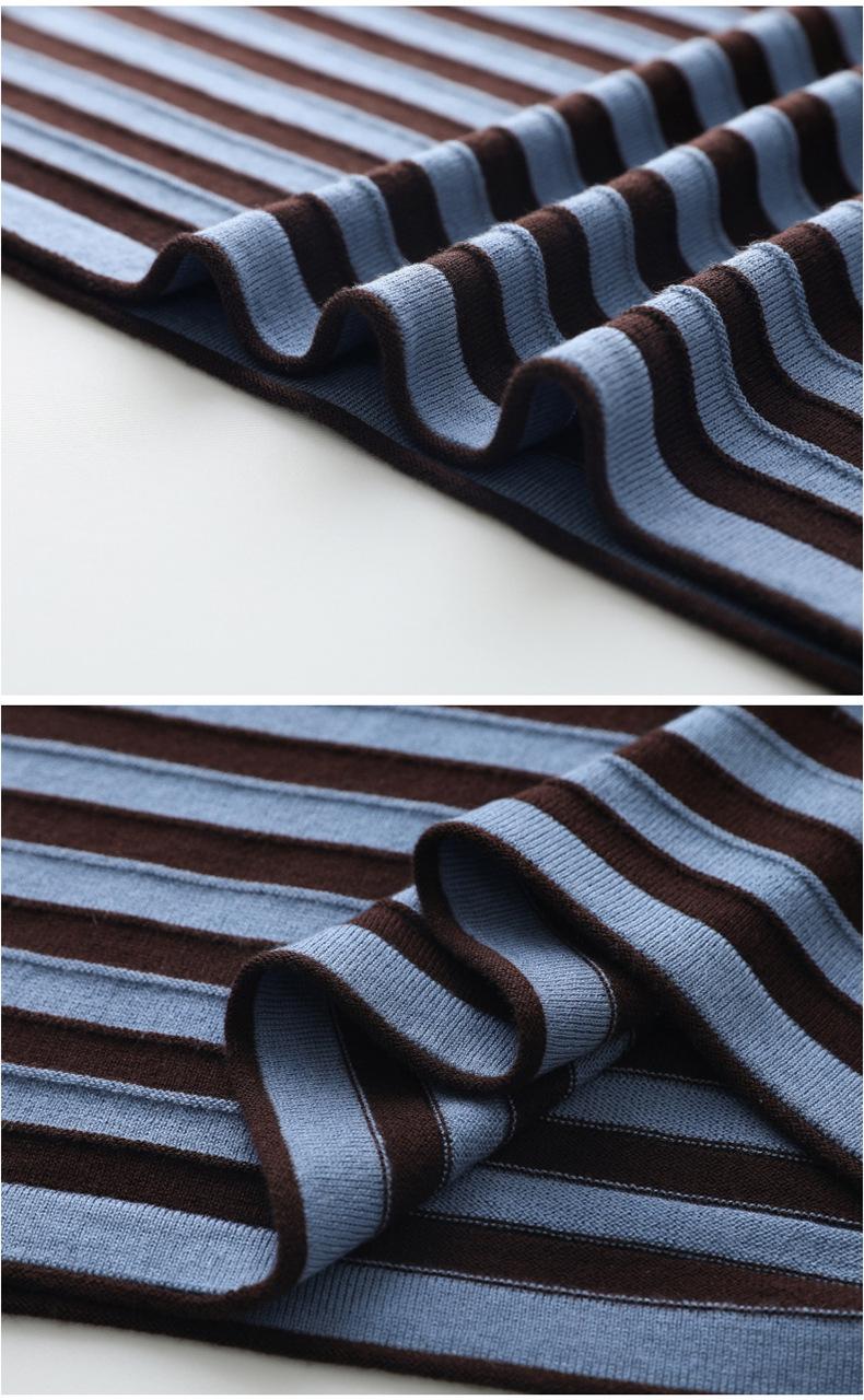 Suéter de Punto Redondo Adelgazante Antiedad para Mujer con Rayas Contrastantes, Camiseta Básica de Manga Larga Suelta, Nuevo Top para Primavera y Otoño 2025