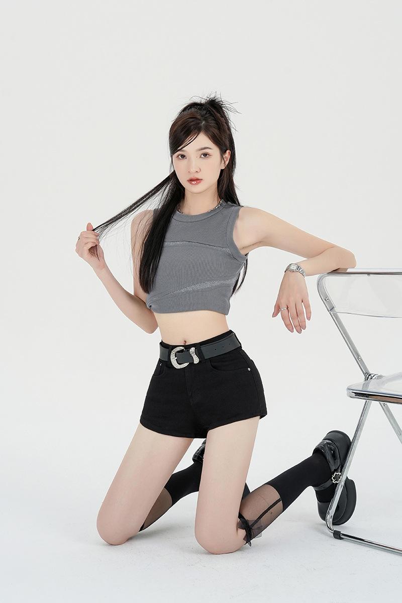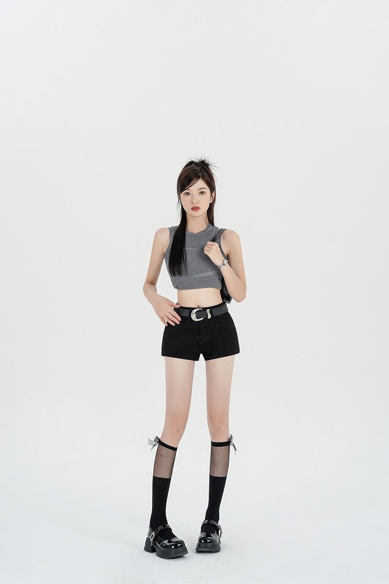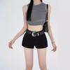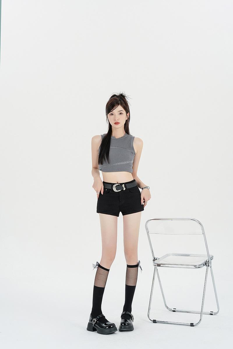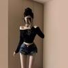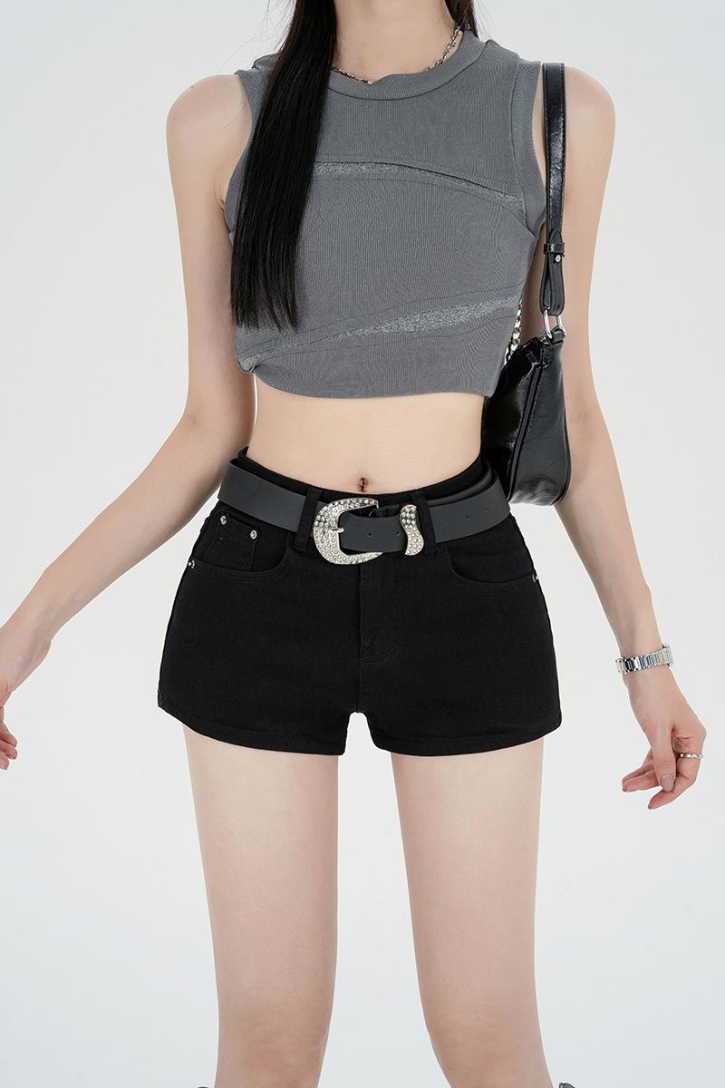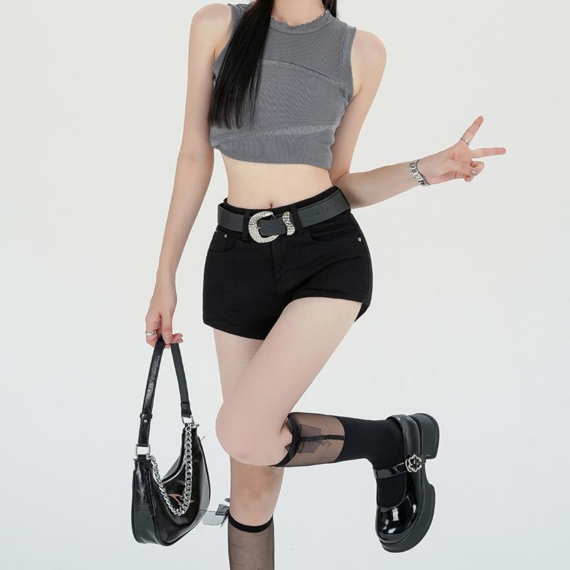 Shorts de Mezclilla Negros Elásticos de Cintura Baja para Mujer Verano 2024 Nuevo Estilo Americano Spice Girl Ajustados Adelgazantes Cadera Hot Pants