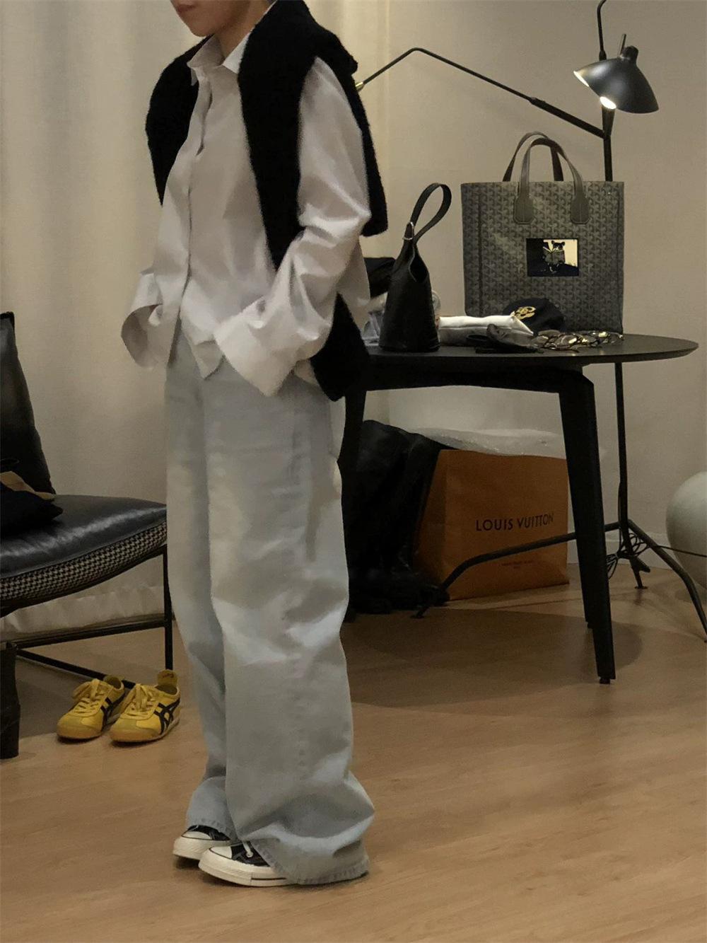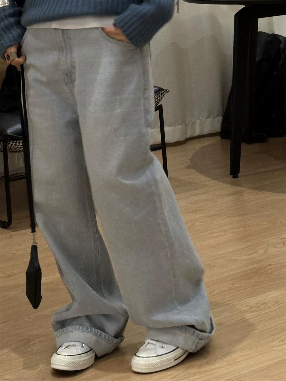 Pantalón tipo recto suelto, adelgazante y de piernas rectas.