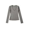 Comercio Exterior 2025 Primavera y Verano Nuevo Estilo Europeo y Americano Moda Femenina Casual Suelto Todo Partido Manga Larga Cuello en V Jersey de Punto