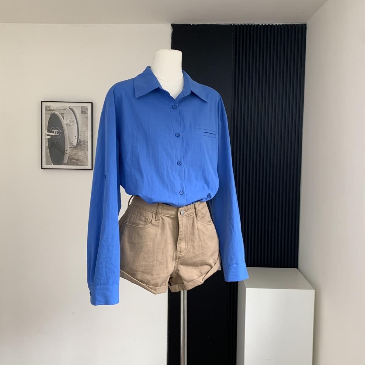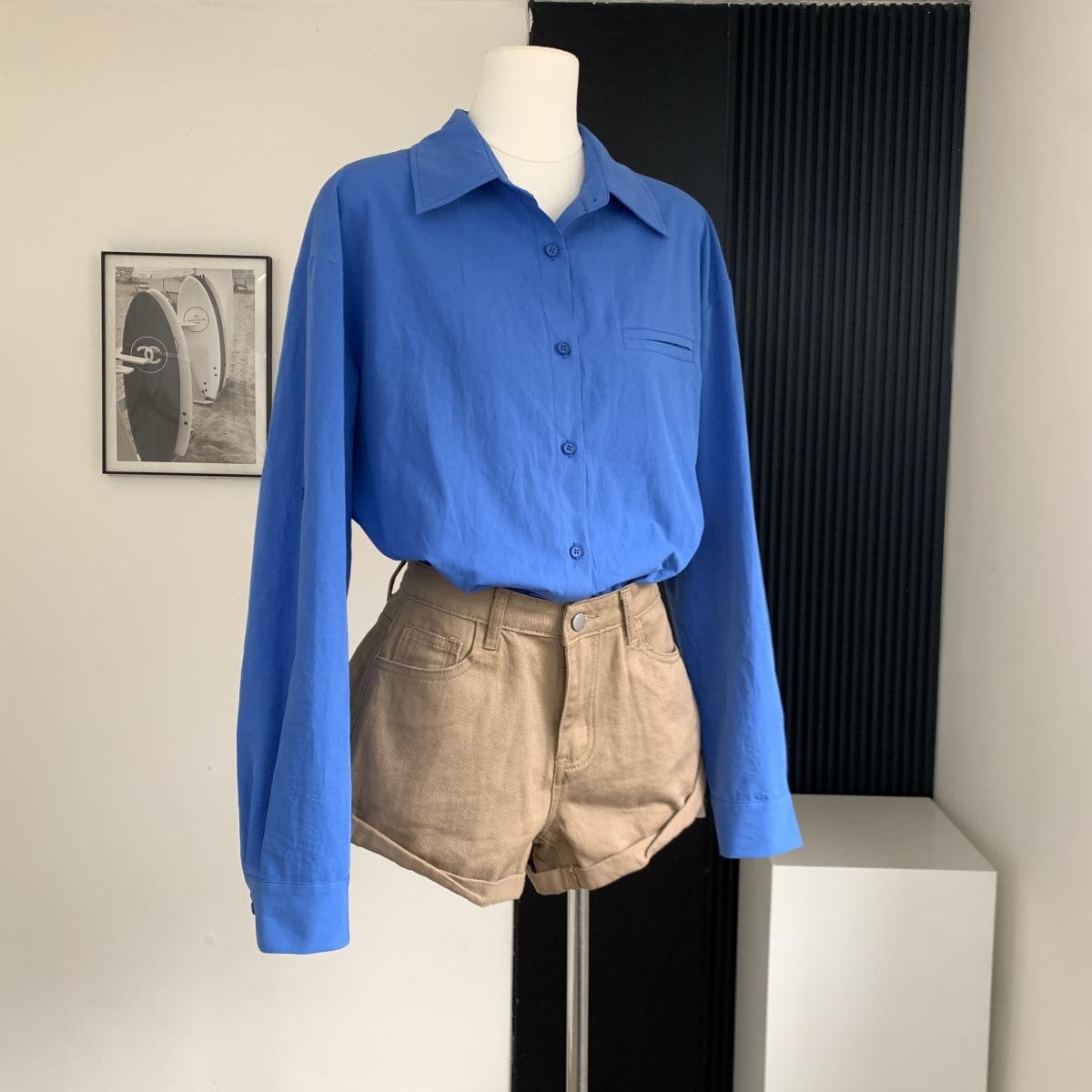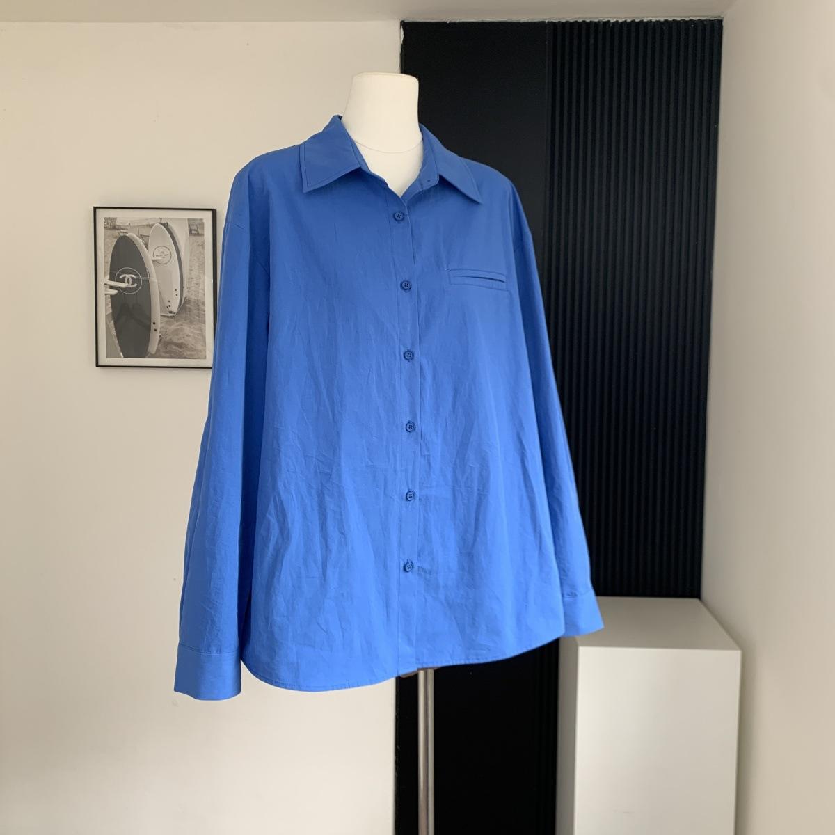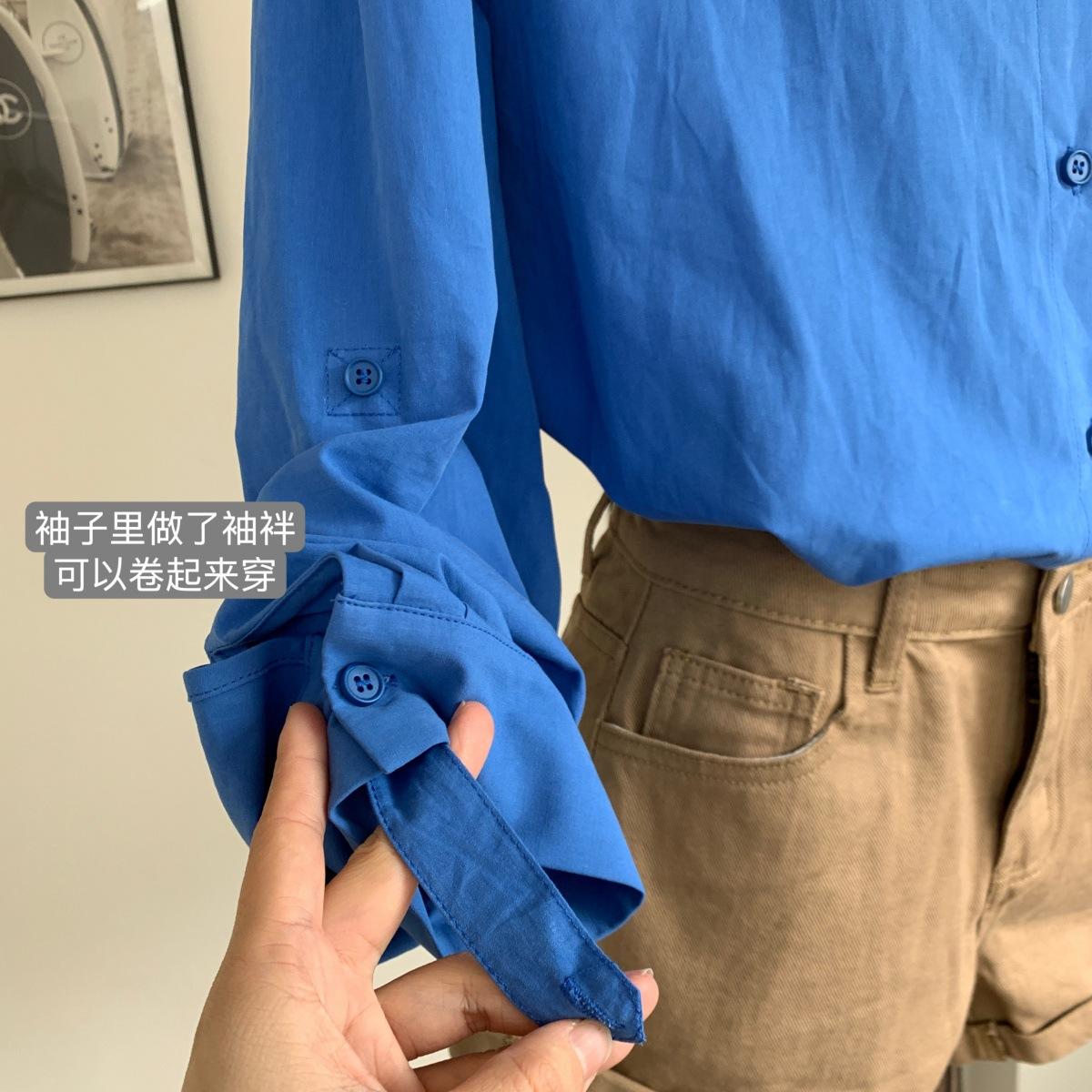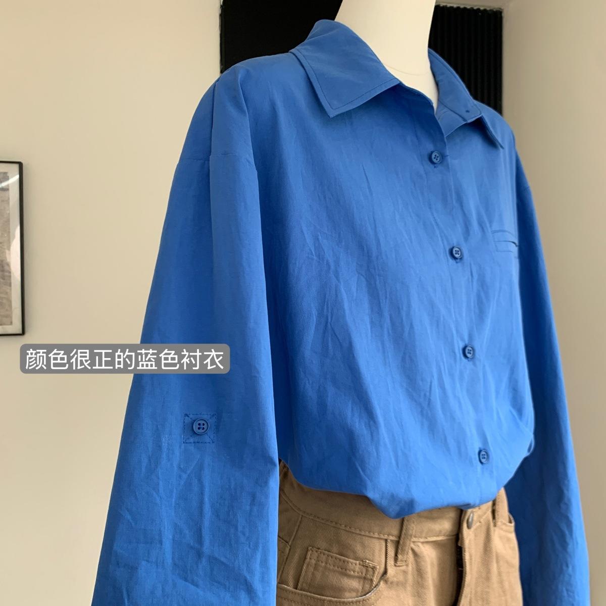 Camisa de Manga Larga Azul Prusiano Azul Klein para Mujer Camisa Coreana de Manga Larga para Primavera y Otoño Diseño Top