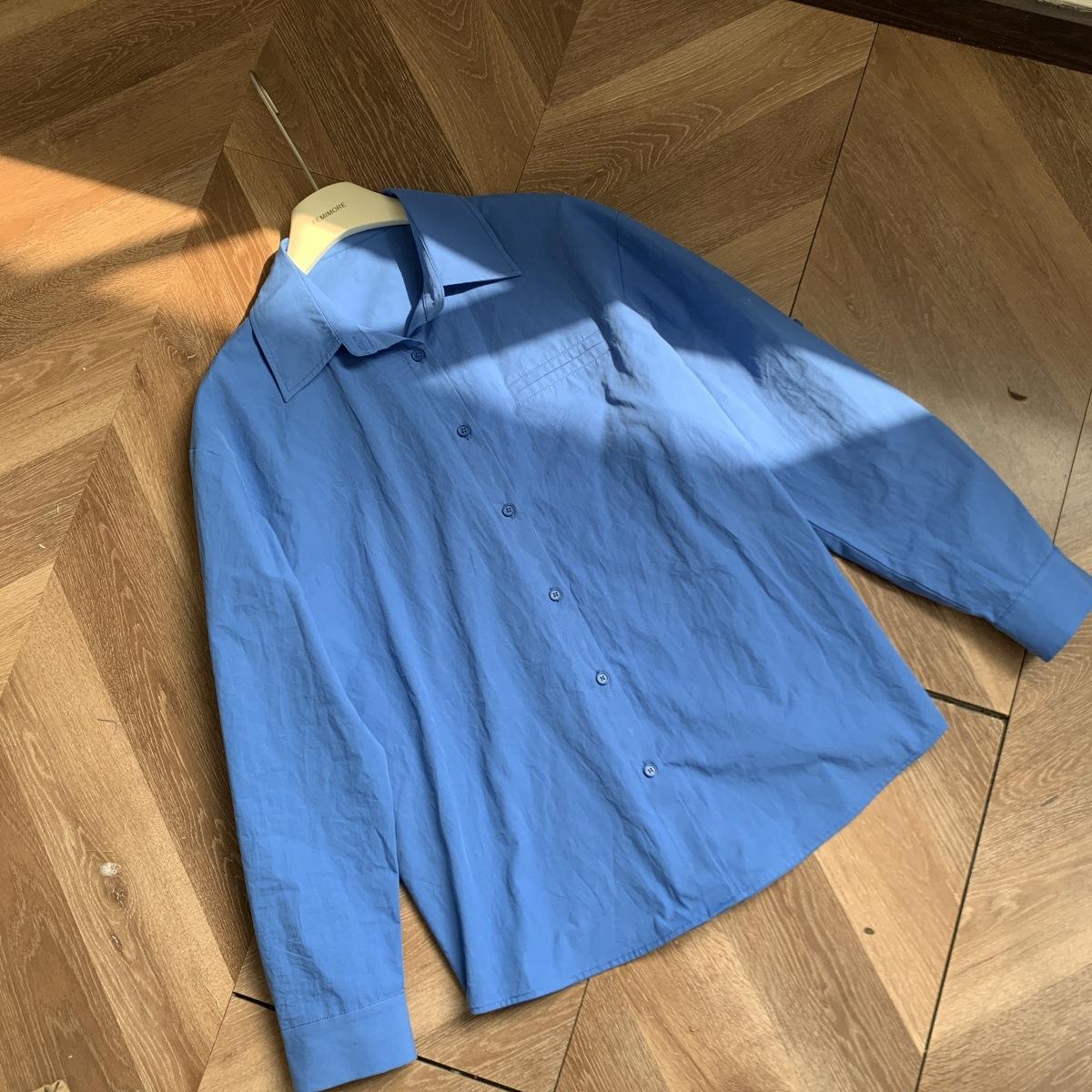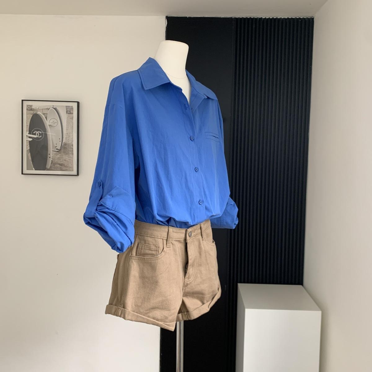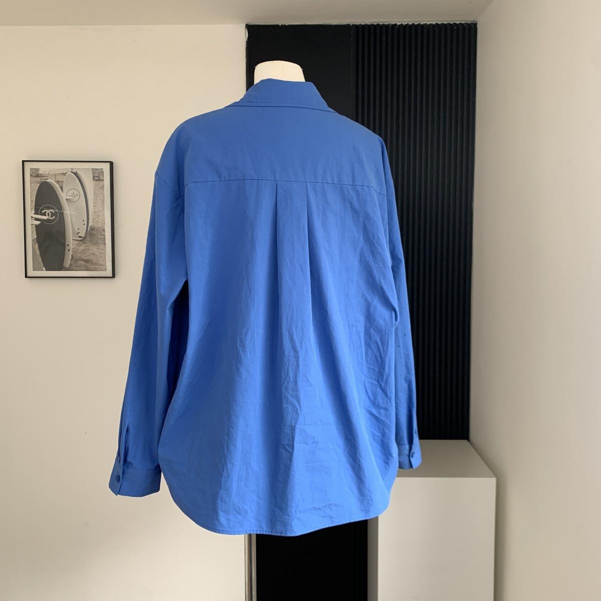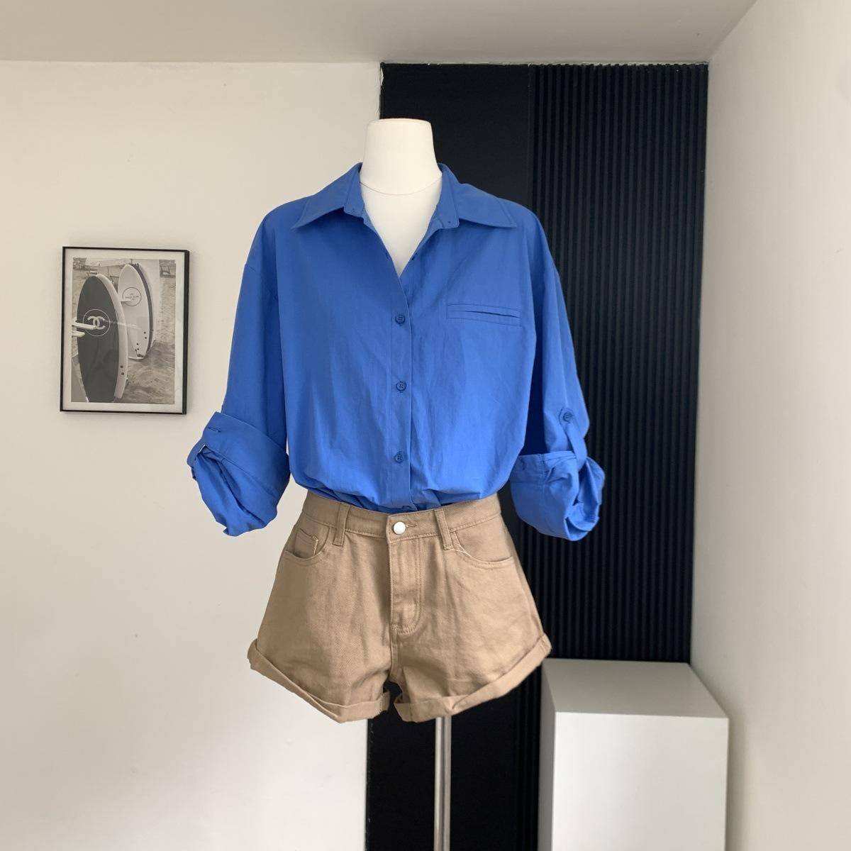 Camisa de Manga Larga Azul Prusiano Azul Klein para Mujer Camisa Coreana de Manga Larga para Primavera y Otoño Diseño Top