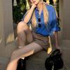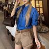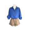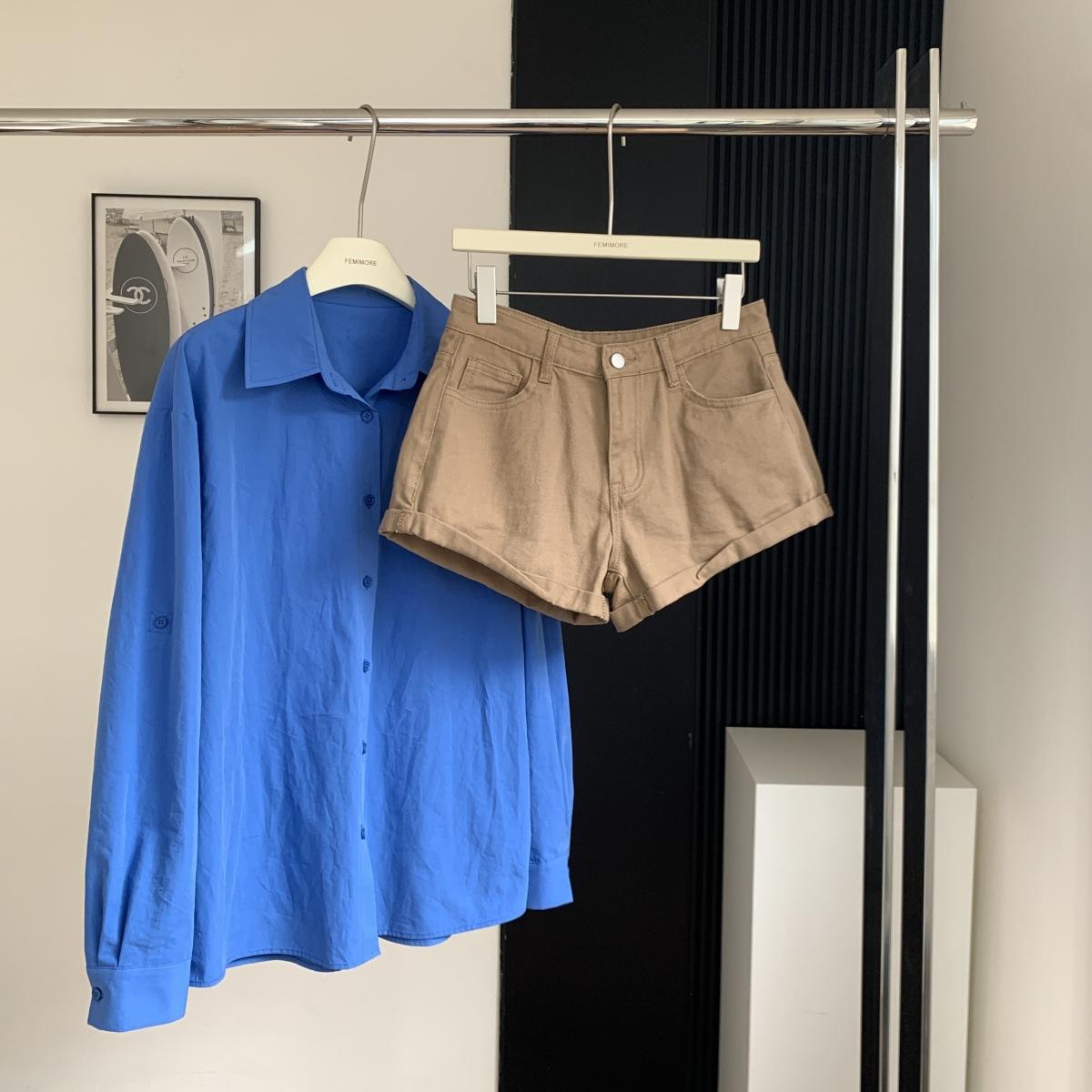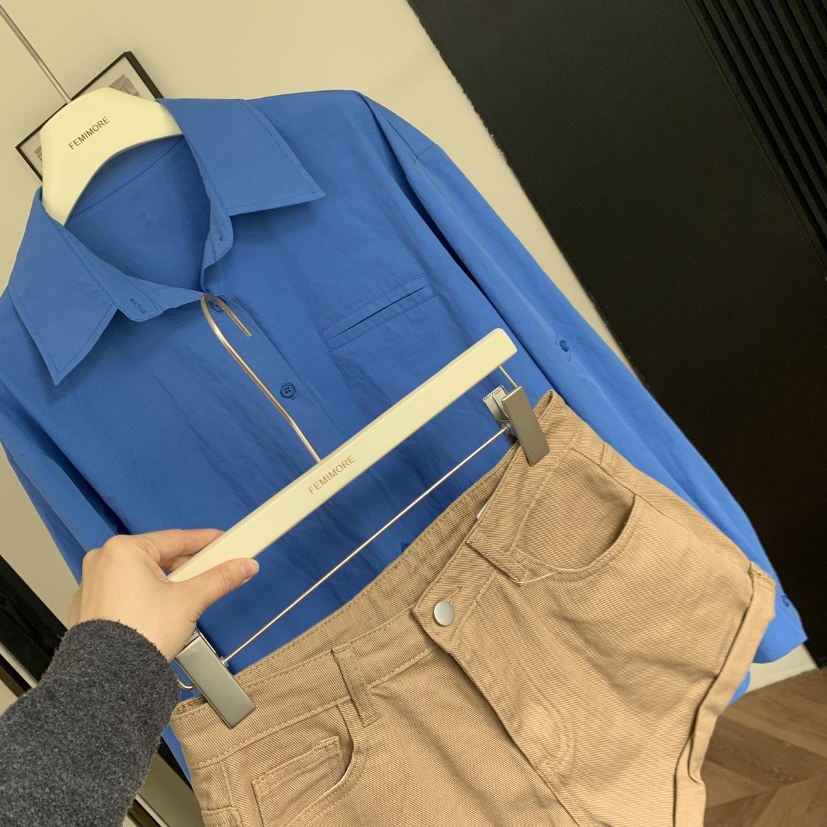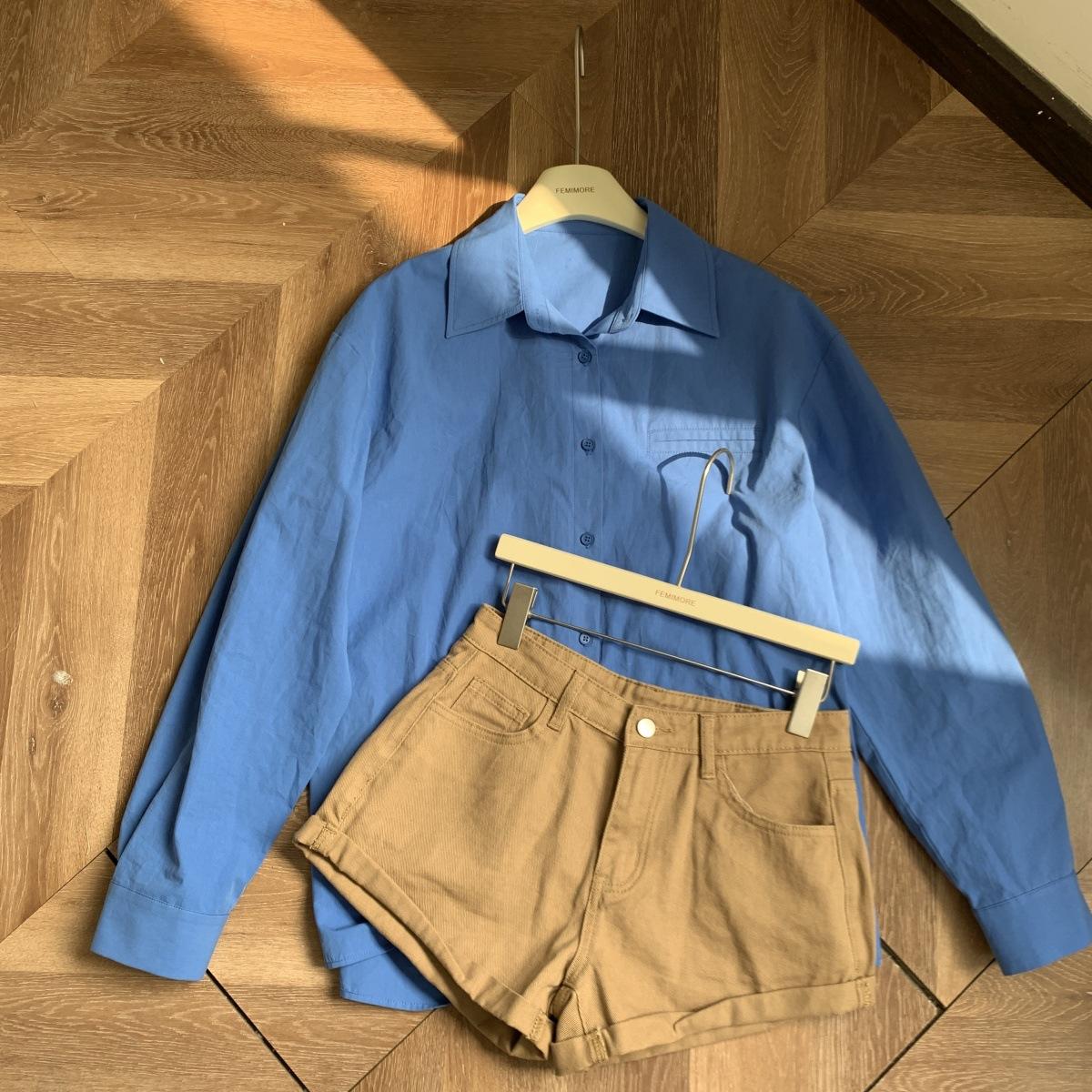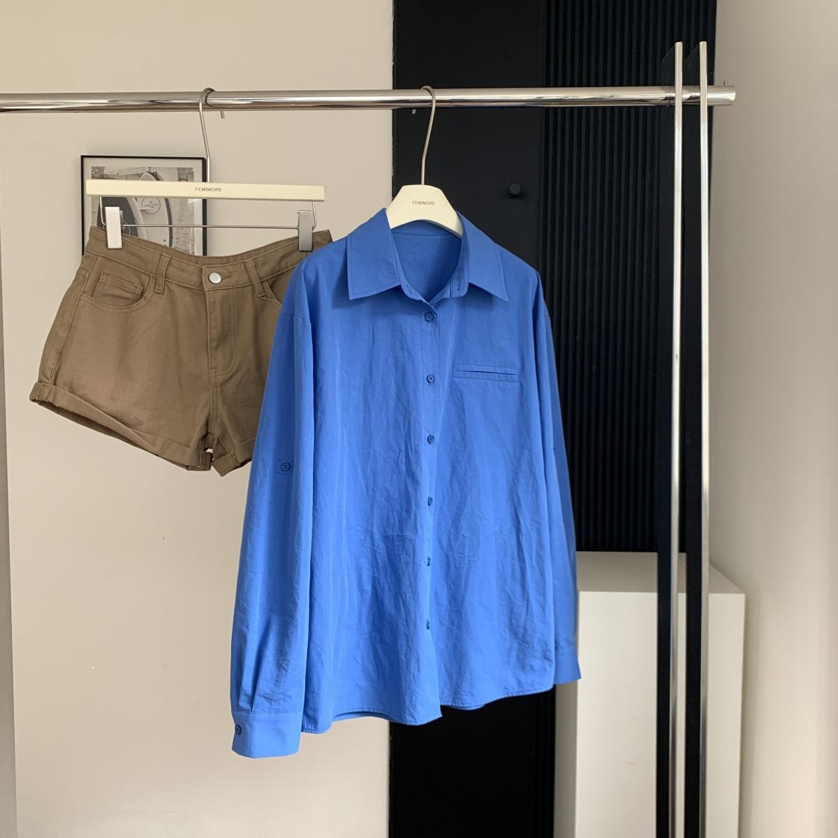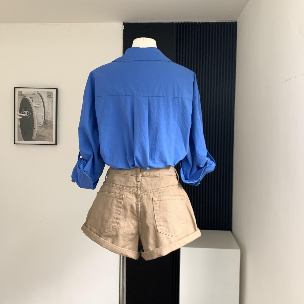 Camisa de Manga Larga Azul Prusiano Azul Klein para Mujer Camisa Coreana de Manga Larga para Primavera y Otoño Diseño Top
