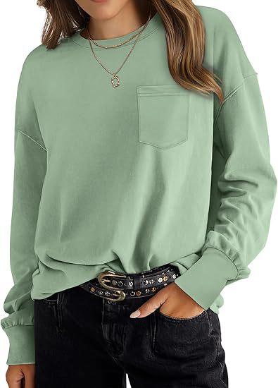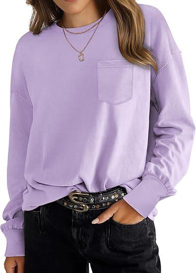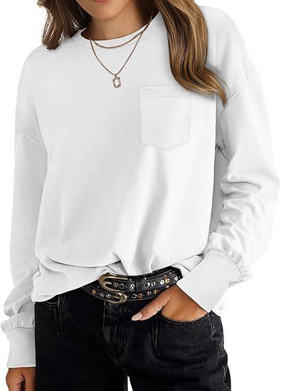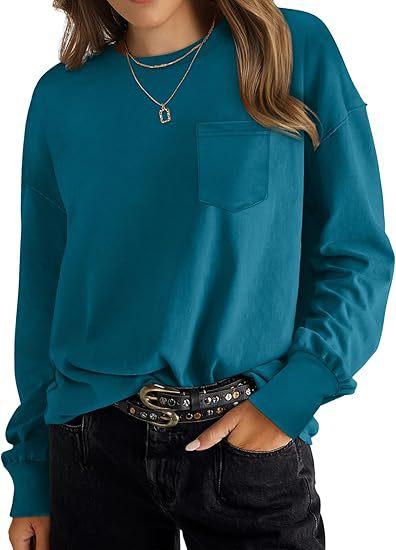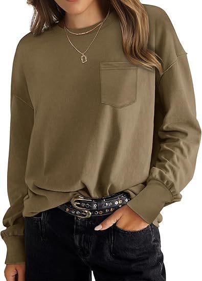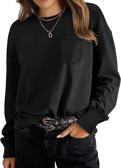 Amazon 2025 Comercio Exterior Europeo y Americano Transfronterizo Ropa de Mujer Más Vendida Camiseta de Mujer de Manga Larga y Cuello Redondo Camisa Casual Holgada con Bolsillo