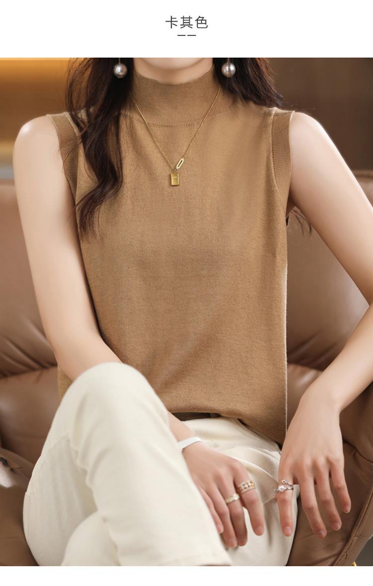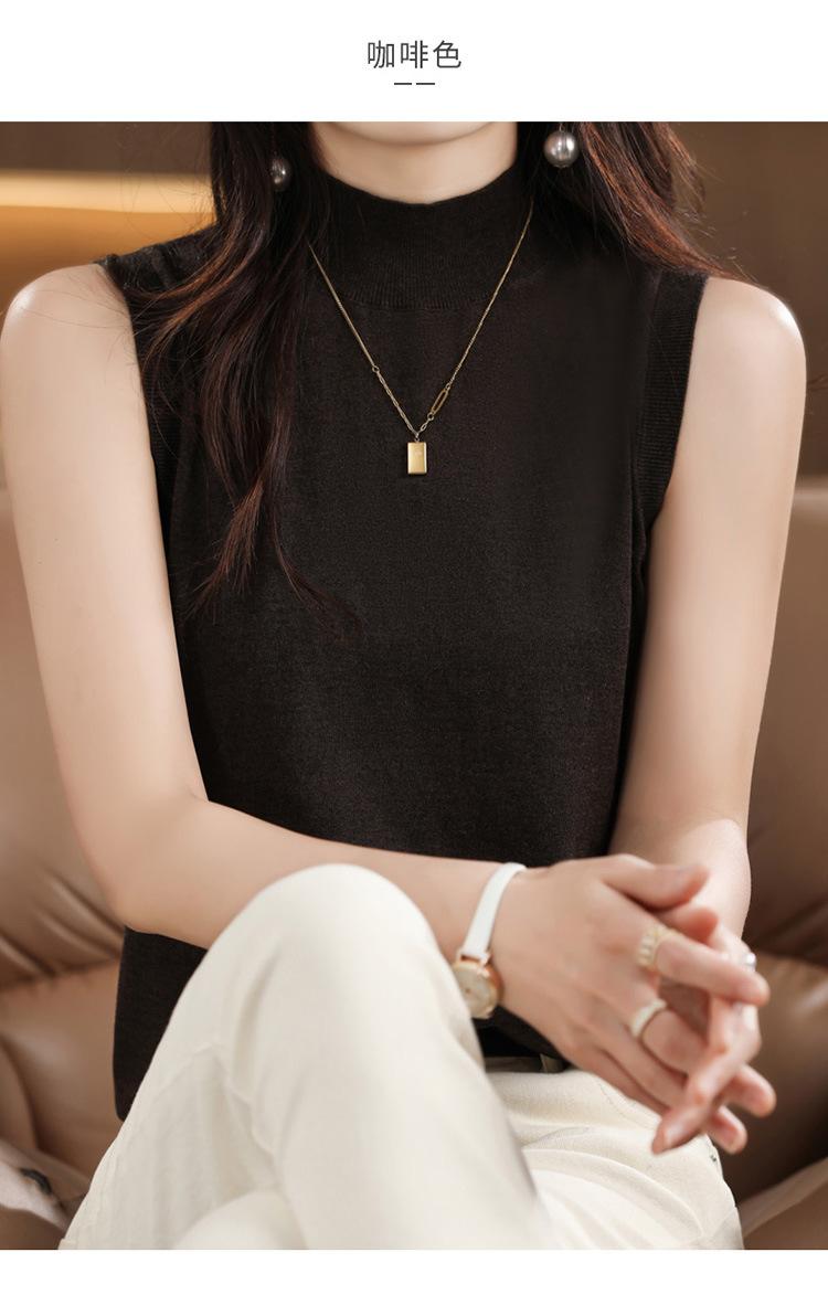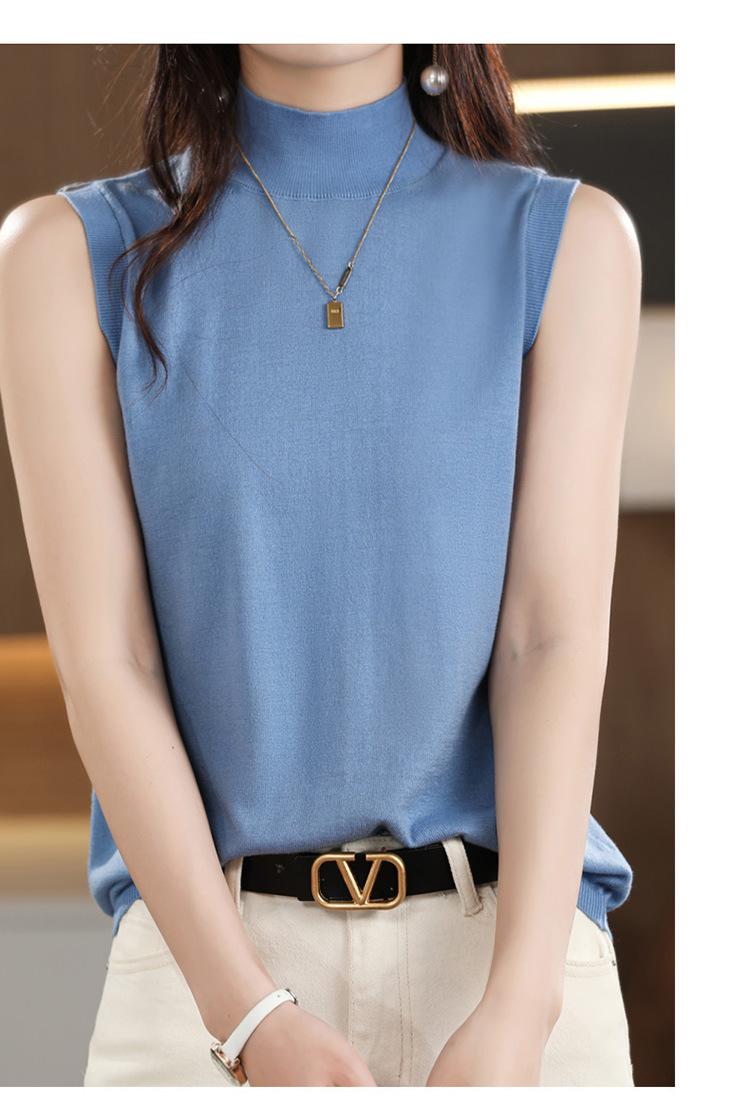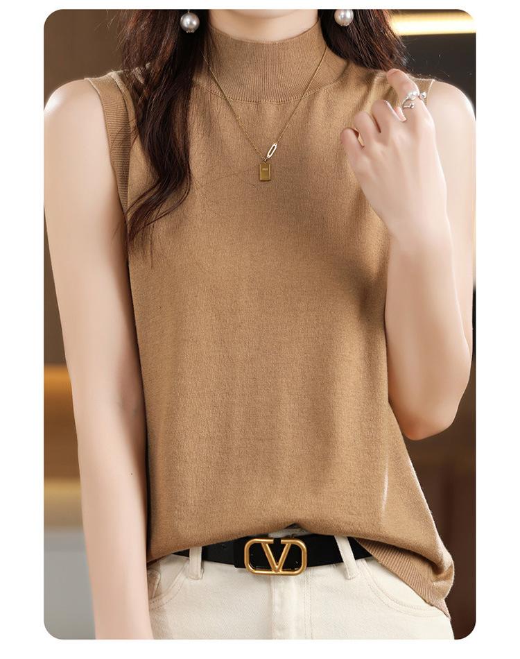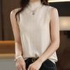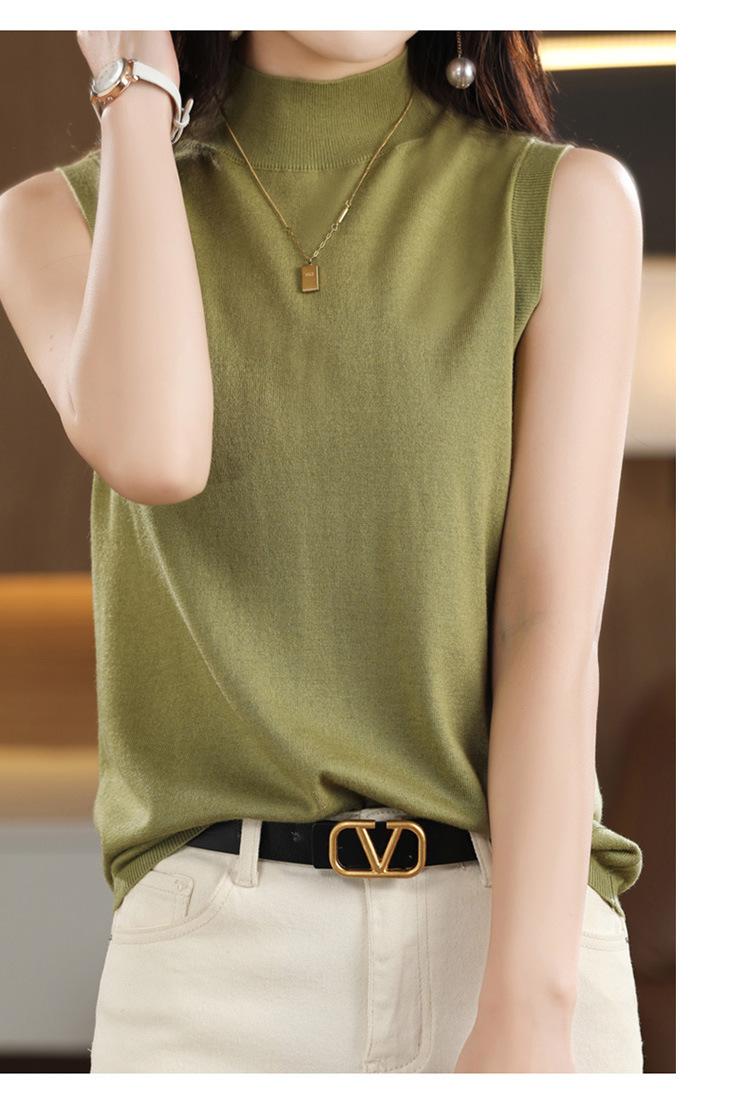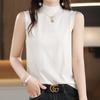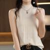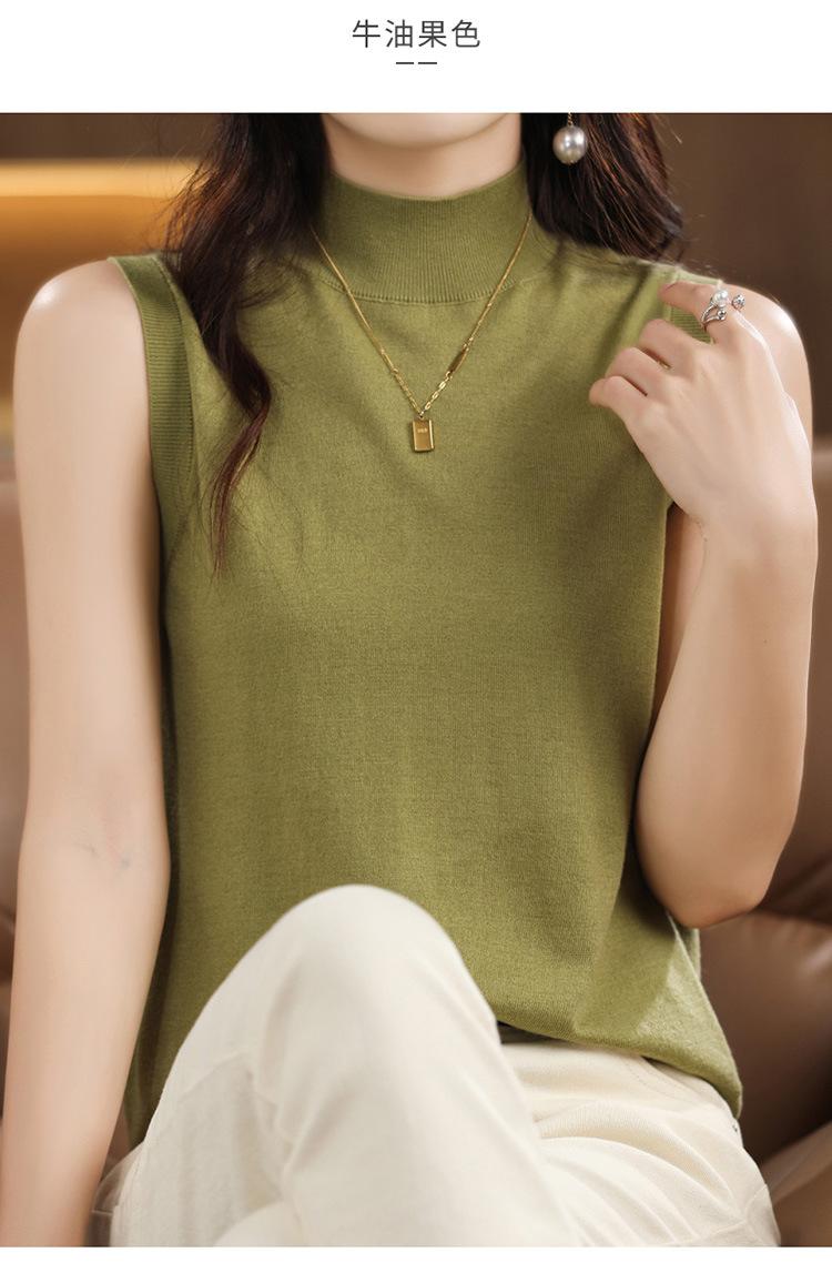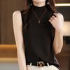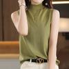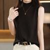 Lana Peinada 2025 Otoño e Invierno Nuevo Suéter Corto Delgado de Cuello Medio Alto de Color Puro Tejido para Mujer Chaleco sin Mangas para Fondo