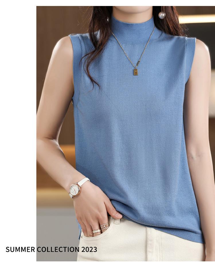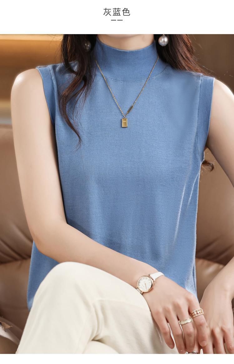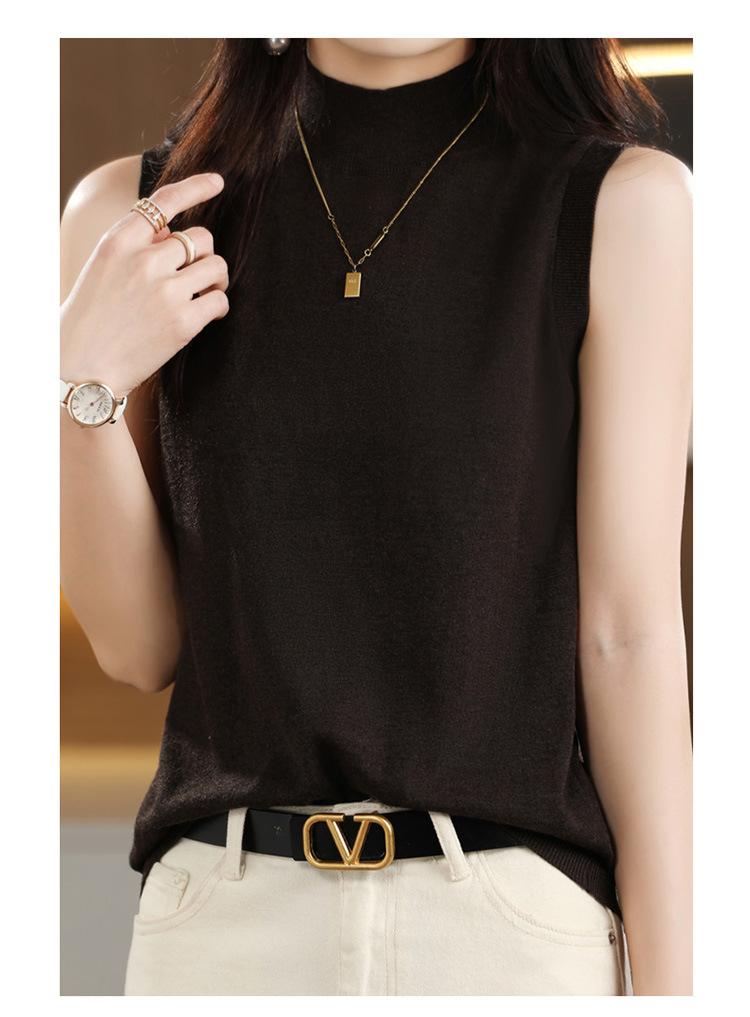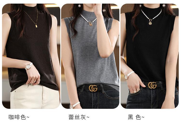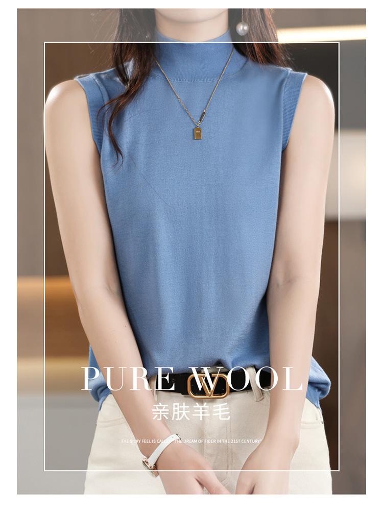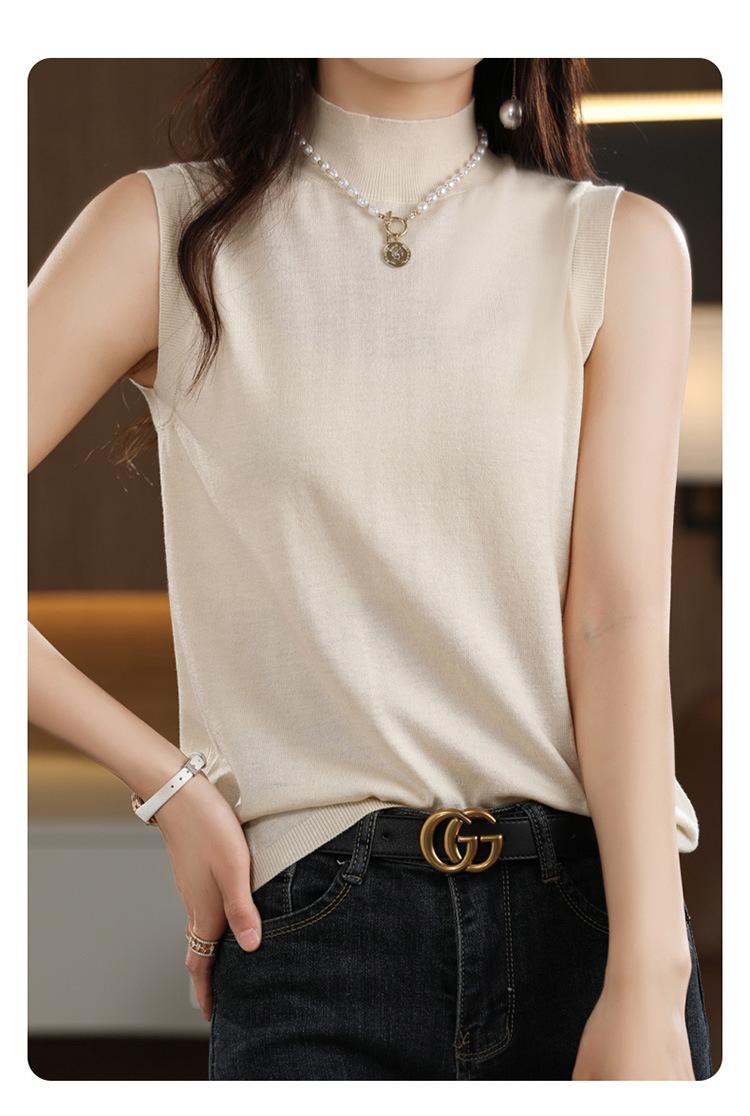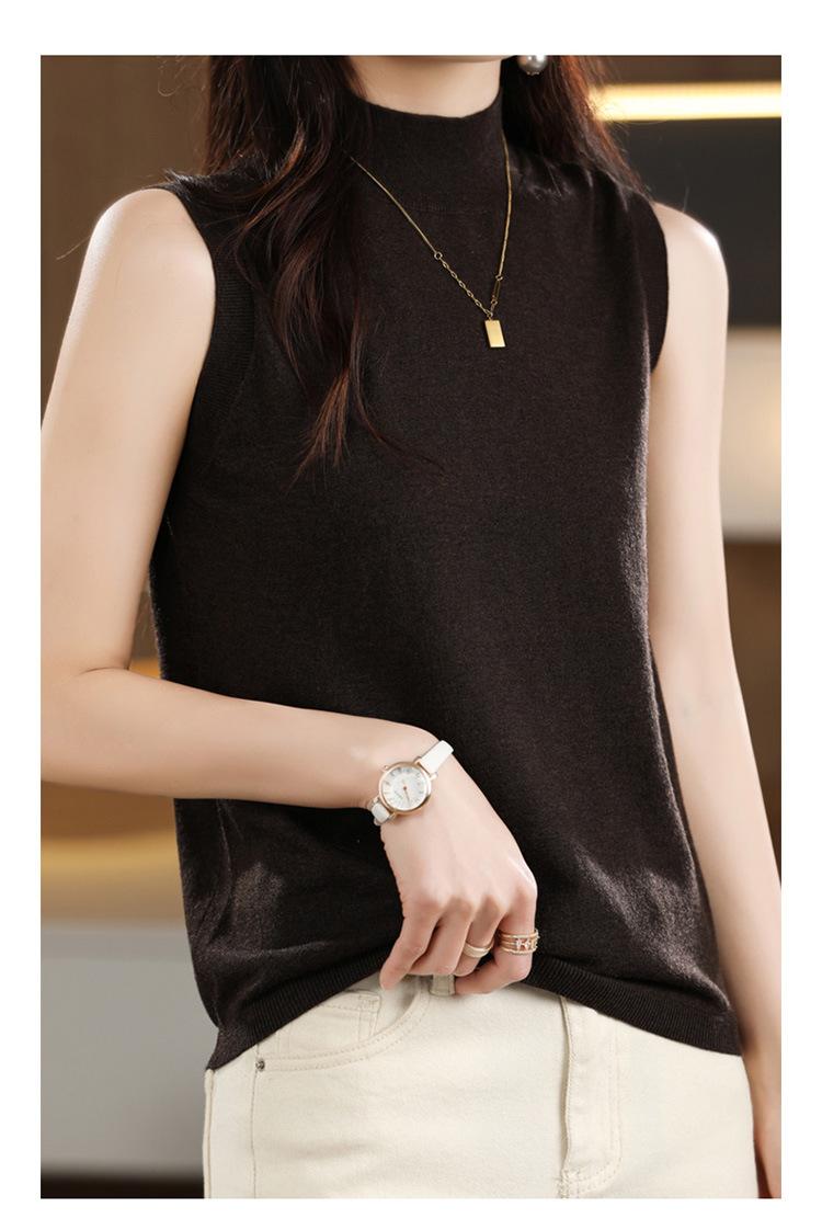 Lana Peinada 2025 Otoño e Invierno Nuevo Suéter Corto Delgado de Cuello Medio Alto de Color Puro Tejido para Mujer Chaleco sin Mangas para Fondo