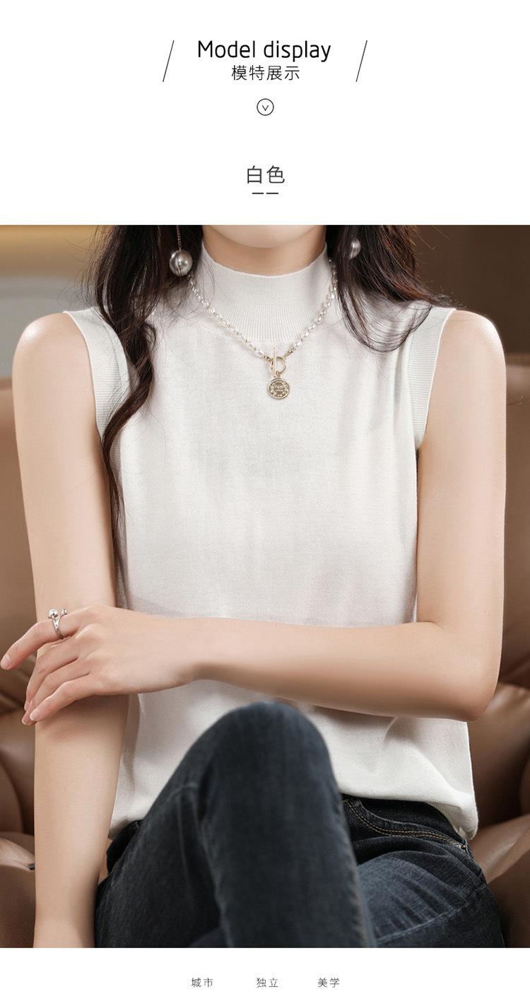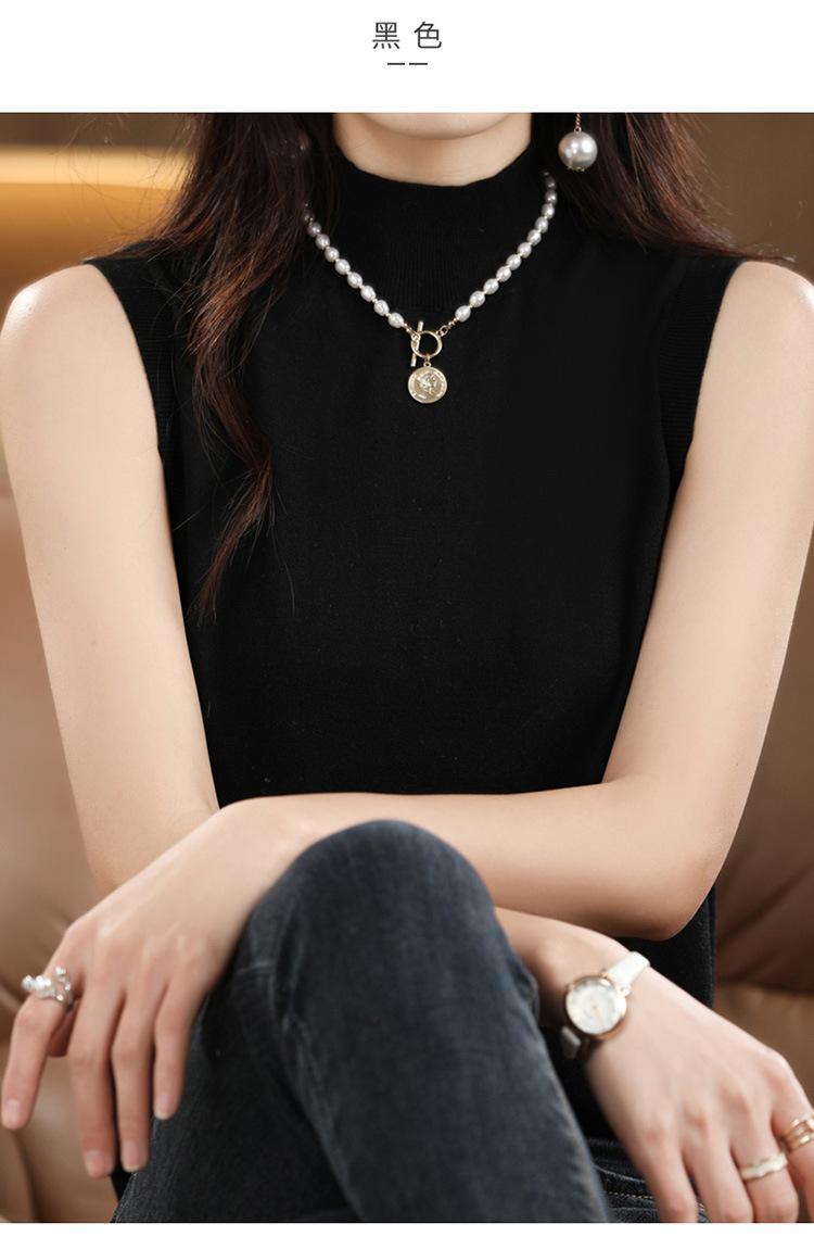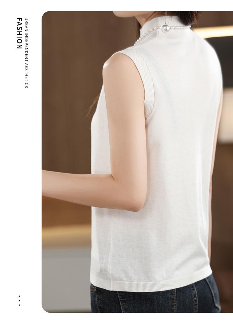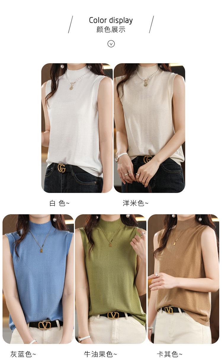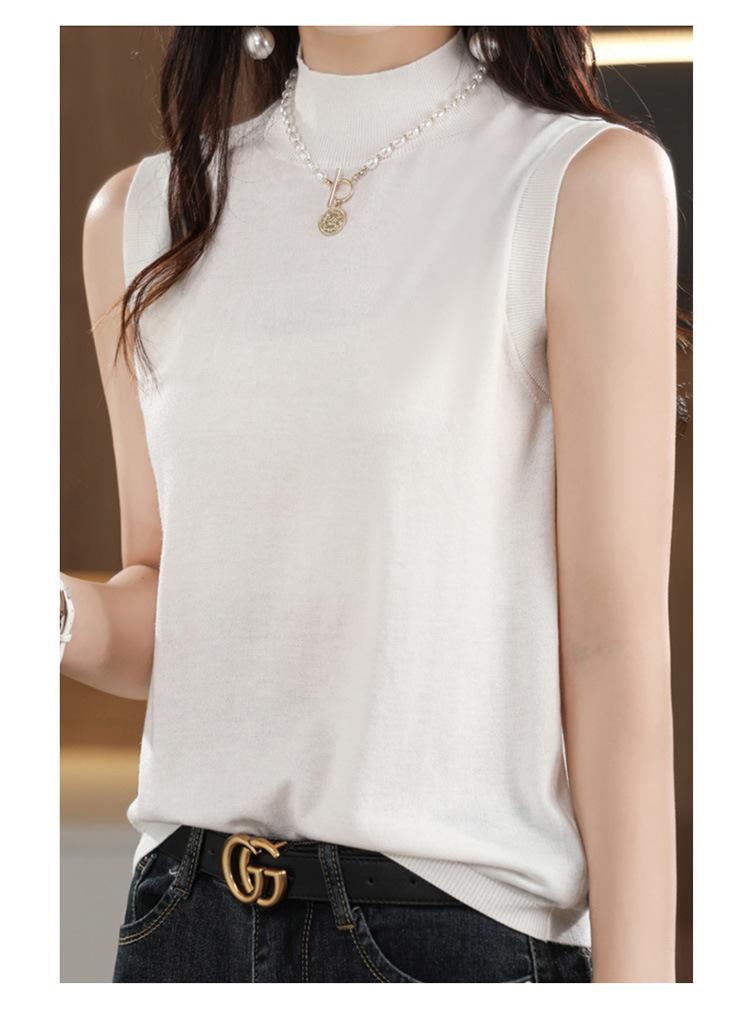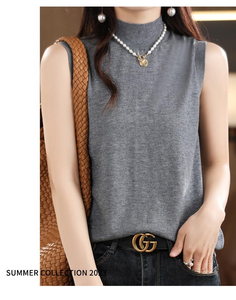 Lana Peinada 2025 Otoño e Invierno Nuevo Suéter Corto Delgado de Cuello Medio Alto de Color Puro Tejido para Mujer Chaleco sin Mangas para Fondo