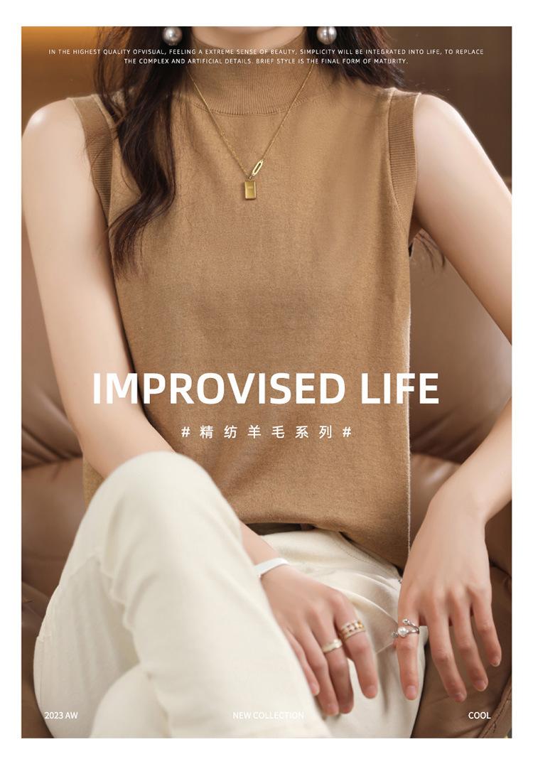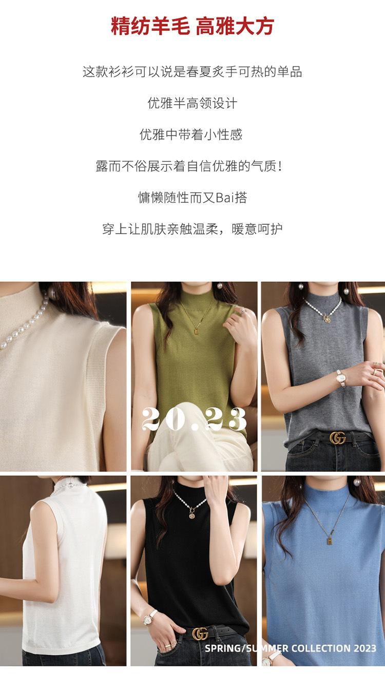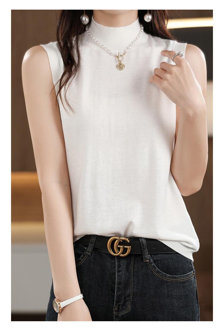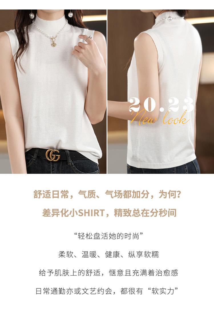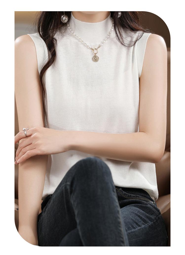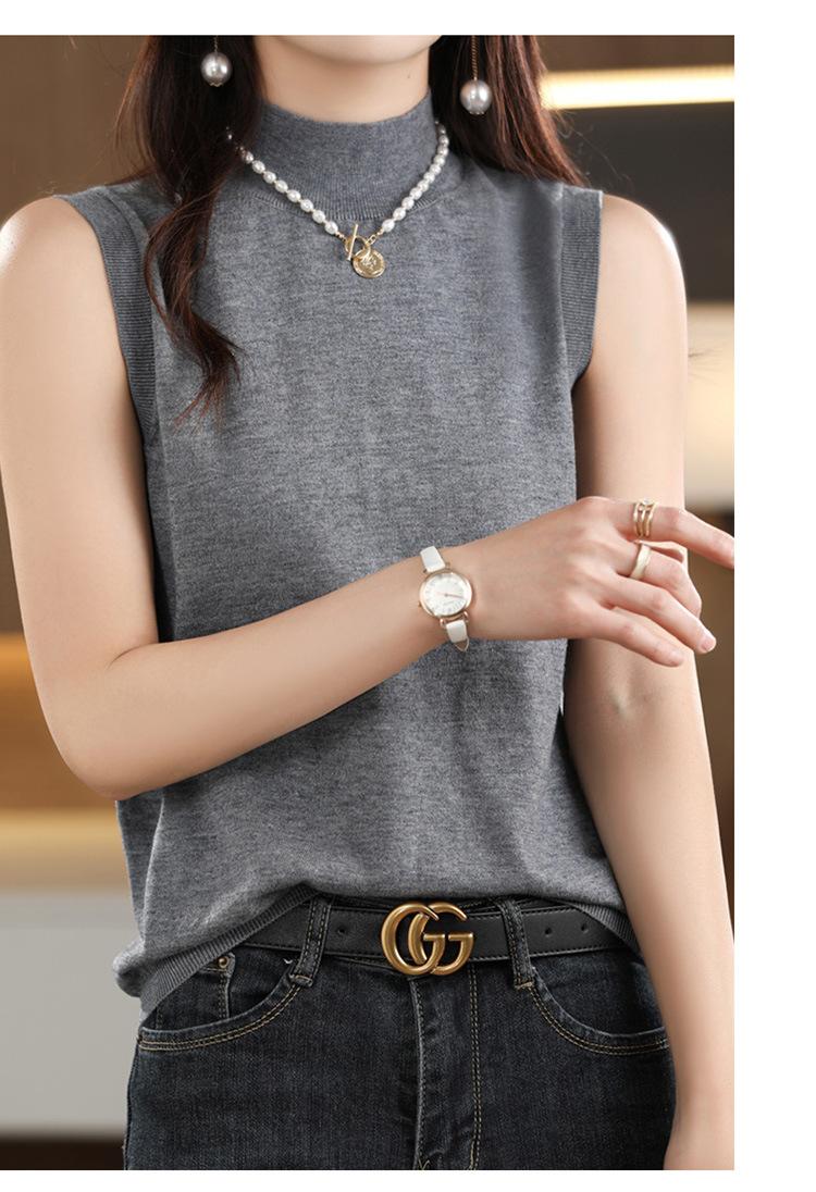 Lana Peinada 2025 Otoño e Invierno Nuevo Suéter Corto Delgado de Cuello Medio Alto de Color Puro Tejido para Mujer Chaleco sin Mangas para Fondo