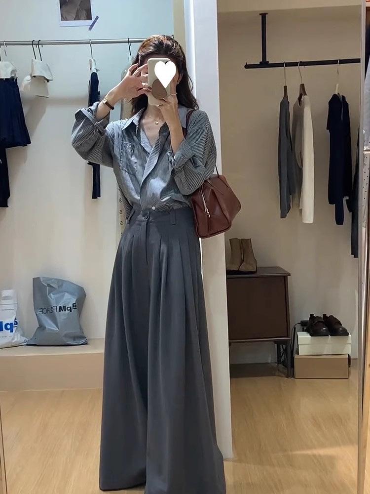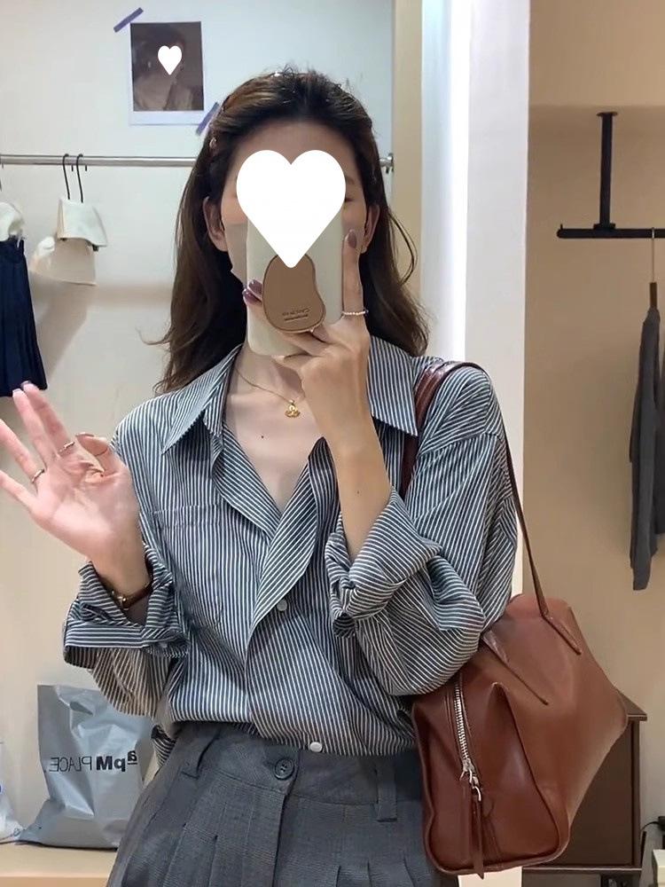Camisa de Rayas Azules Nueva Primavera 2025 para Mujer Nicho Top Francés Camisa Pequeña Moderna de Gama Alta para Mujer