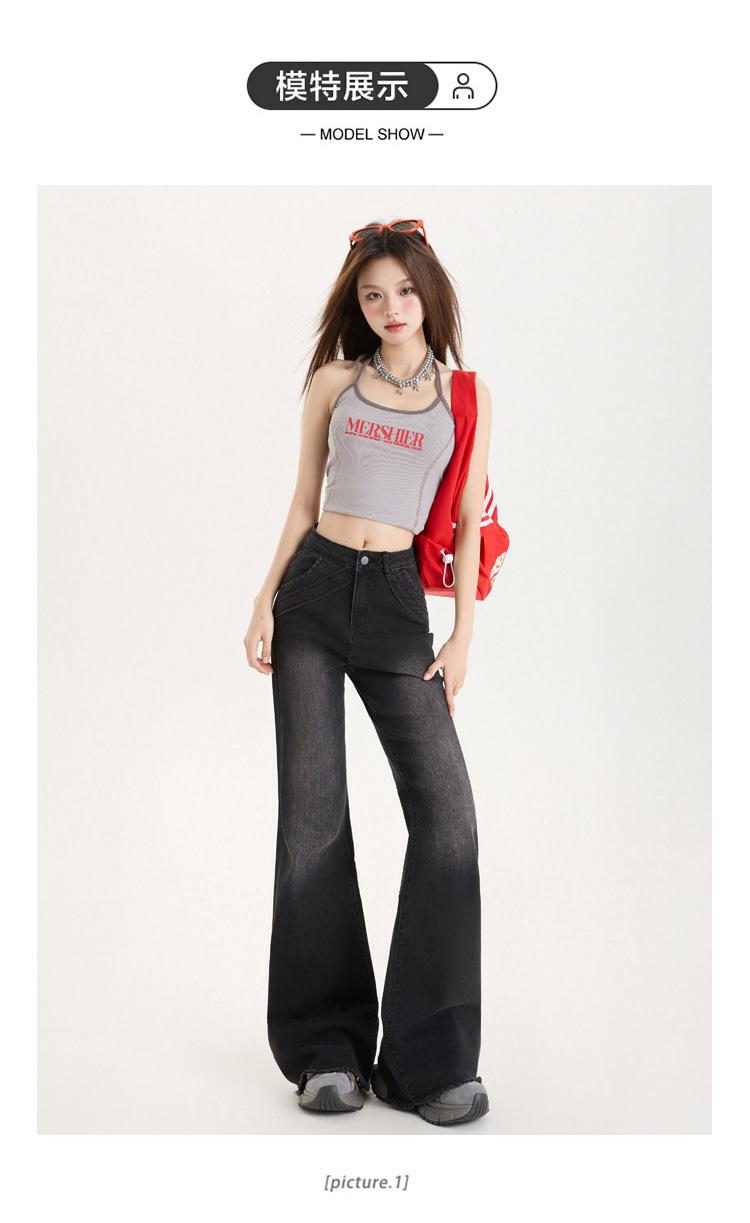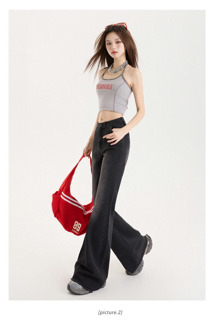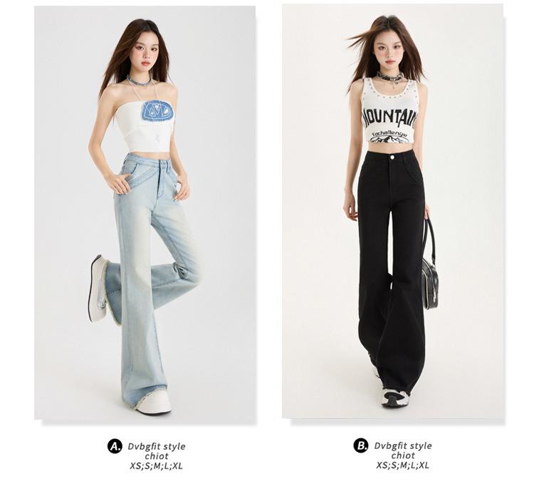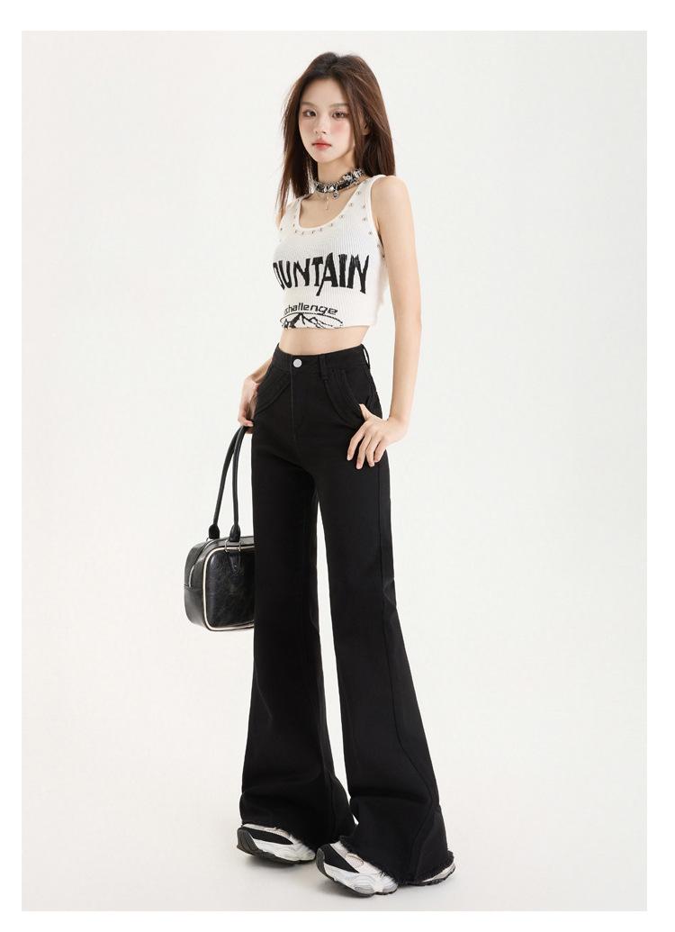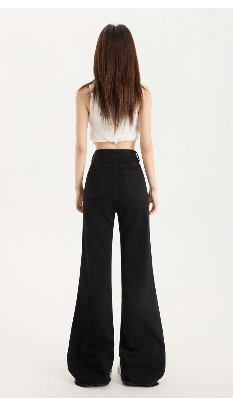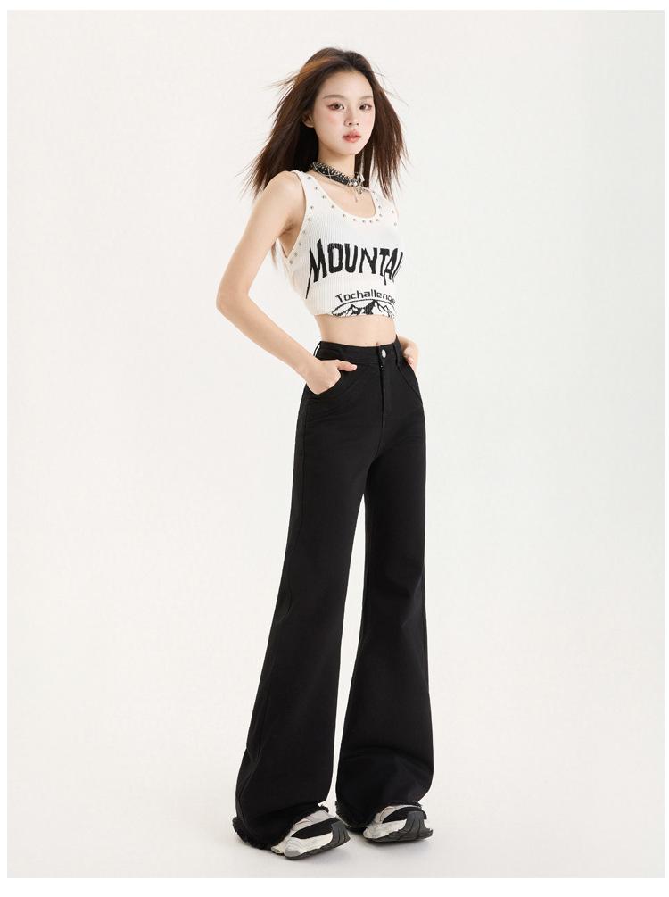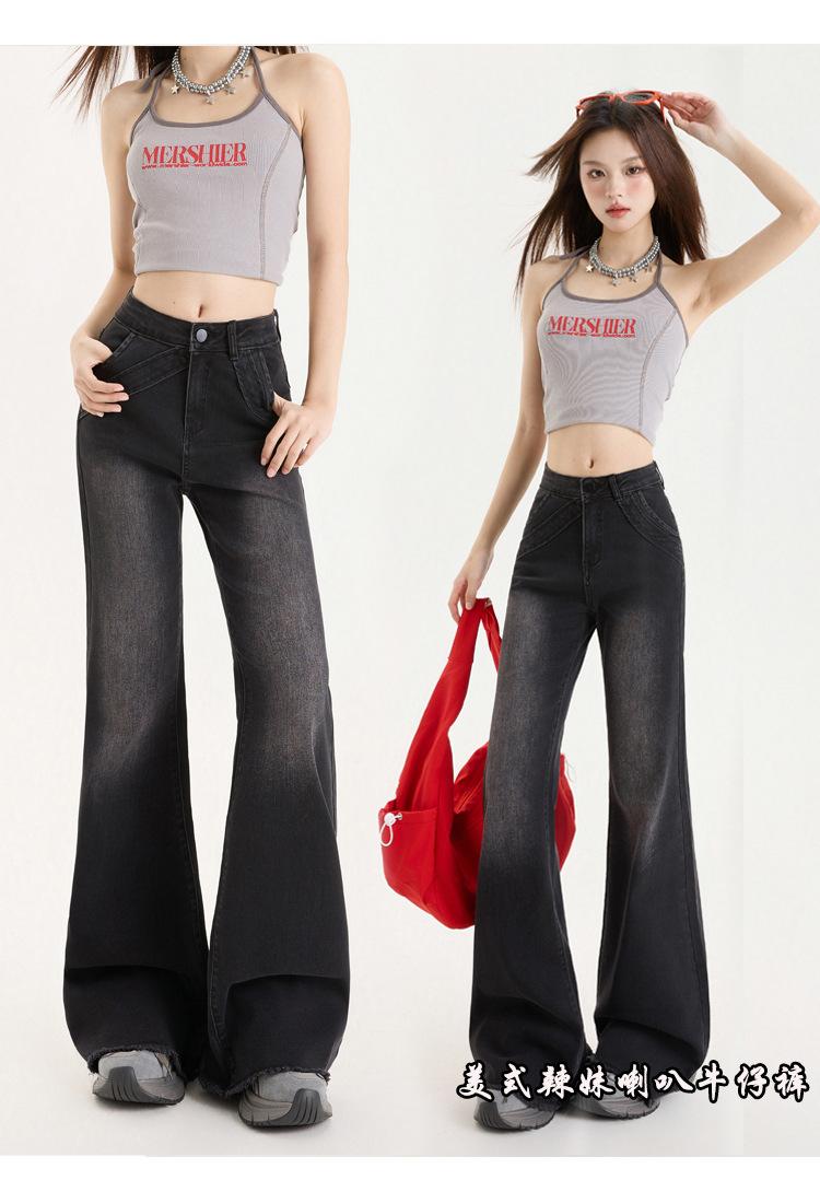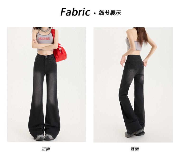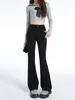 Vaqueros negros micro acampanados estilo americano para mujer, primavera 2025, nuevos, cintura alta, corte entallado, diseño de herradura.