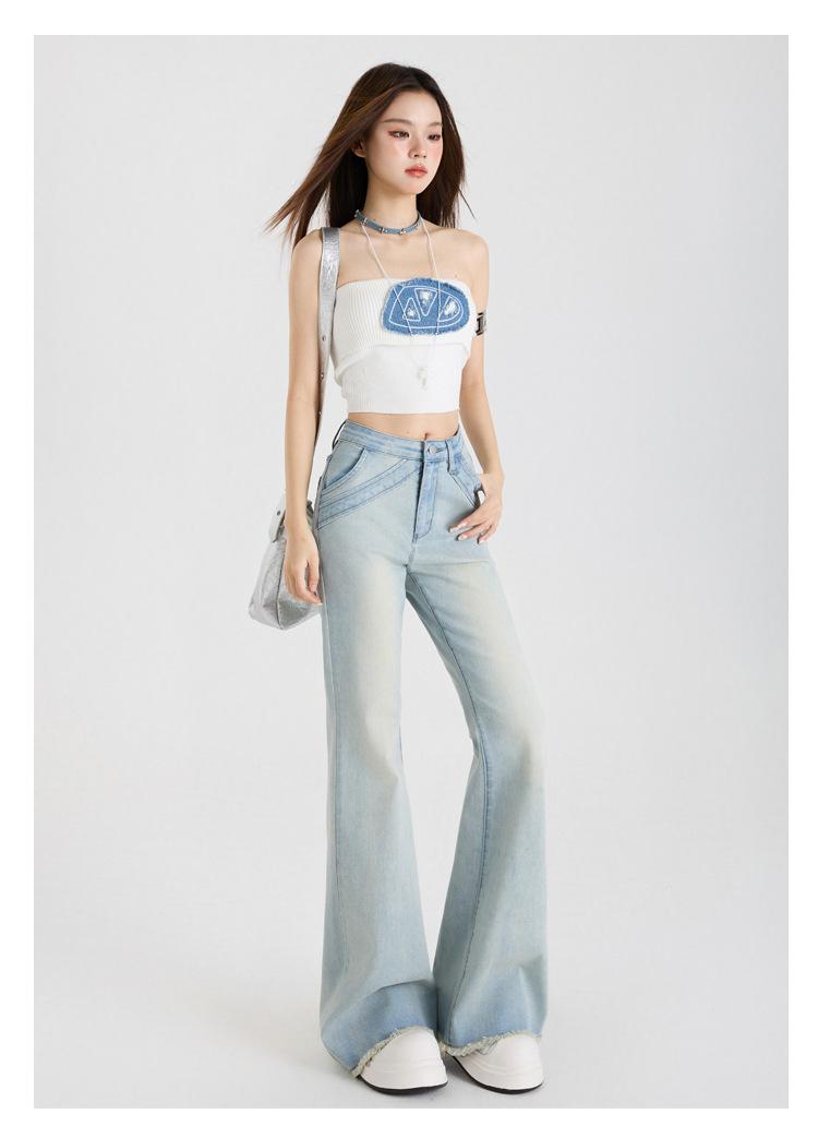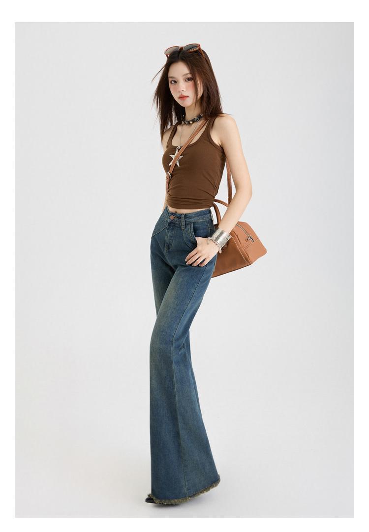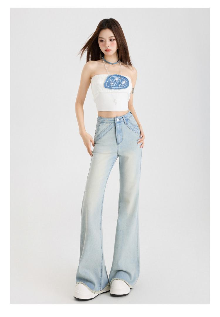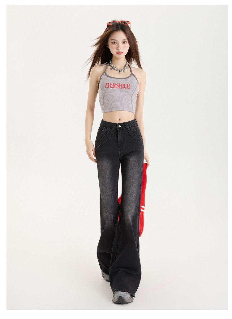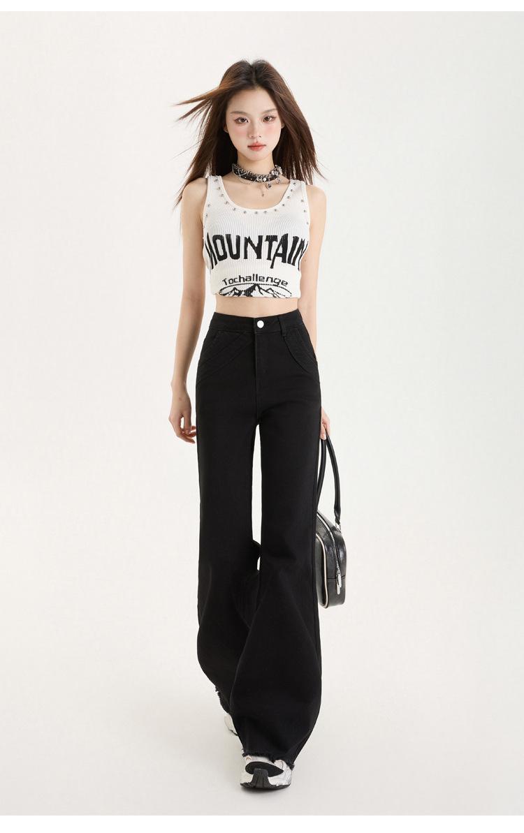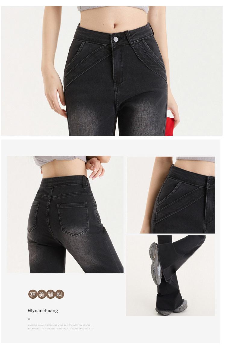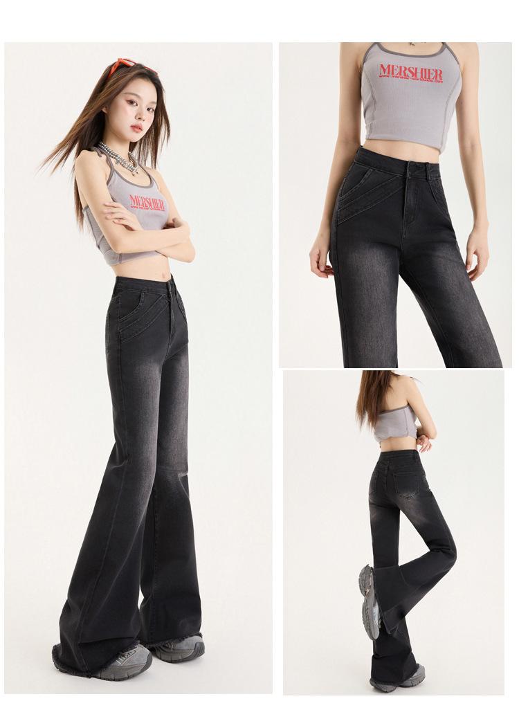 Vaqueros negros micro acampanados estilo americano para mujer, primavera 2025, nuevos, cintura alta, corte entallado, diseño de herradura.