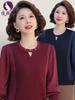 Camisa de madre, moda de primavera y otoño, camiseta de manga larga occidental, nueva camiseta de cuello redondo de primavera para mujer de mediana edad 2025