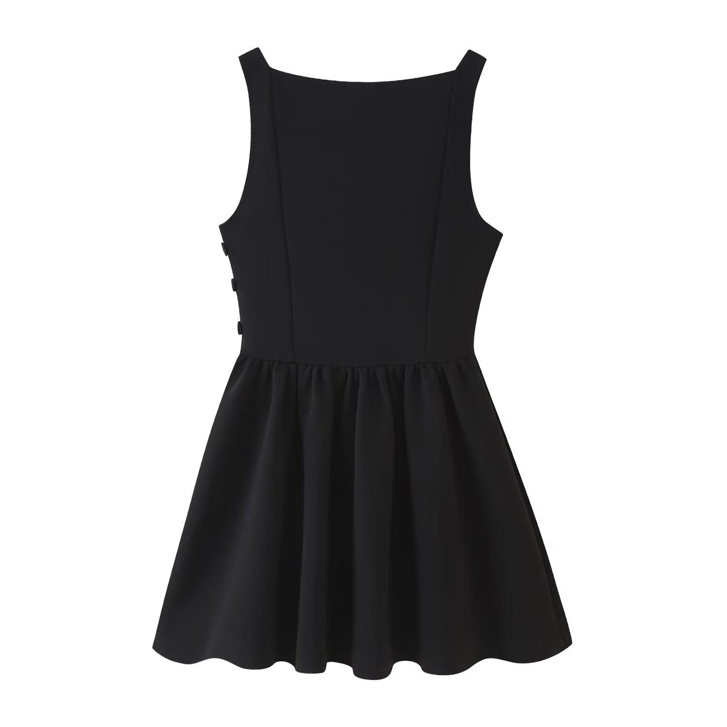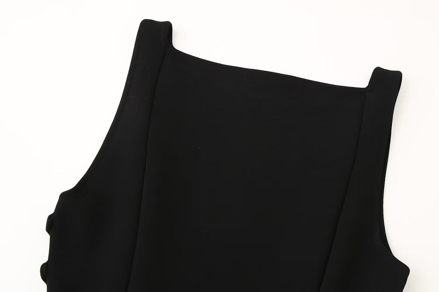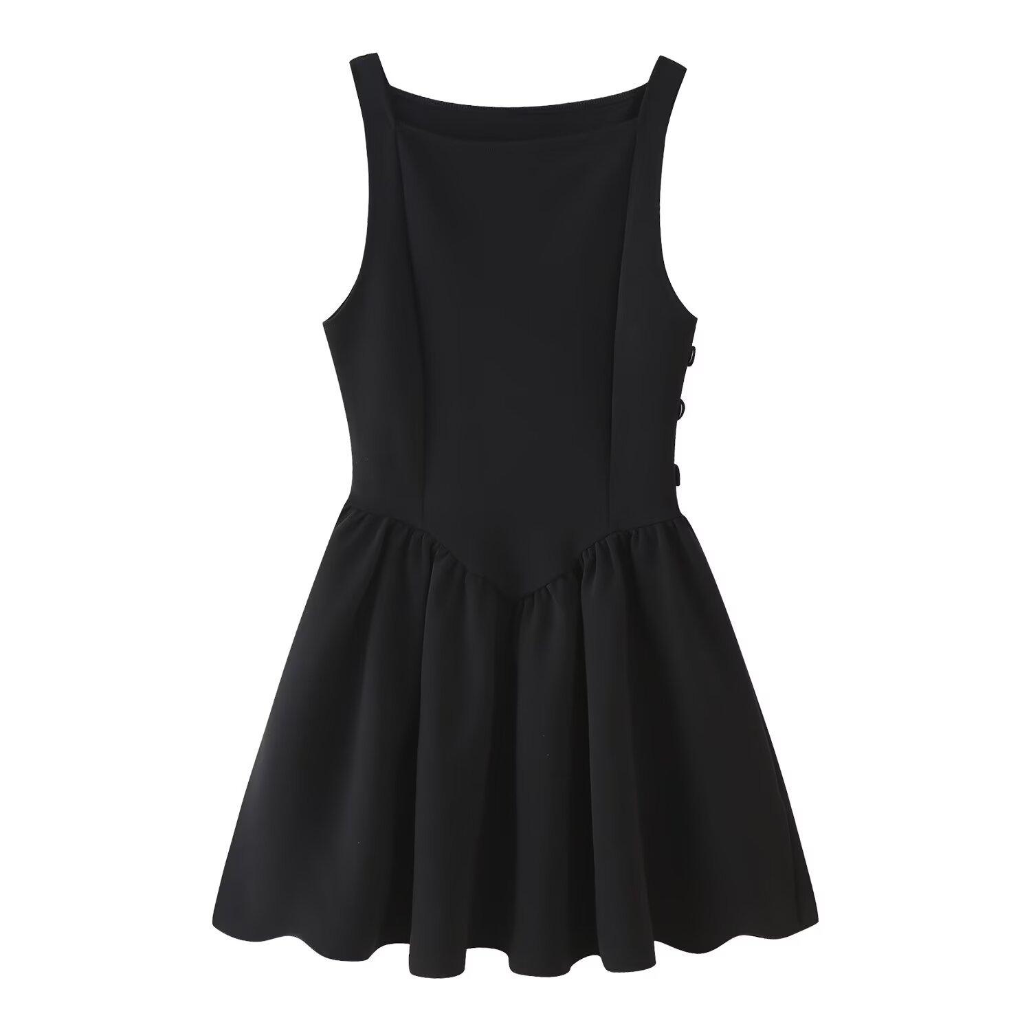Ropa Europea y Americana Transfronteriza 2025 Primavera Nuevo Cuello Cuadrado Sin Mangas Elegante Vestido de Tirantes con Cintura 5584320