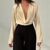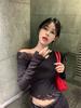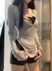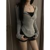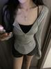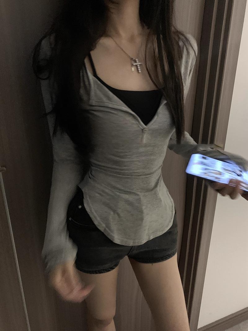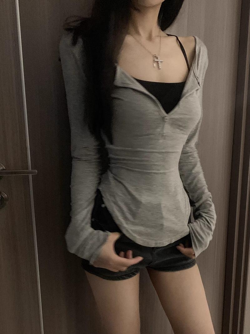 Otoño 2024 Hombro Puro Deseo Chica Caliente Slim-fit Adelgazante Manga Larga Cuello en V Camiseta de Manga Larga Sexy Nicho Top ins
